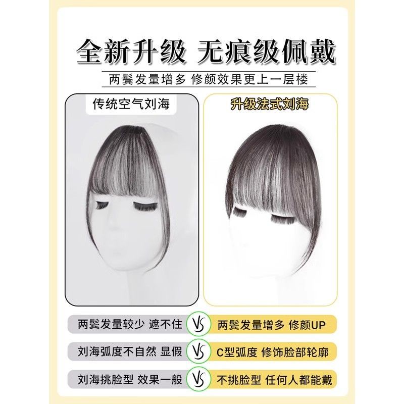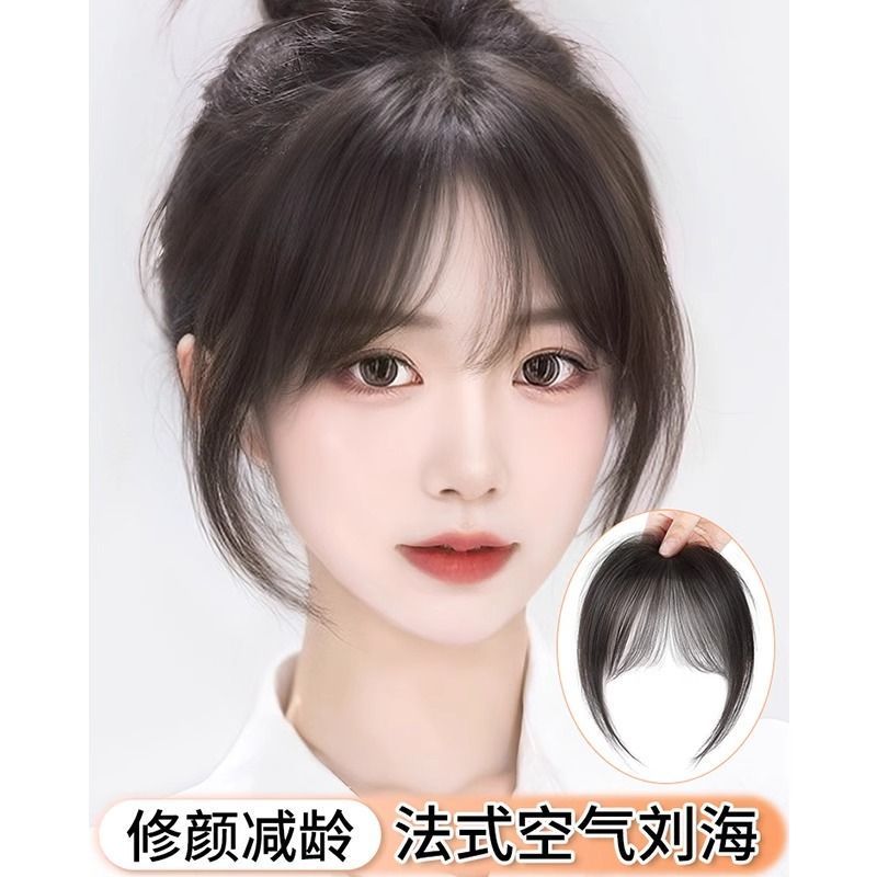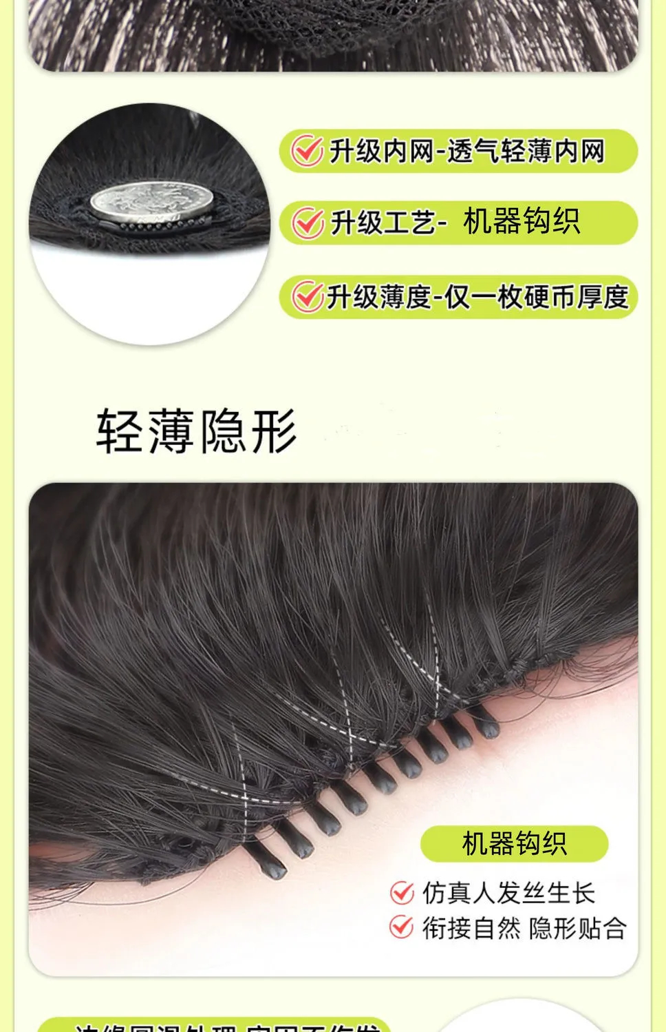 八字刘海贴发片女头顶补发增发量自然蓬松前额无痕修颜法式假刘海