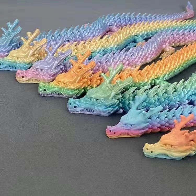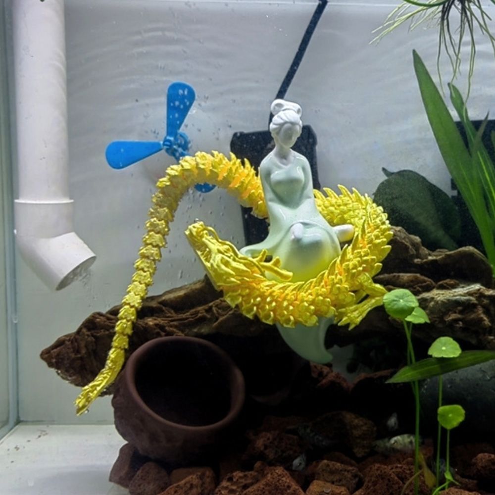 3d打印龙免洗中国龙摆件鱼缸专用造景水培全套桌面七彩卡通长条龙