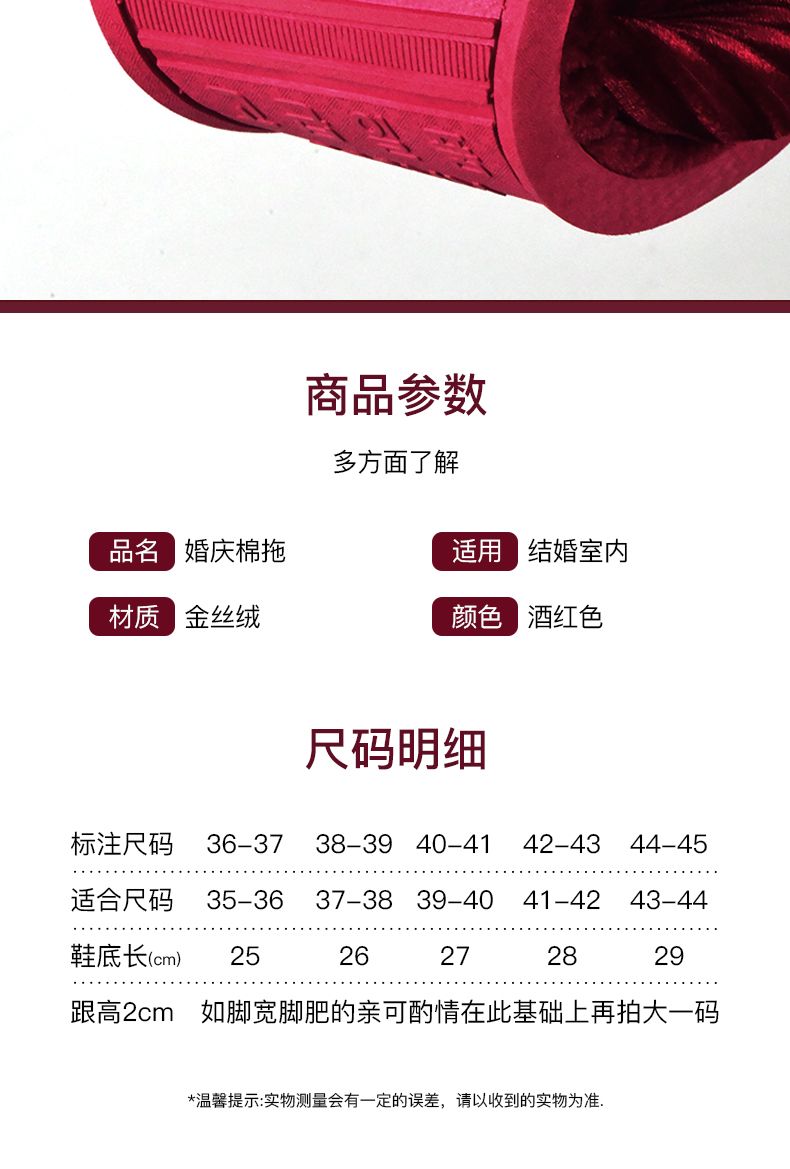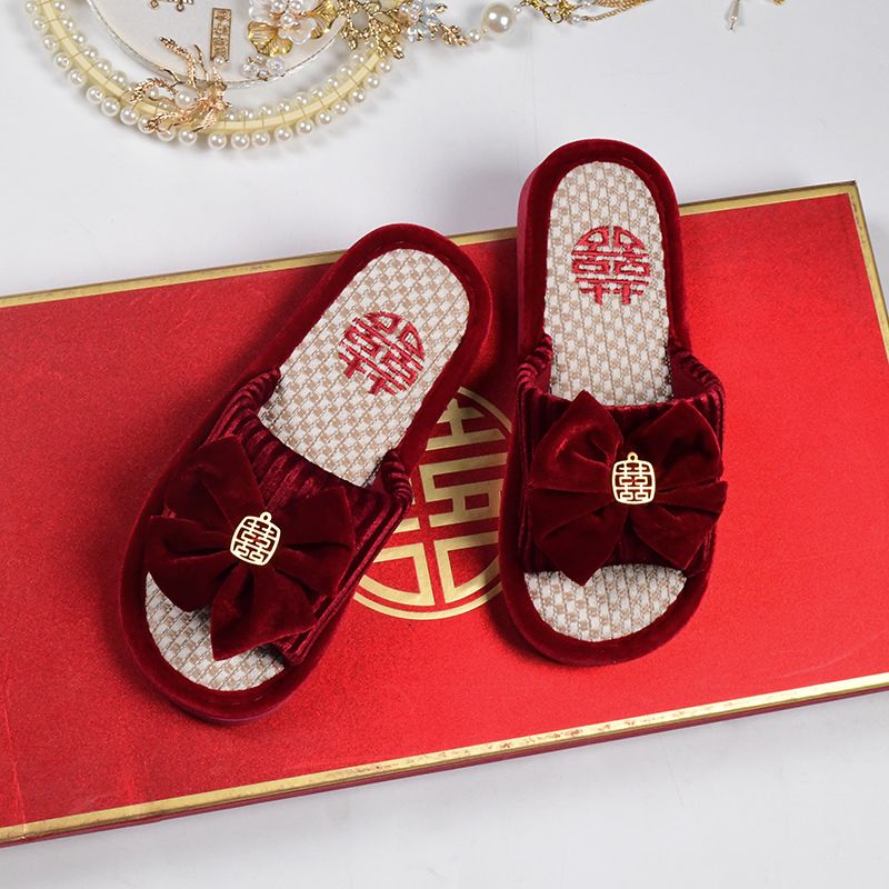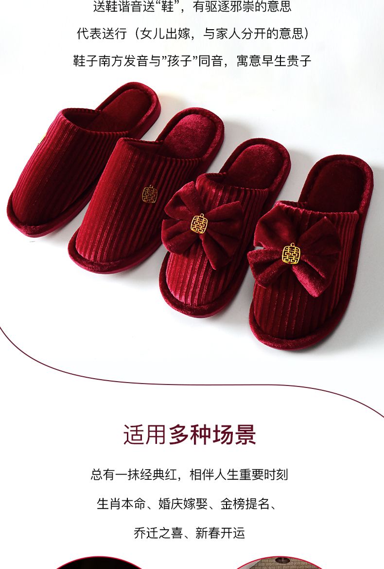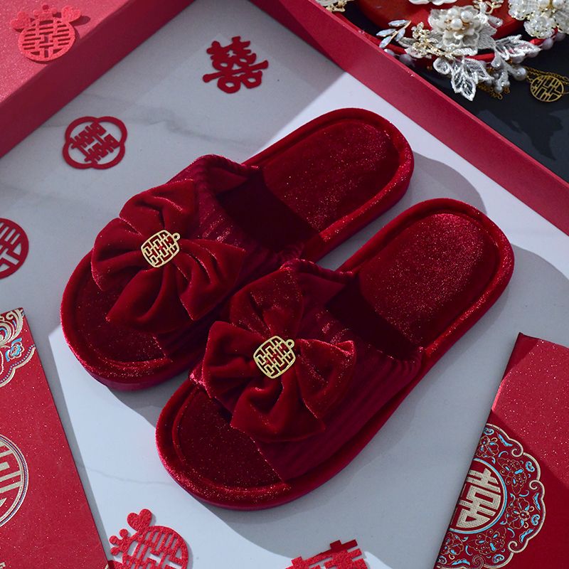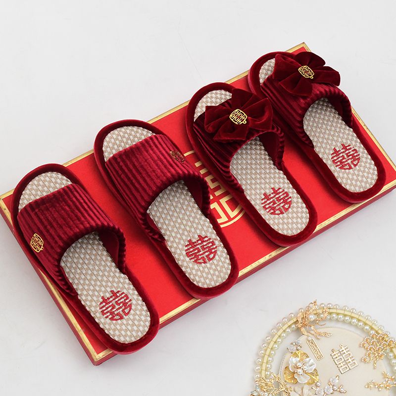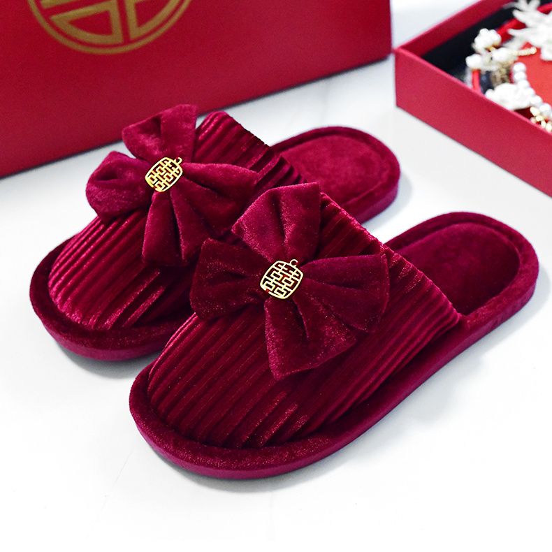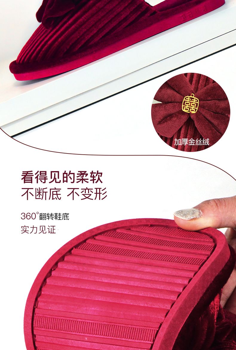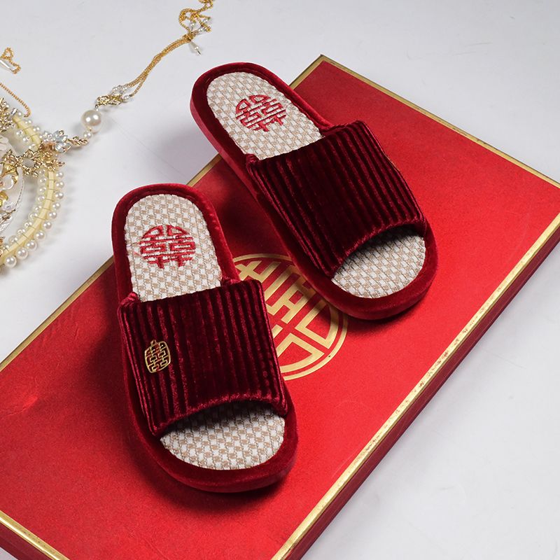 结婚拖鞋婚庆家居棉拖鞋新婚情侣喜庆大红色一对新郎新娘室内陪嫁