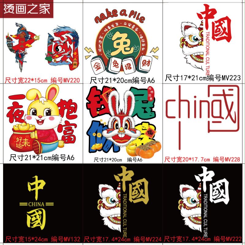 醒狮字母汉字中国潮牌短袖印花贴/服装辅料装饰品烫画 2022年新品