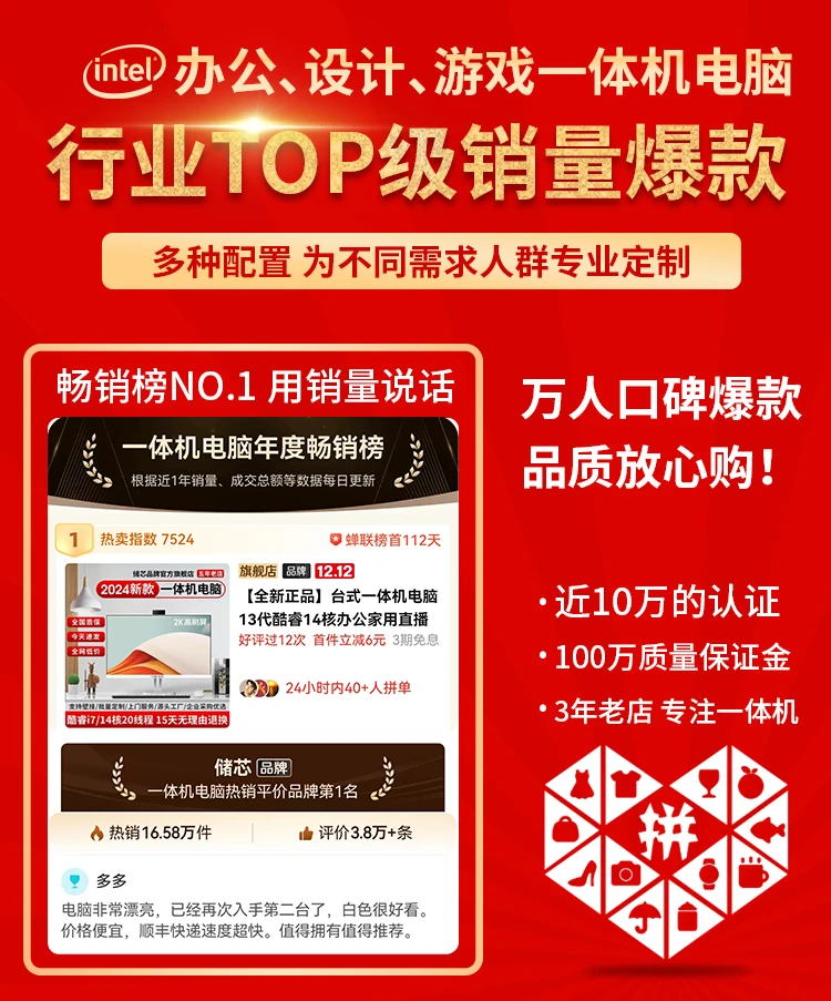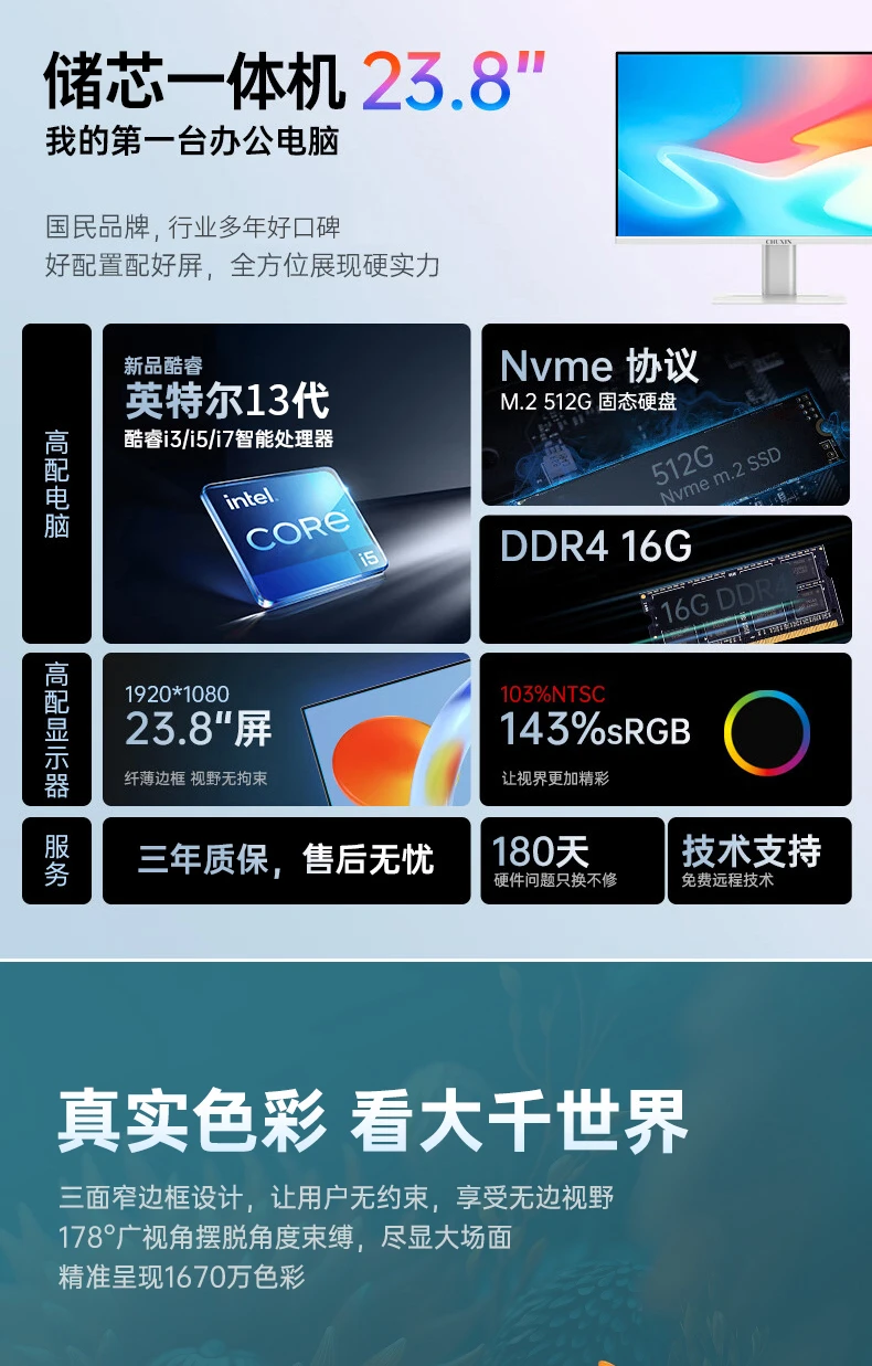 【全新正品】台式一体机电脑13代酷睿14核办公家用直播游戏整机