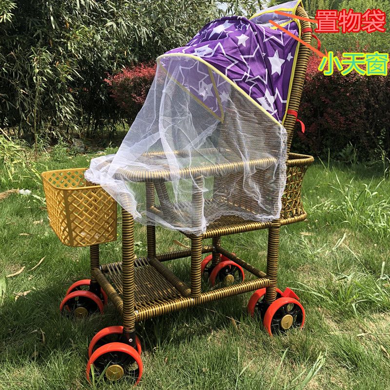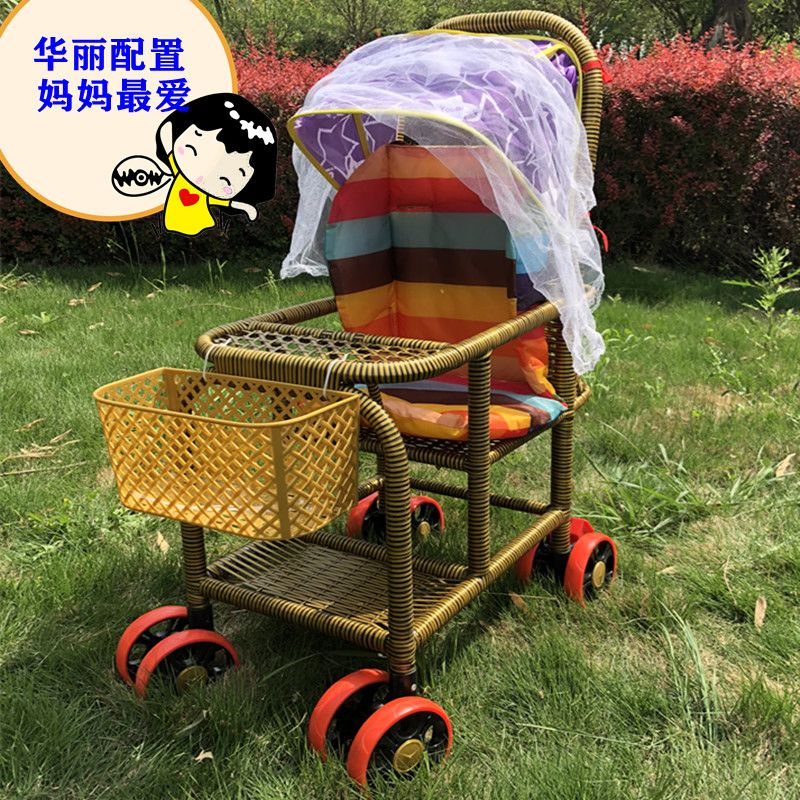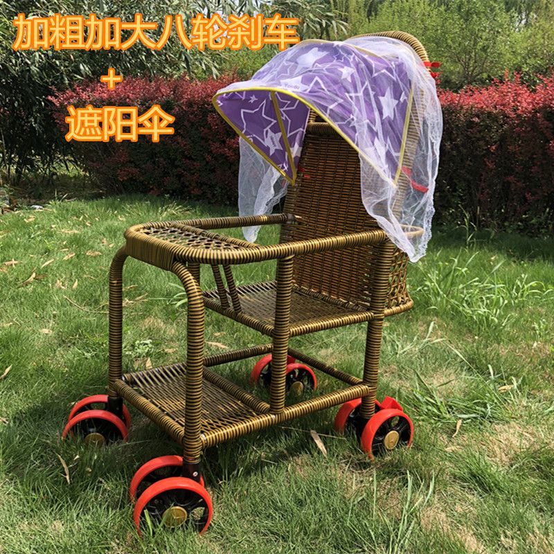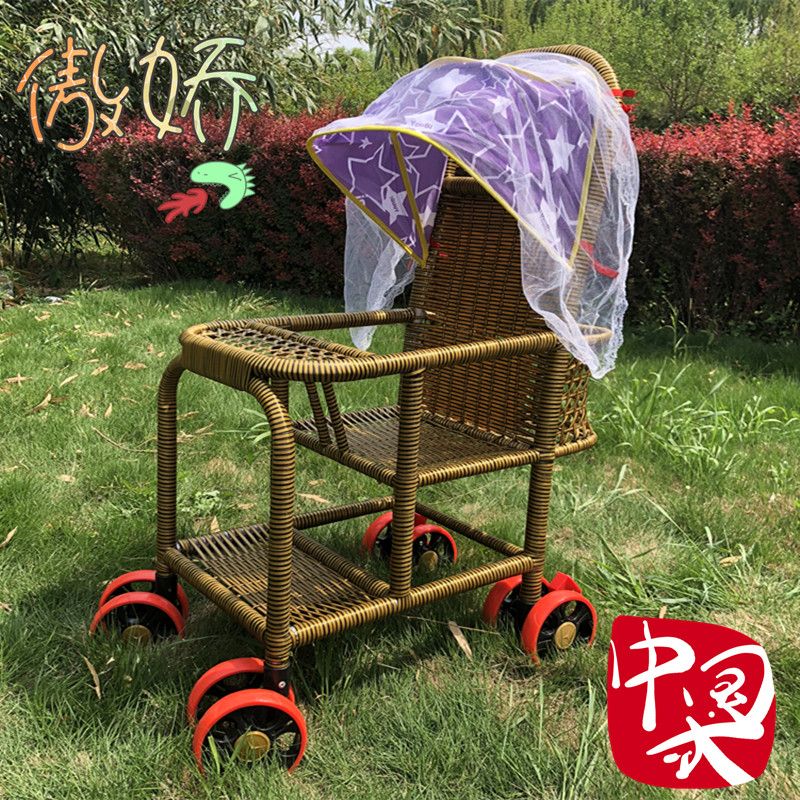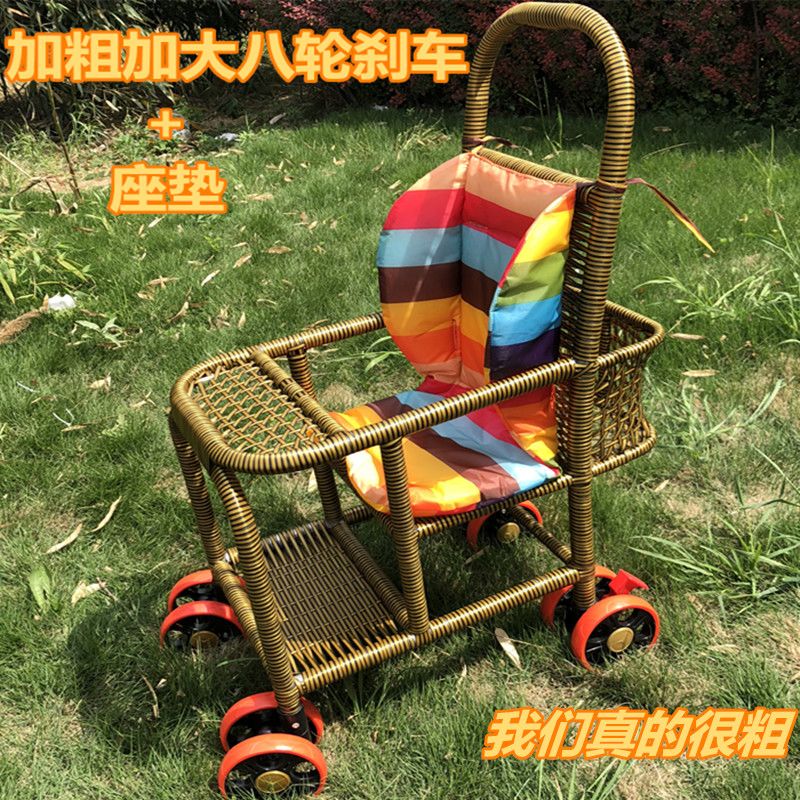 宝宝婴儿竹藤轻便小孩推车仿藤编童车儿童藤椅小推车坐式餐椅夏季