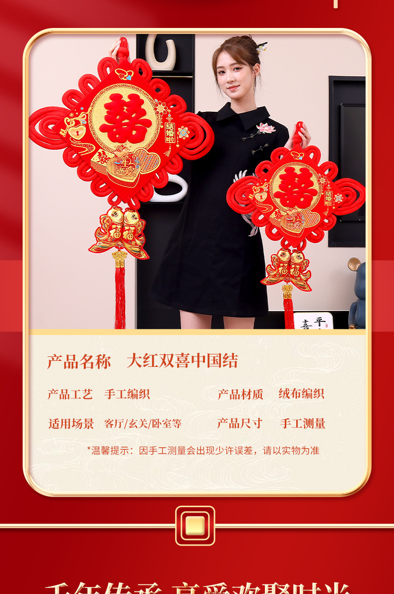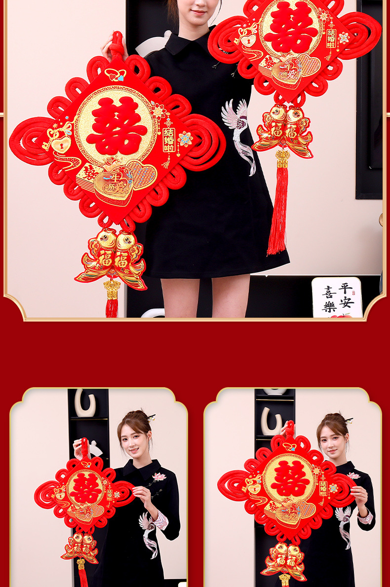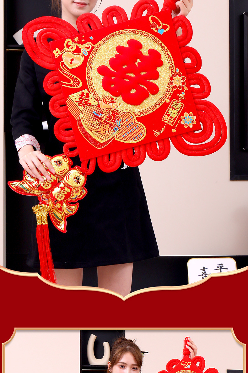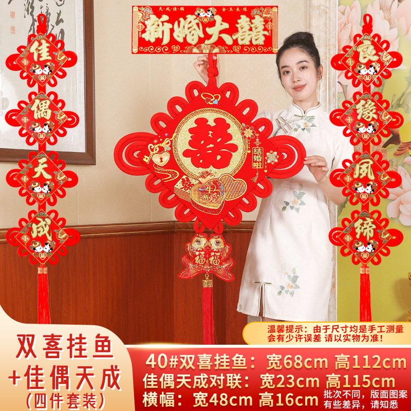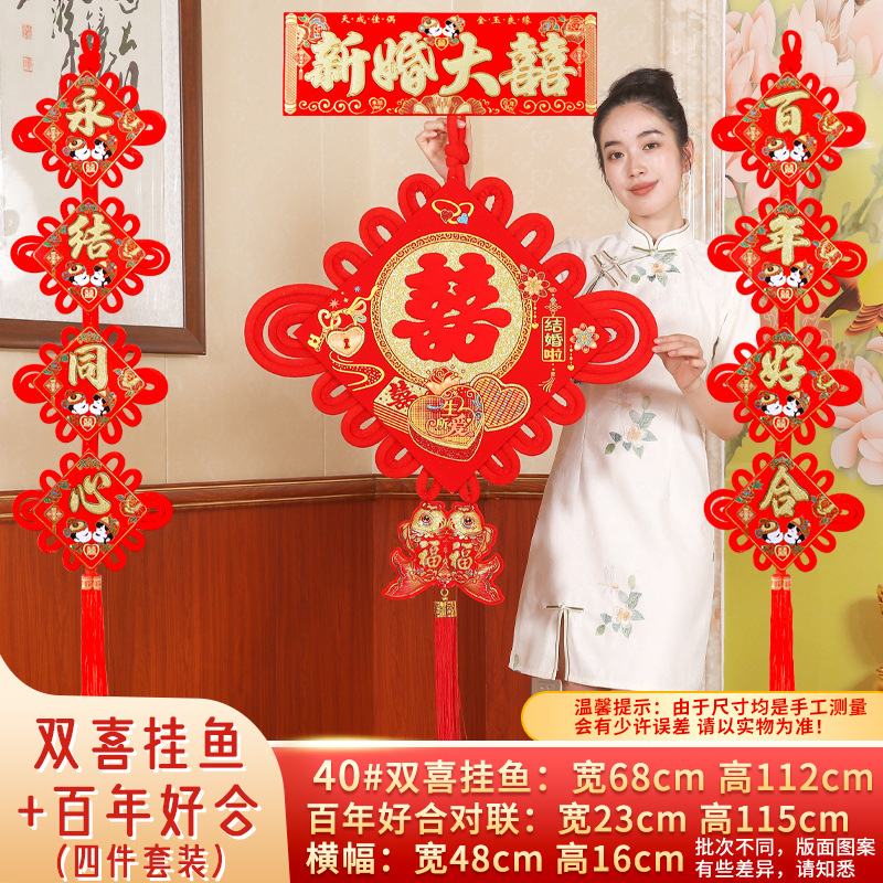 喜字中国结对联双喜新婚大喜入户门挂件福字婚房装饰室内客厅布置
