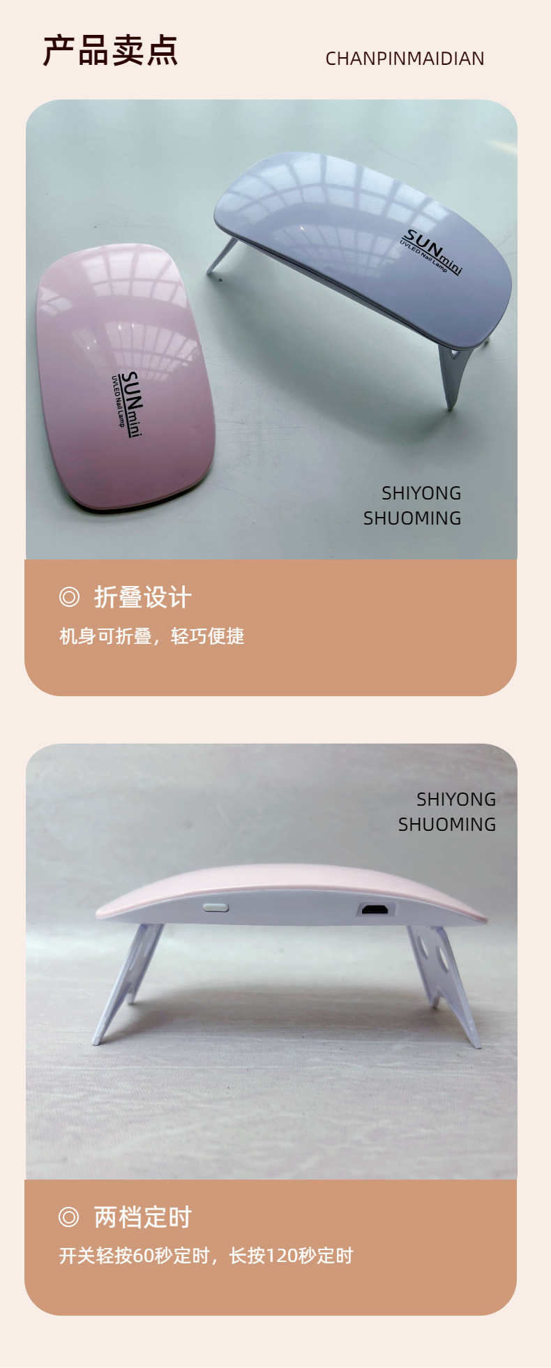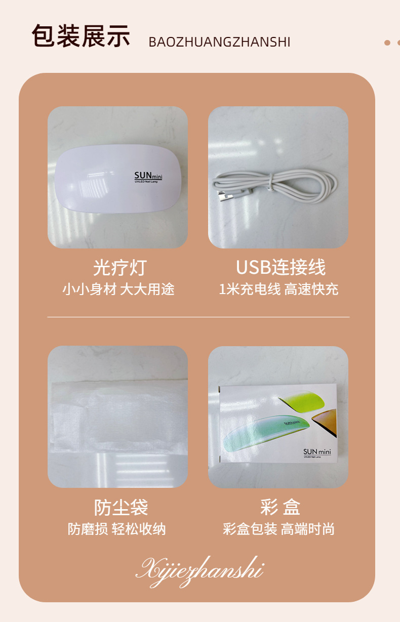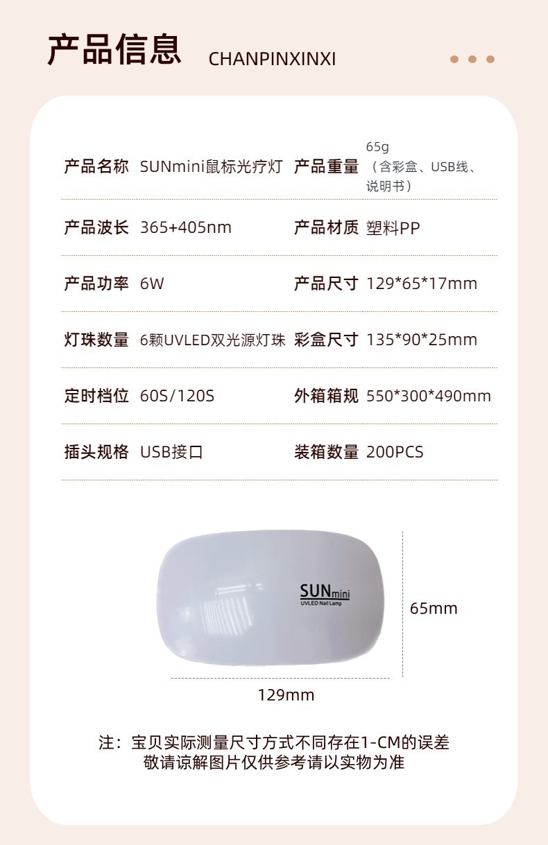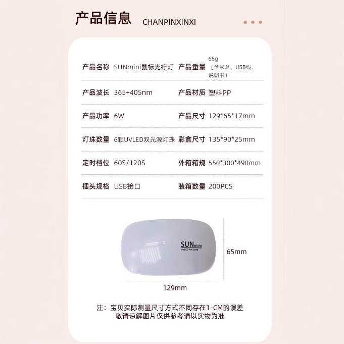 萌小可美甲鼠标LED光疗机USB指甲烘干UV速烤灯甲油胶迷你美甲烤灯