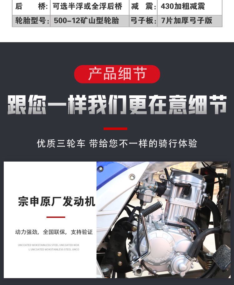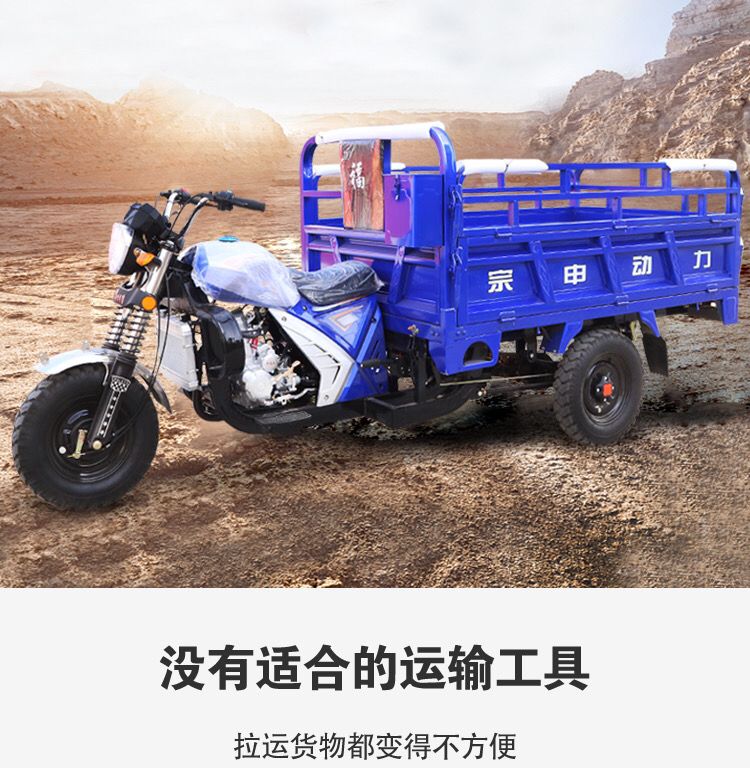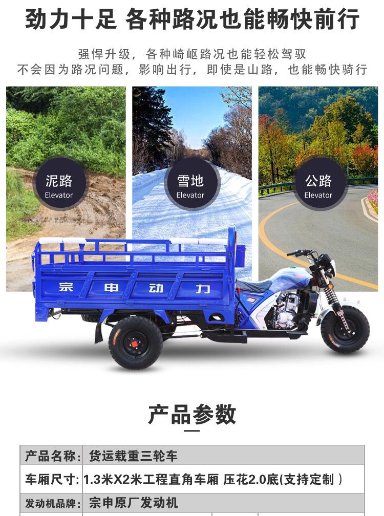 燃油三轮摩托车宗申动力全新水冷货运农用自卸汽油三轮车载重王【