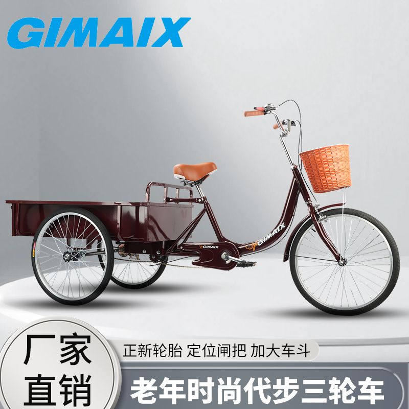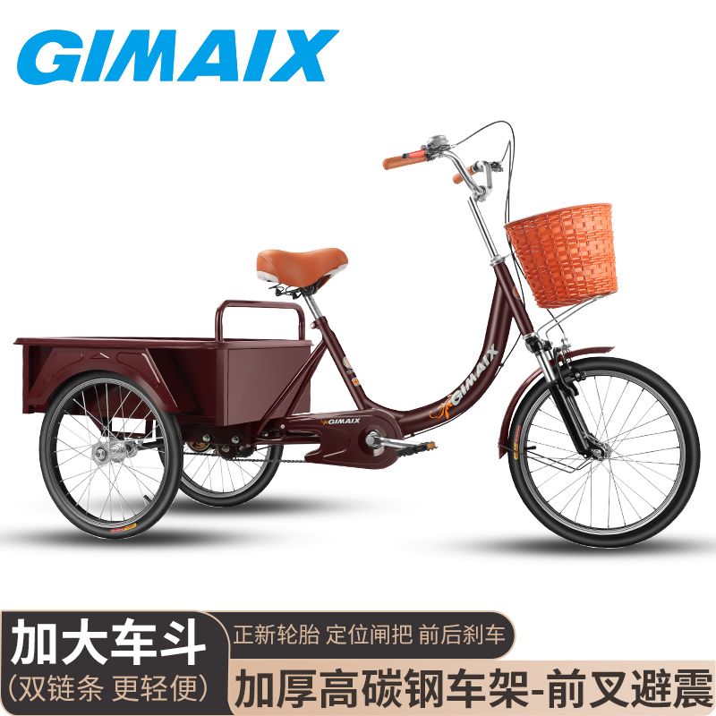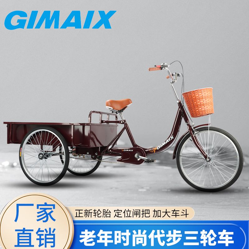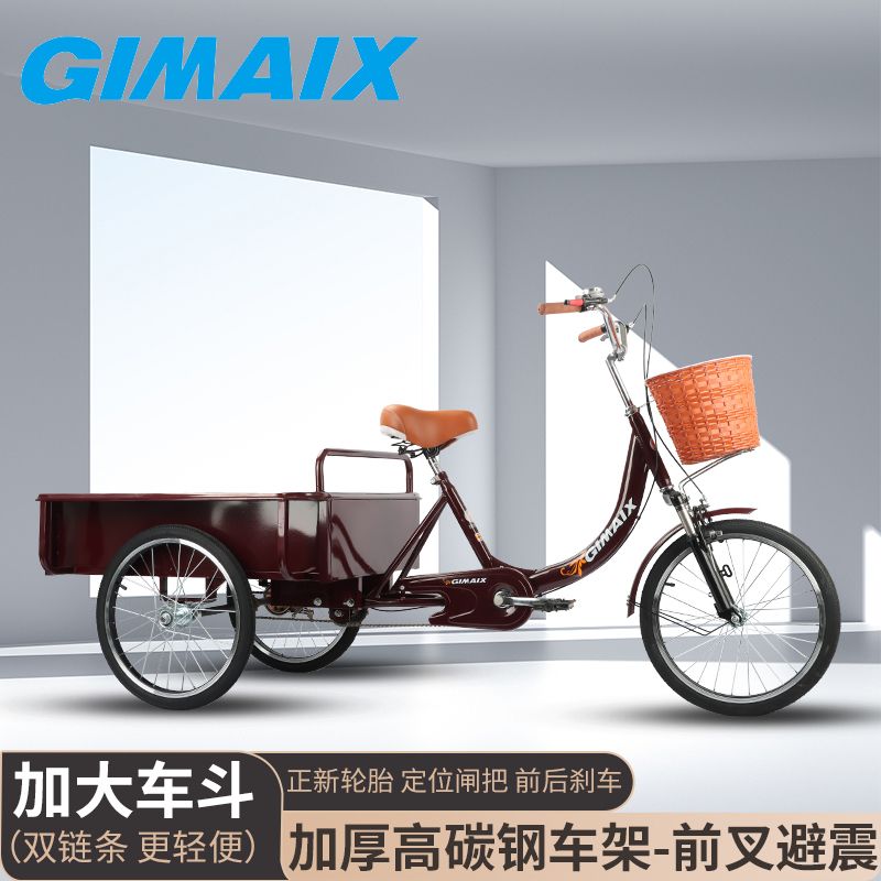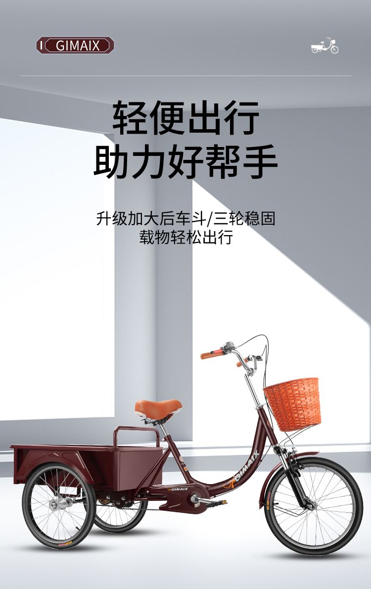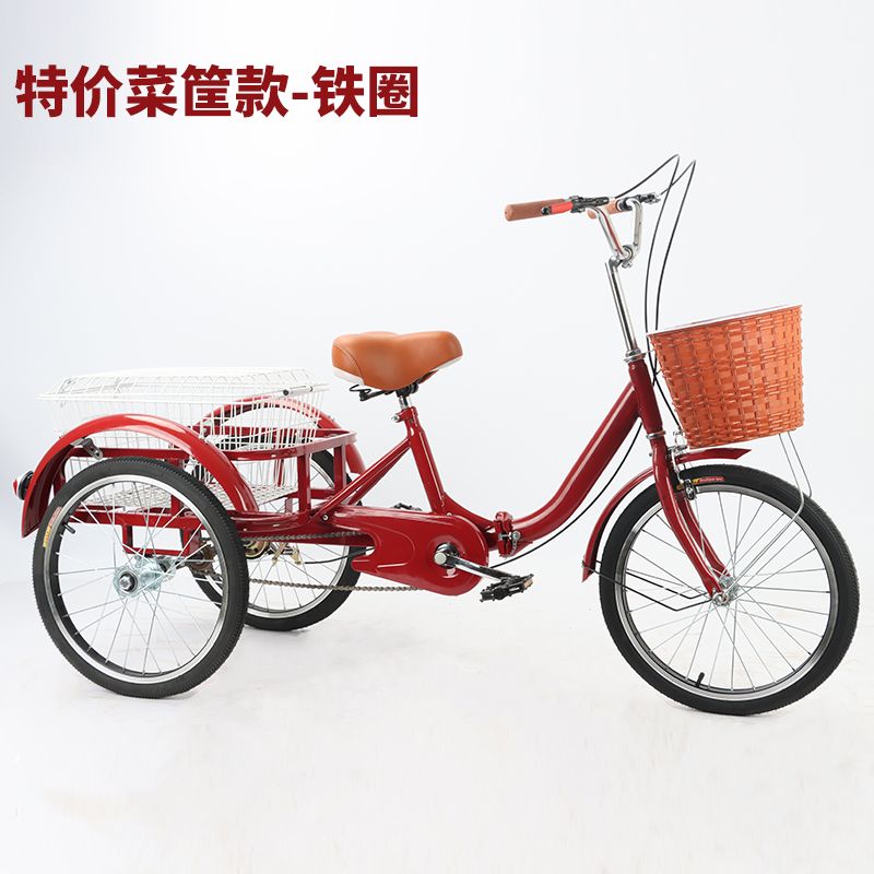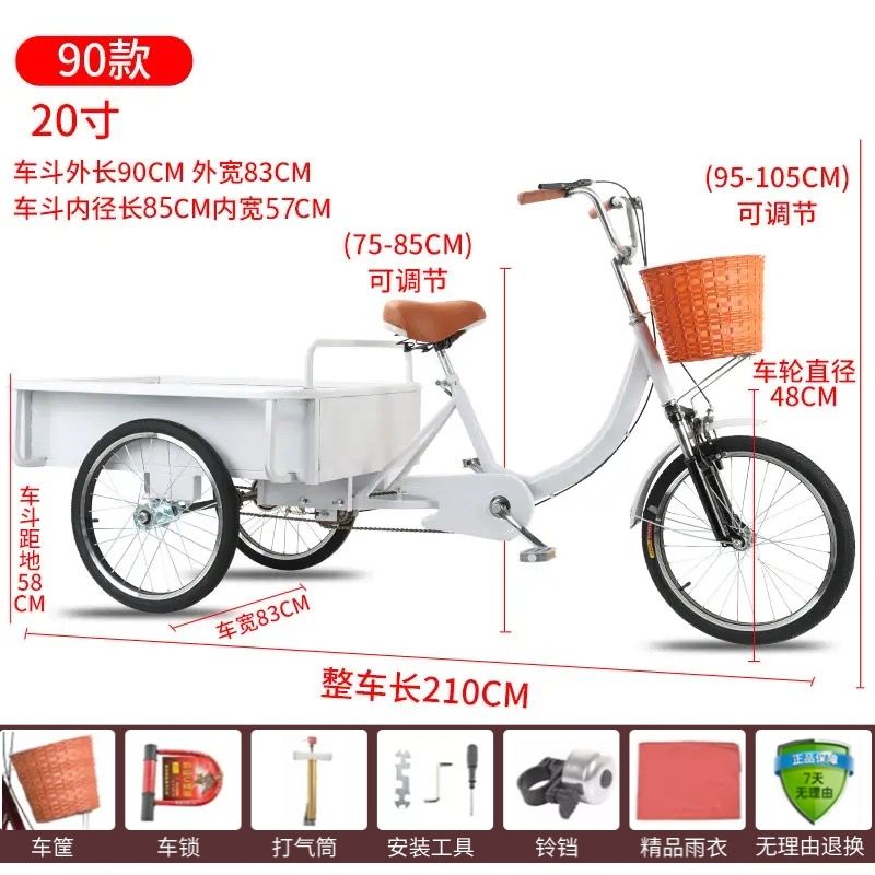 新款中老年脚踏三轮车人力轻便代步车脚蹬单车成人载货三轮自行车