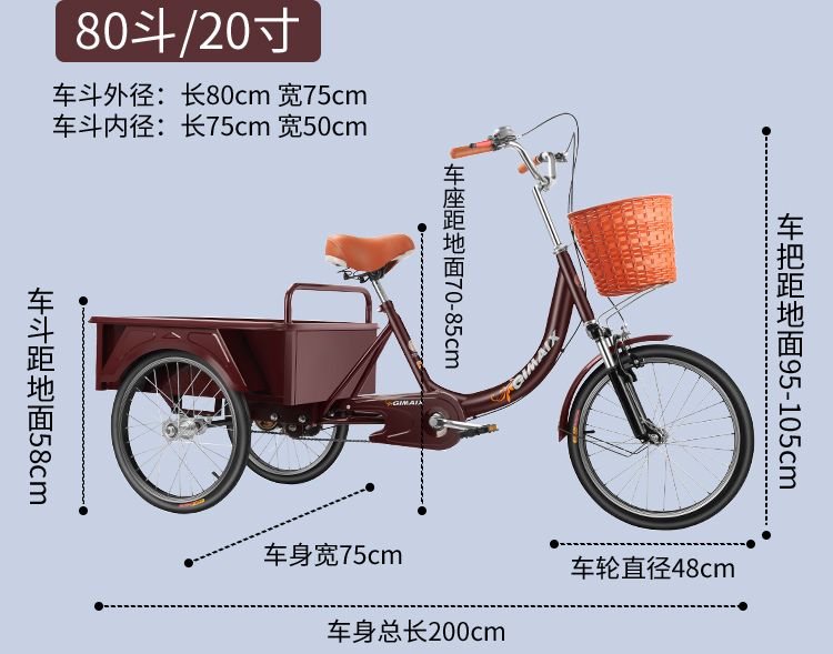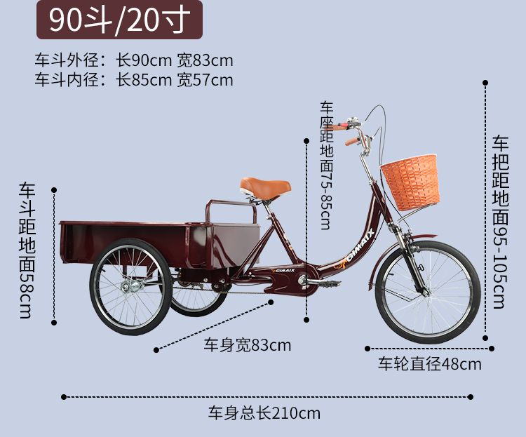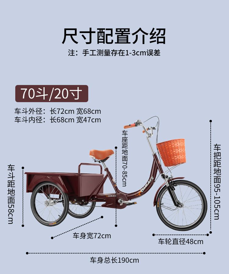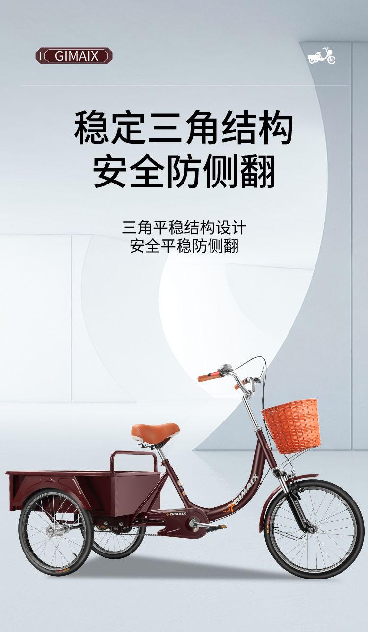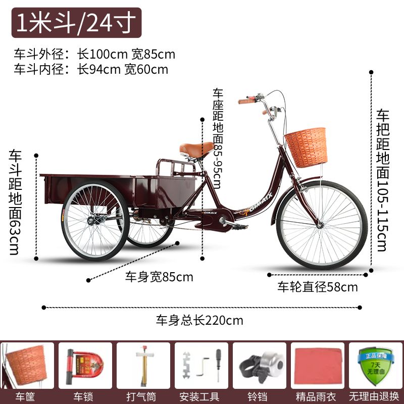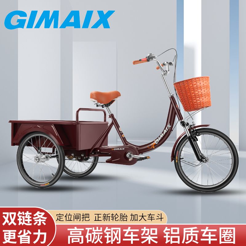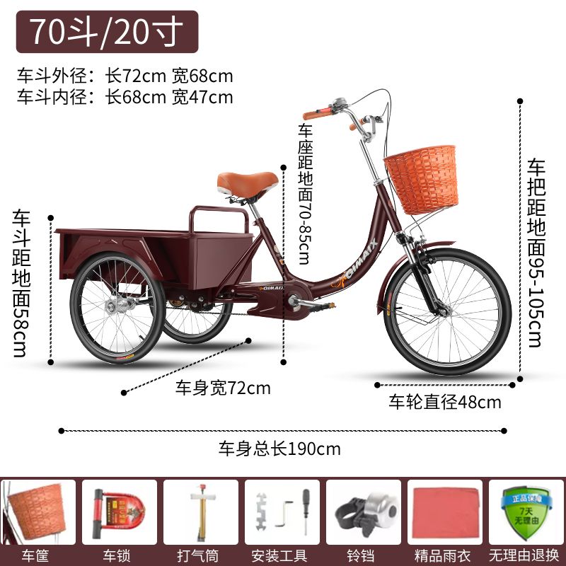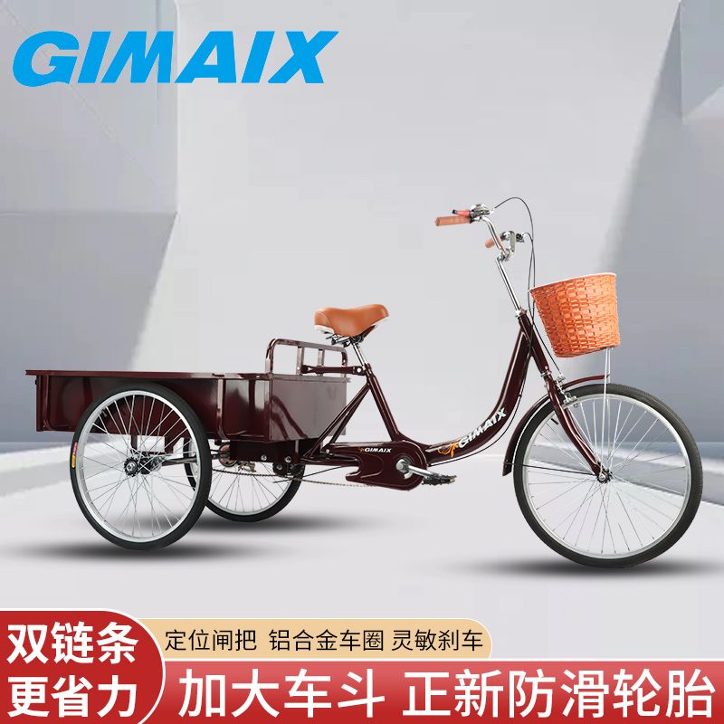 新款中老年脚踏三轮车人力轻便代步车脚蹬单车成人载货三轮自行车