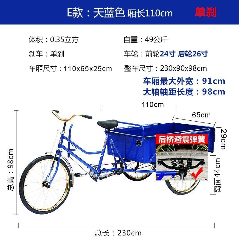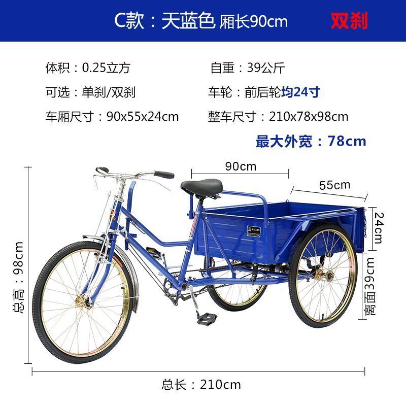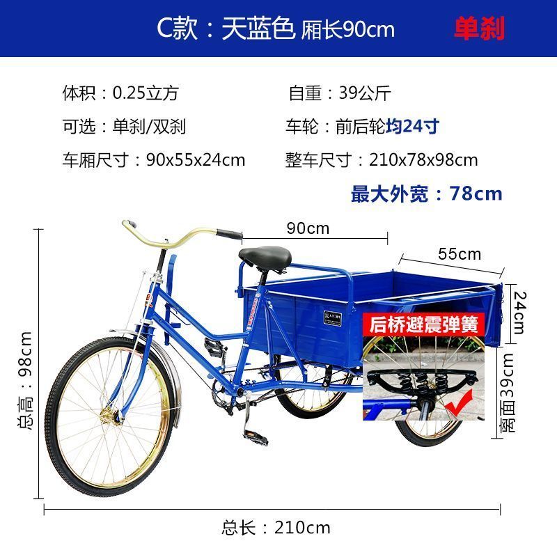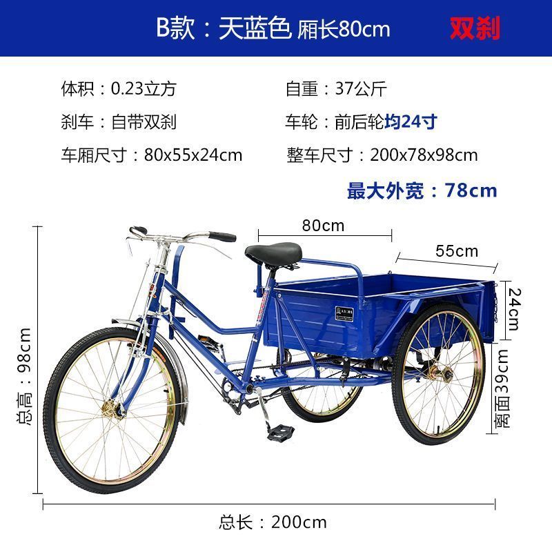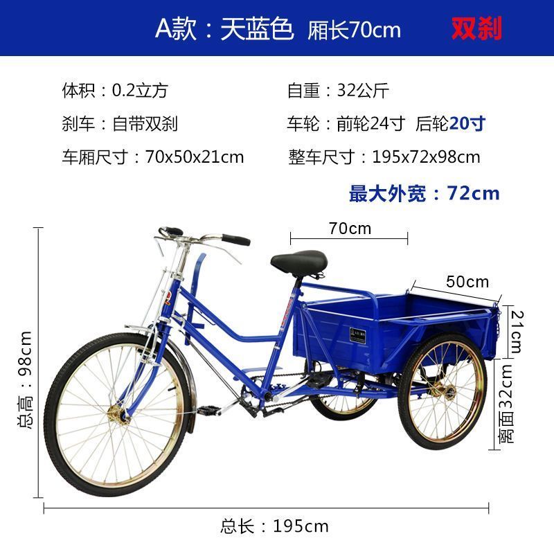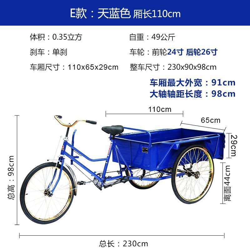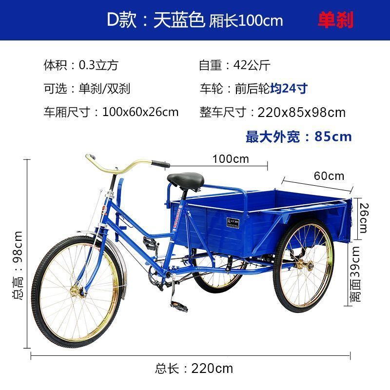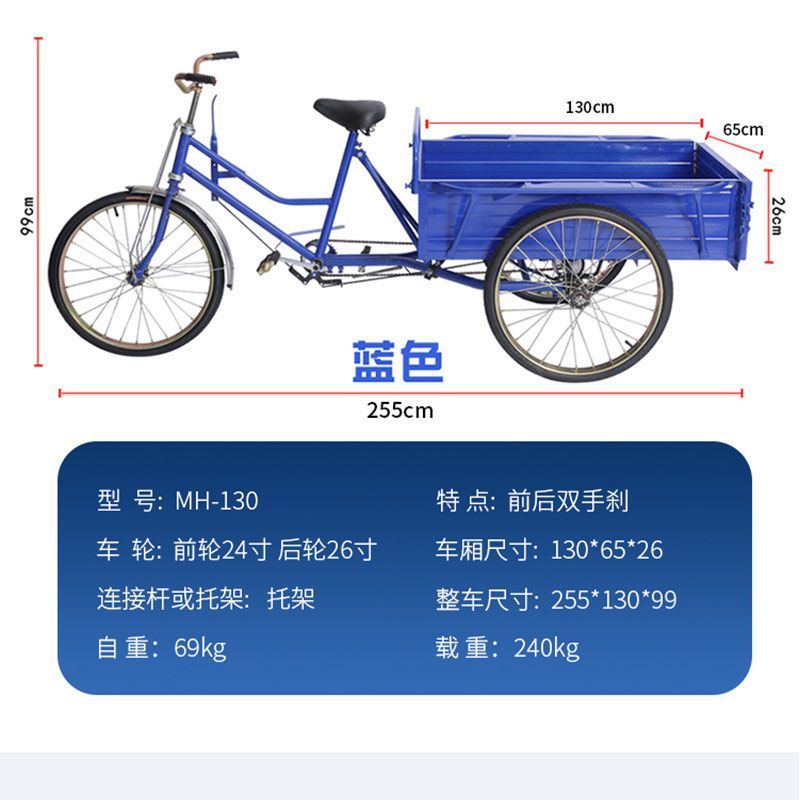 浙江强立牌70~1.3米长车厢人力三轮车老年人代步摆摊拉货接送小孩