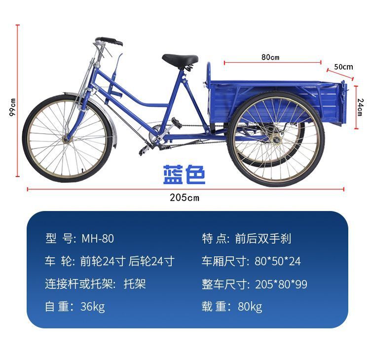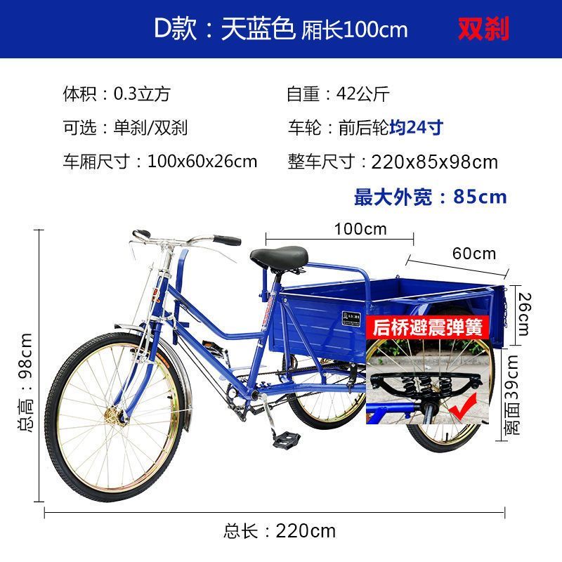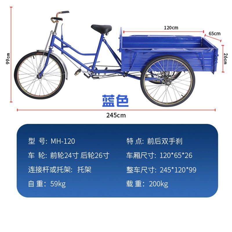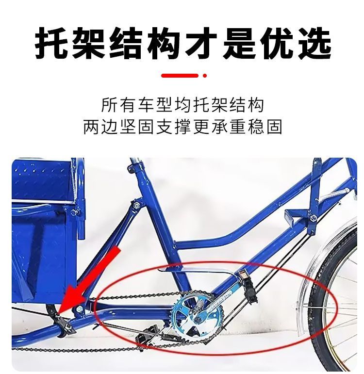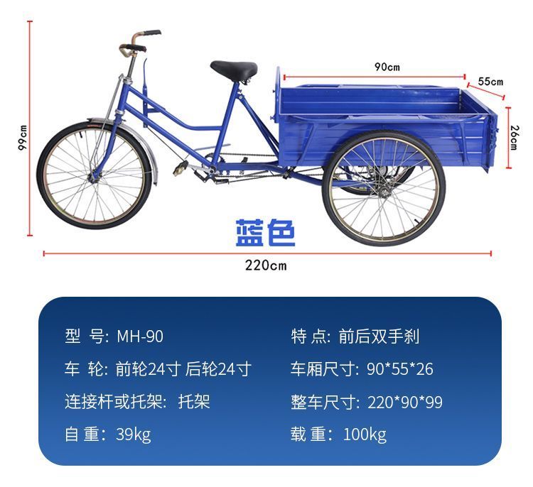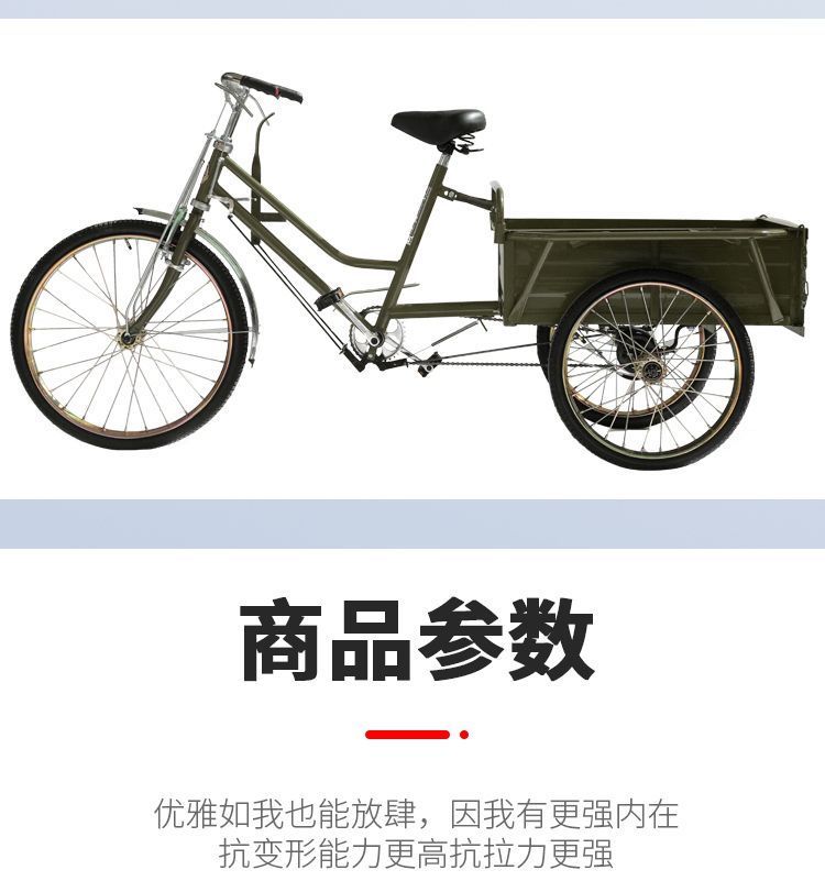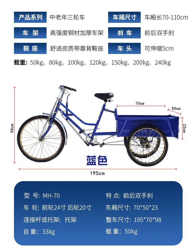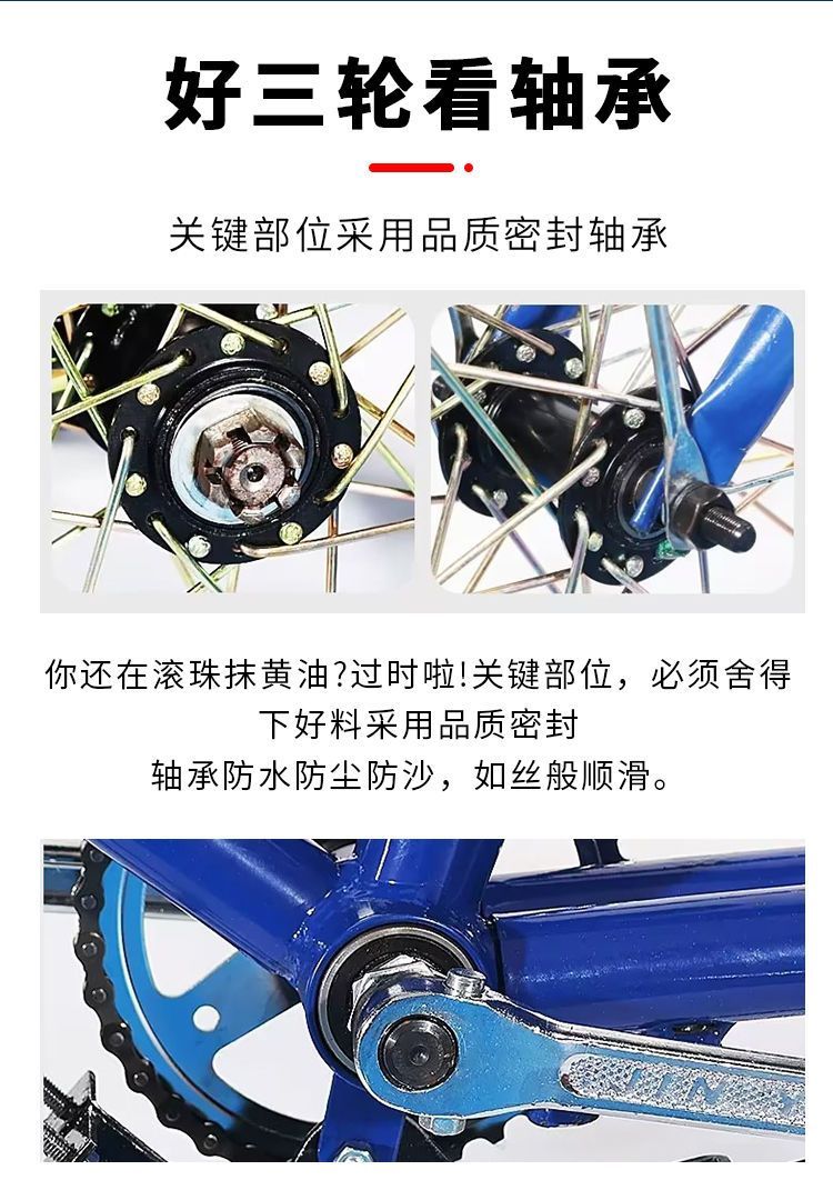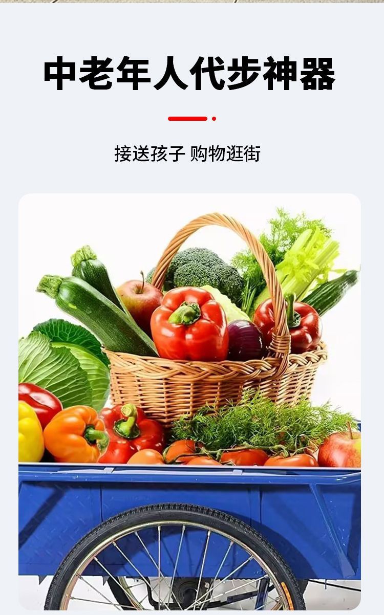 浙江强立牌70~1.3米长车厢人力三轮车老年人代步摆摊拉货接送小孩
