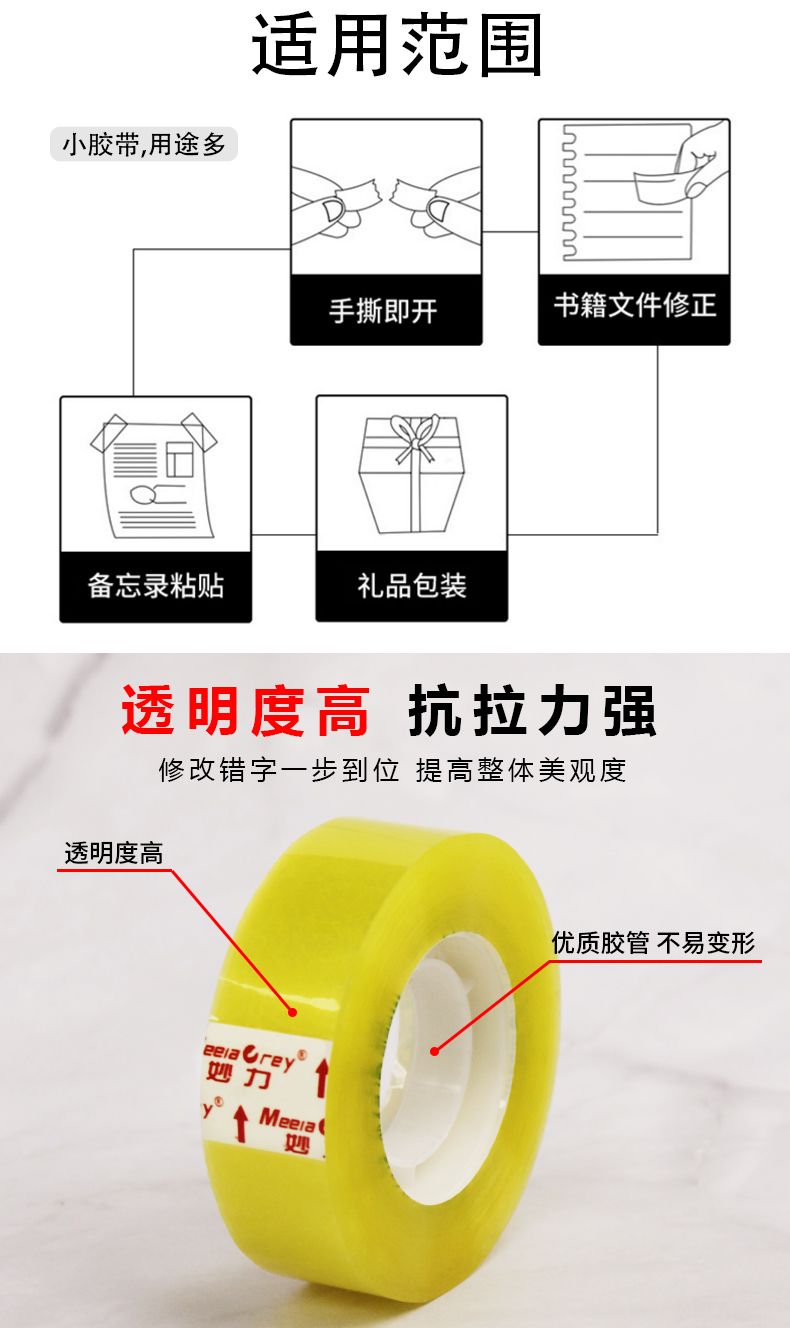 透明胶带小号学生错题办公外卖手工文具花束小卷包装胶布胶纸批发