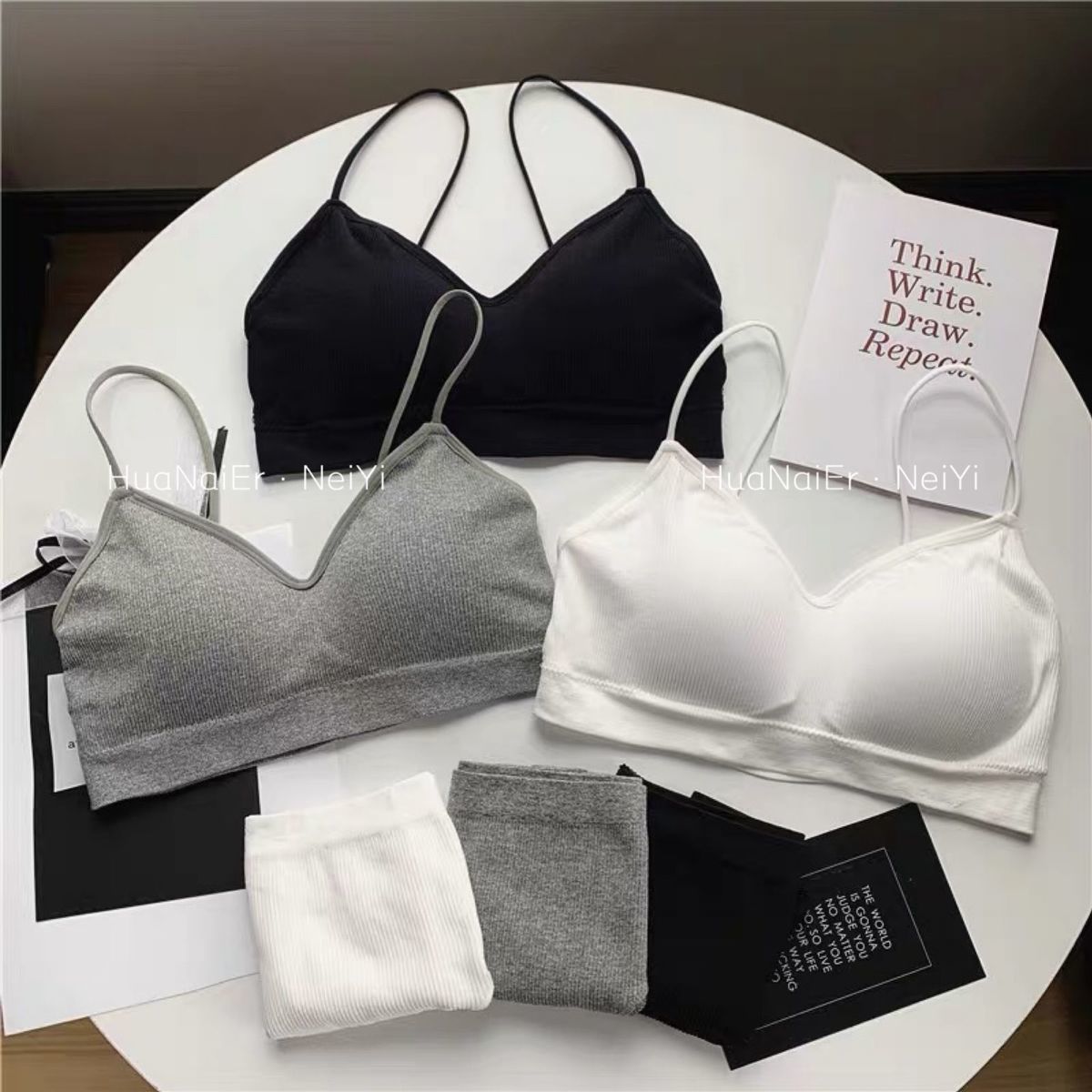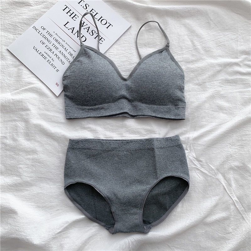 抹胸内衣内裤套装少女美背聚拢文胸三角裤学生运动裹胸内衣内裤女