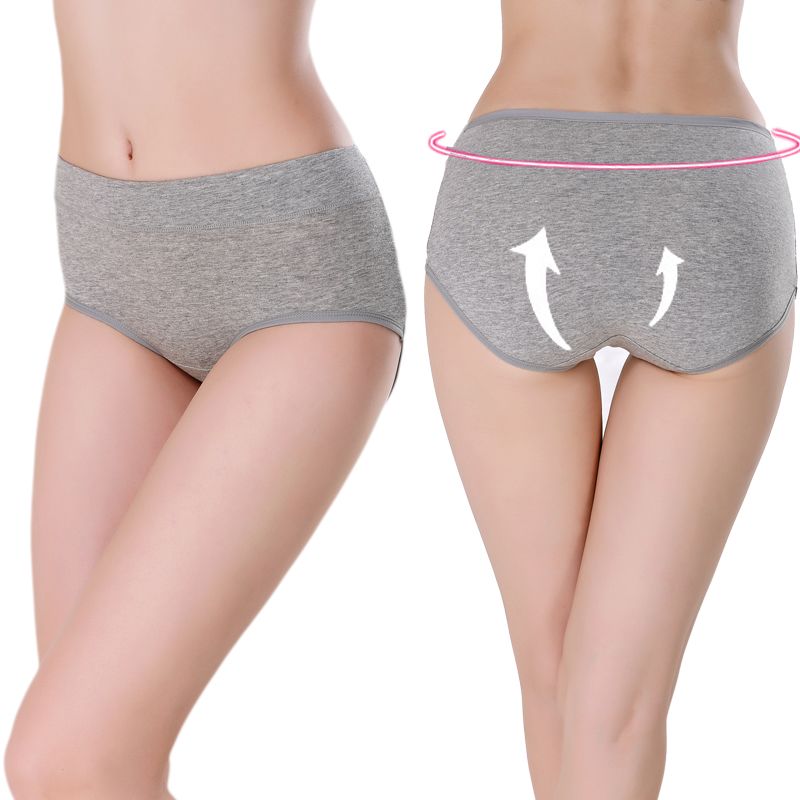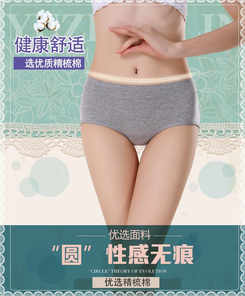 [粉黛妃,5条5色装]女中腰95%棉 纯色收腹提臀美体女内裤棉料透气