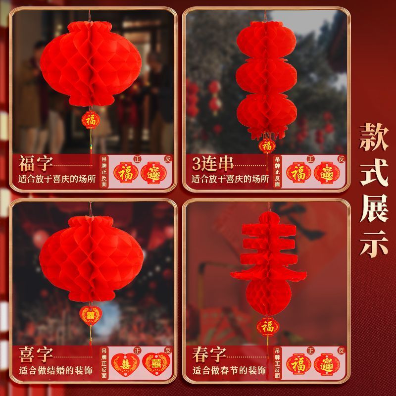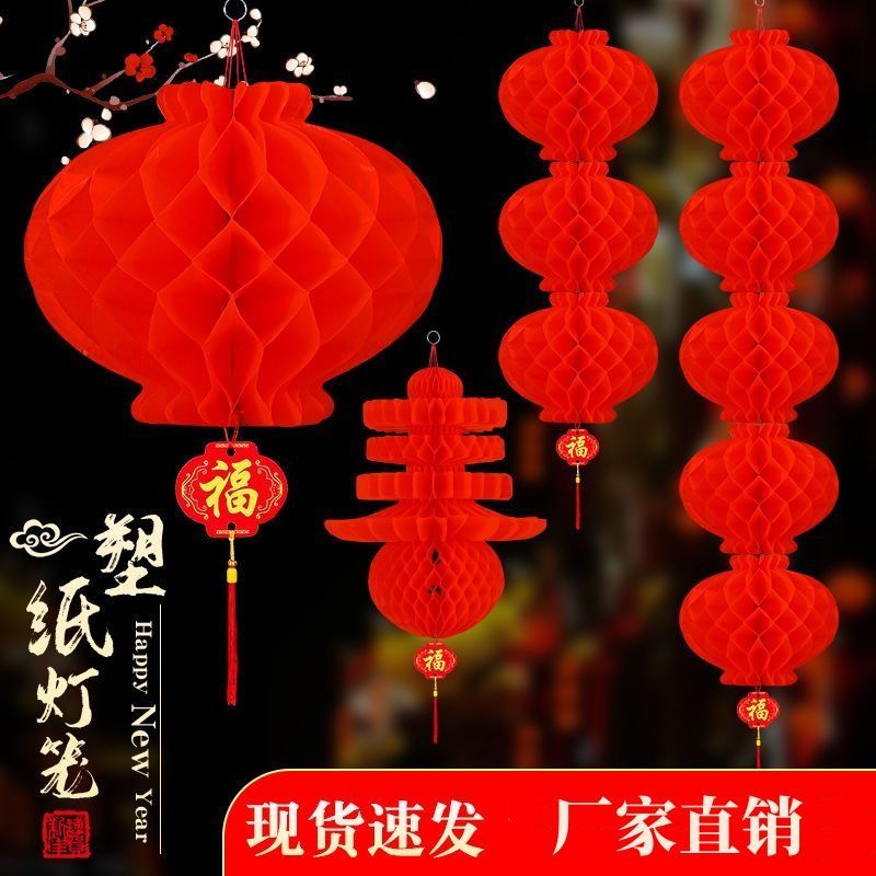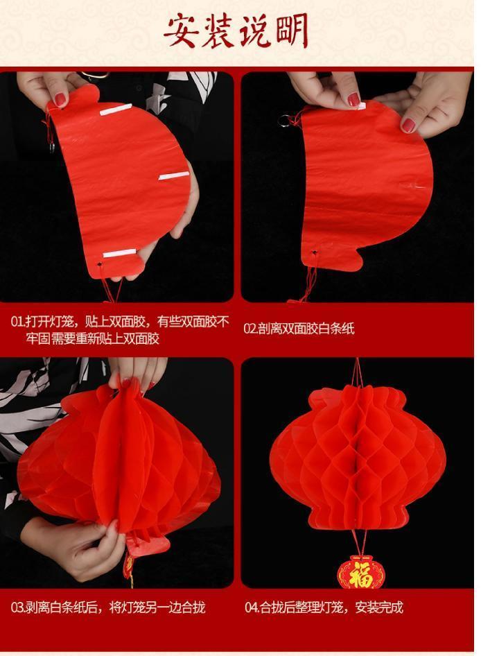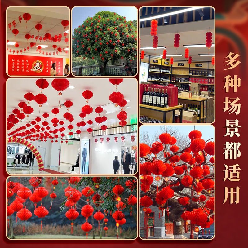 新年塑纸折叠灯笼春节挂饰小红灯笼结婚婚庆商场开业元旦装饰布置