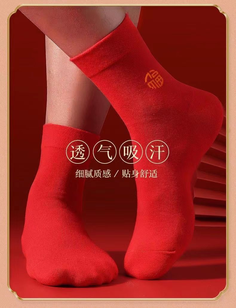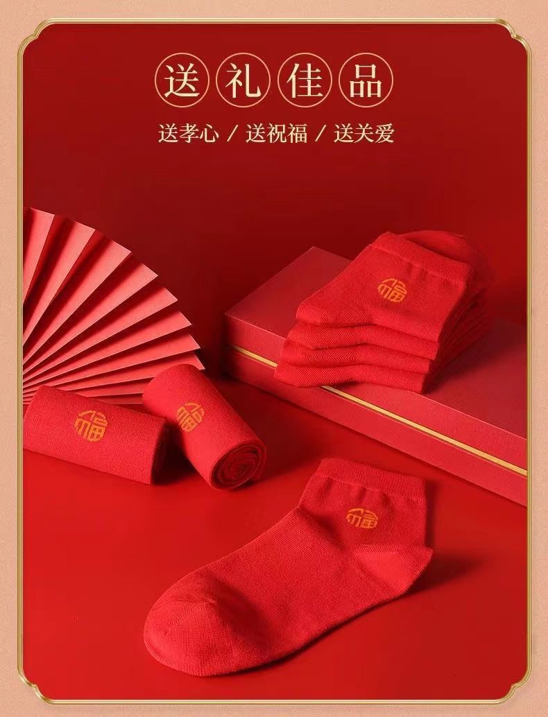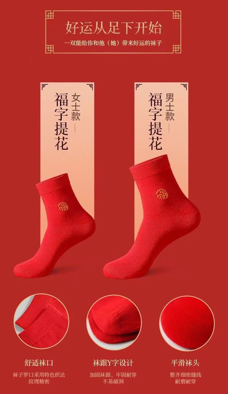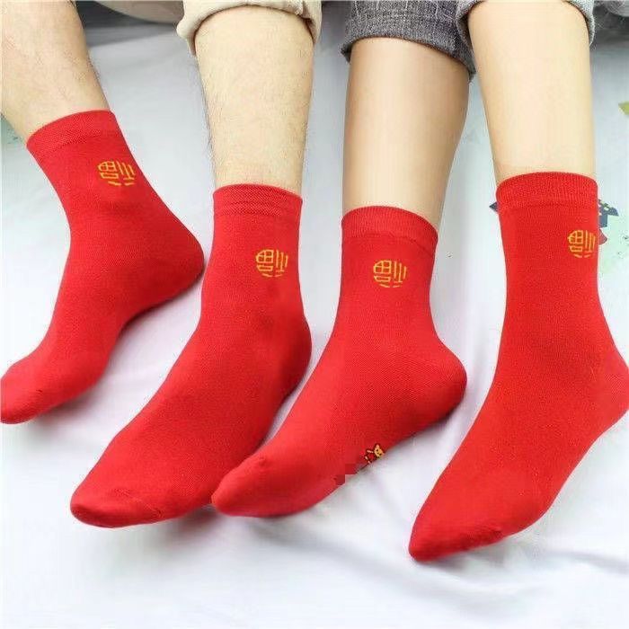 纯棉福字本命年冬天大红袜子蛇年男女情侣秋冬袜子新年中筒棉袜