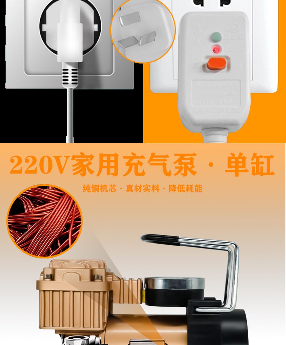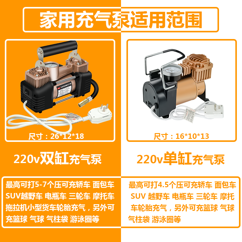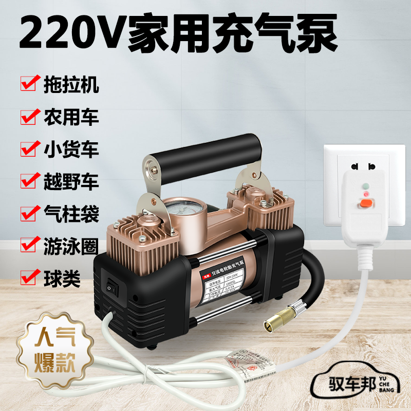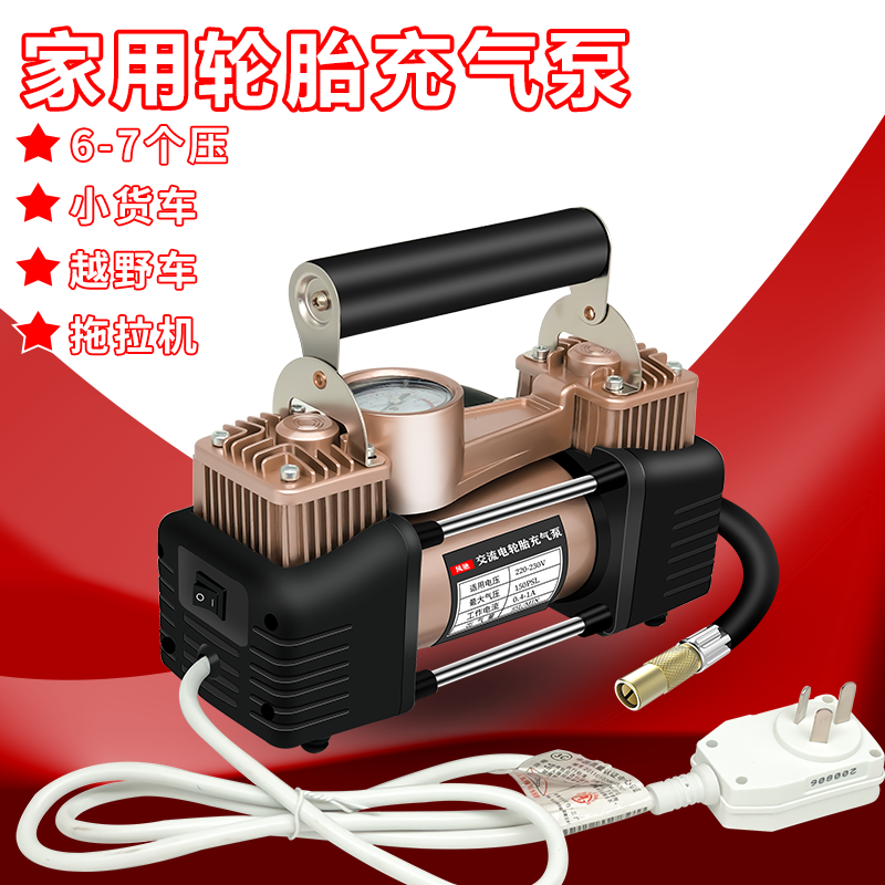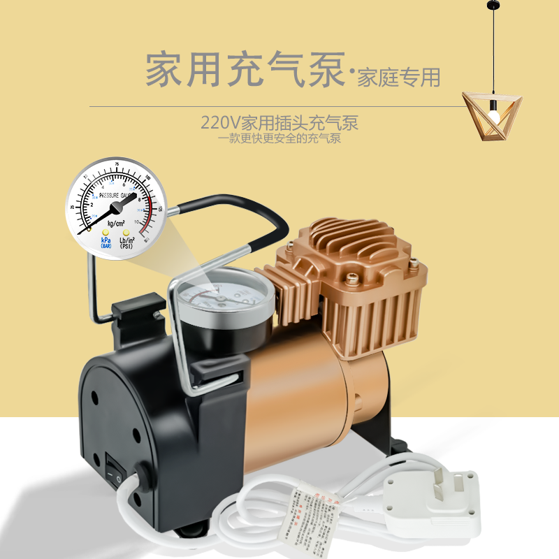 220v家用充气泵多功能便携式打气泵车载电动车自动打气筒充气轿车