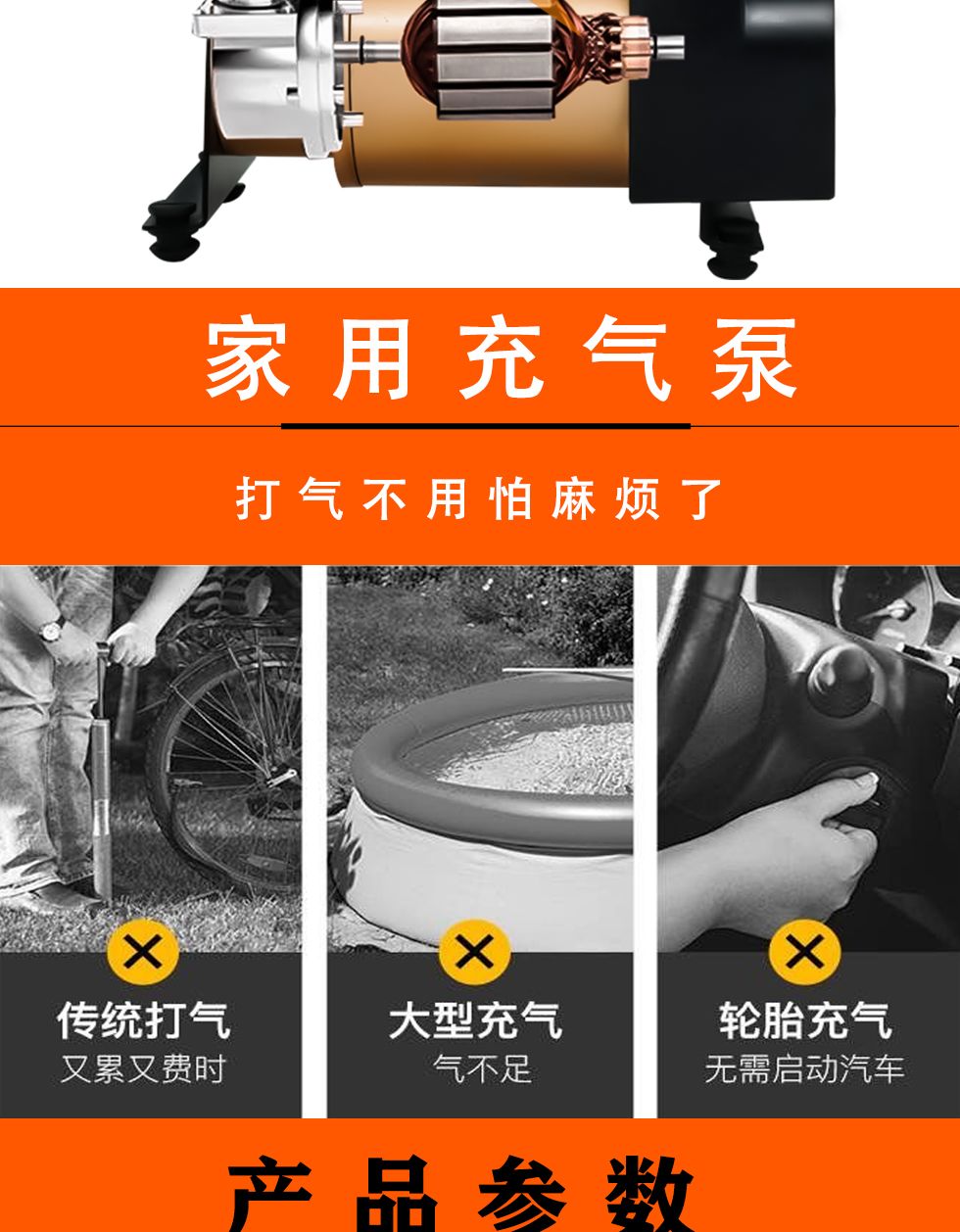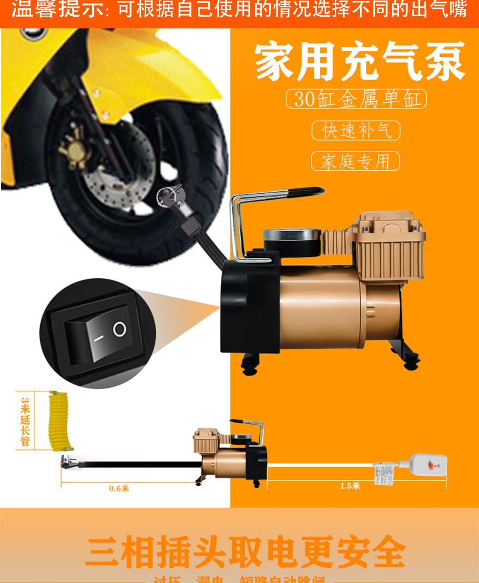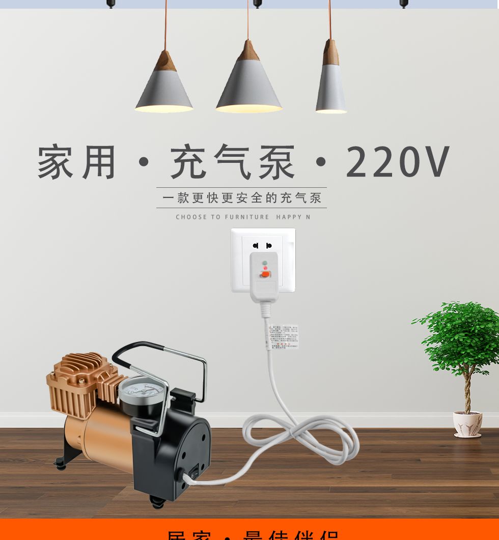220v家用充气泵多功能便携式打气泵车载电动车自动打气筒充气轿车