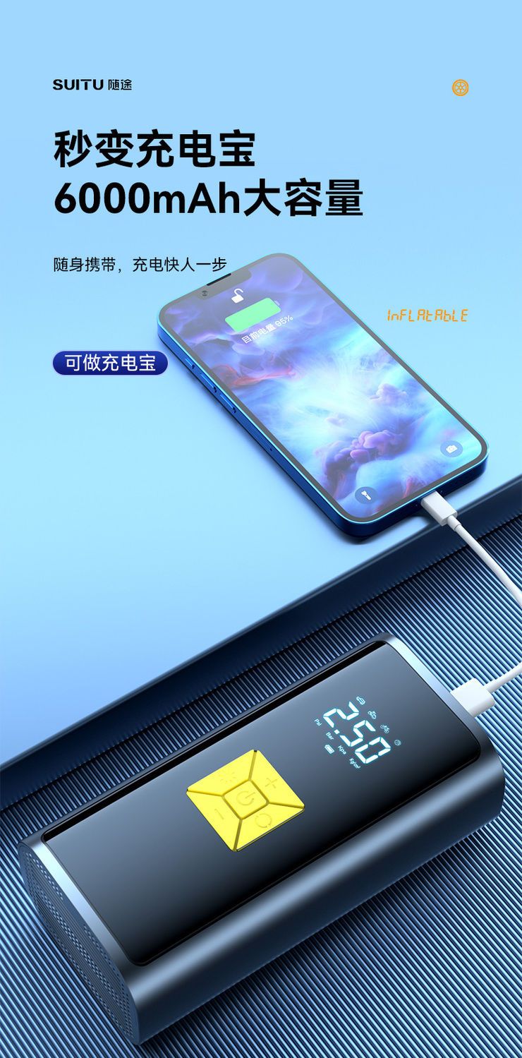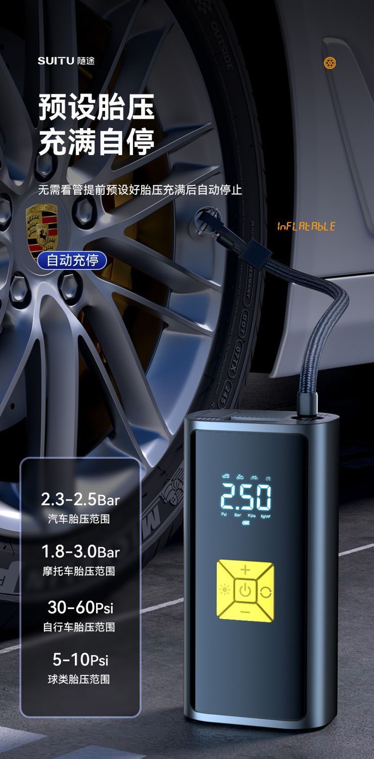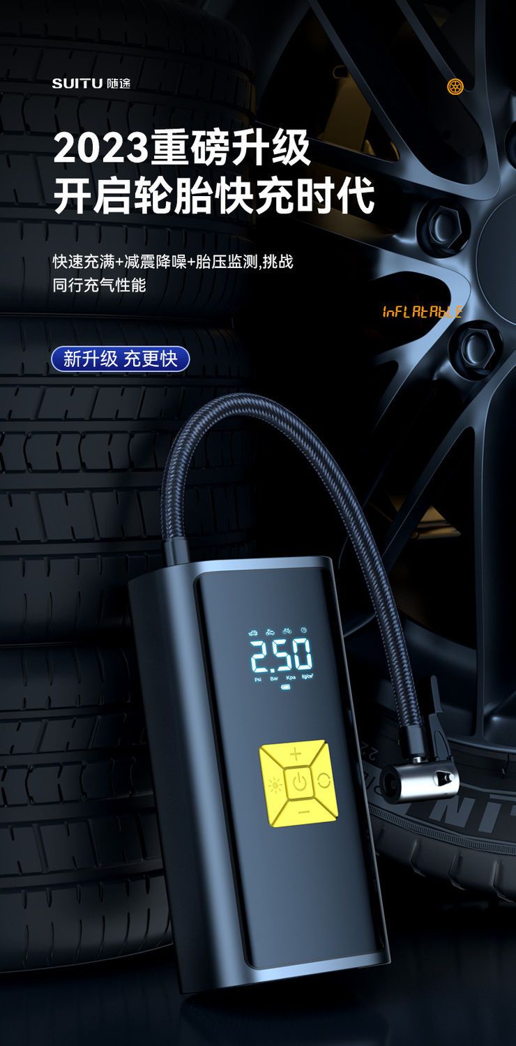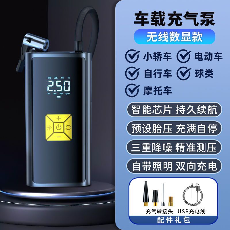 无线车载充气泵便携式汽车电动车自行车打气泵电动轮胎充智能打气