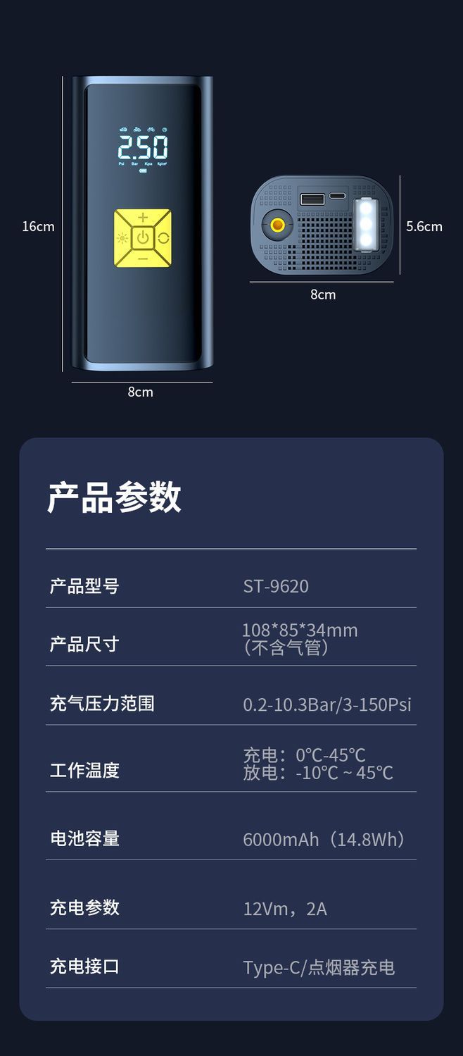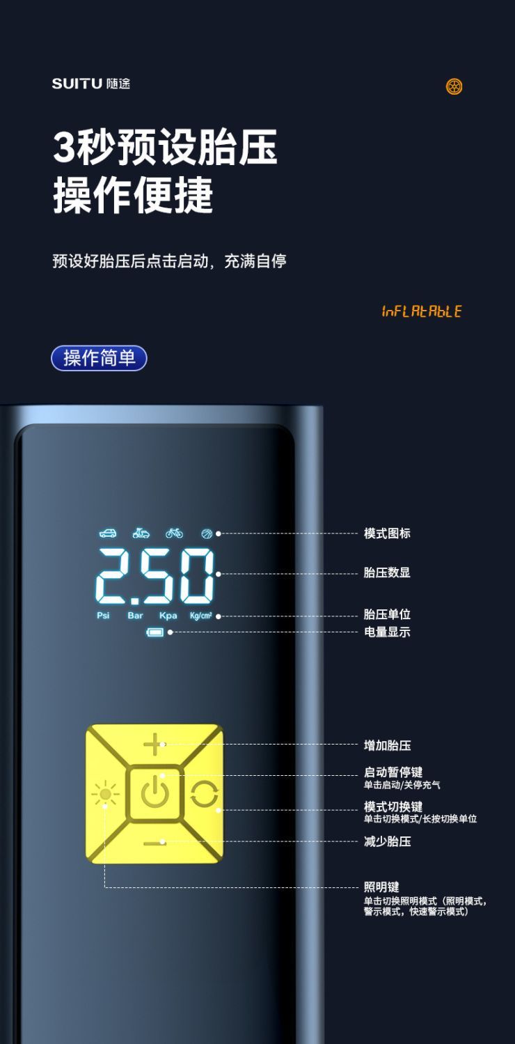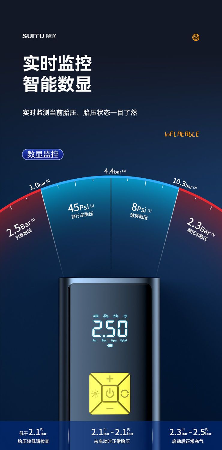无线车载充气泵便携式汽车电动车自行车打气泵电动轮胎充智能打气