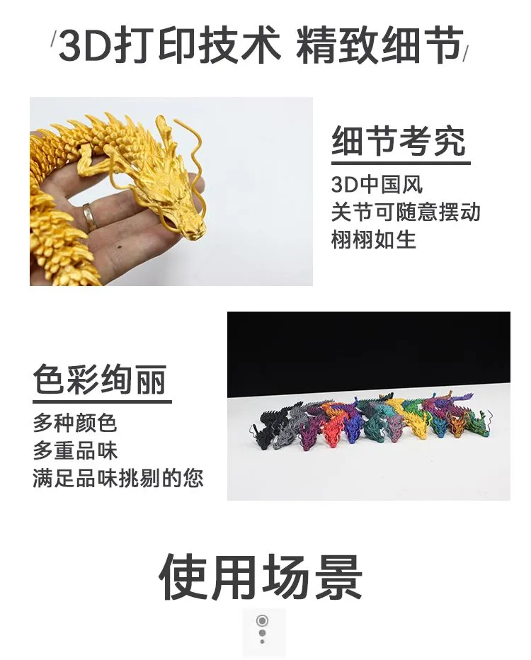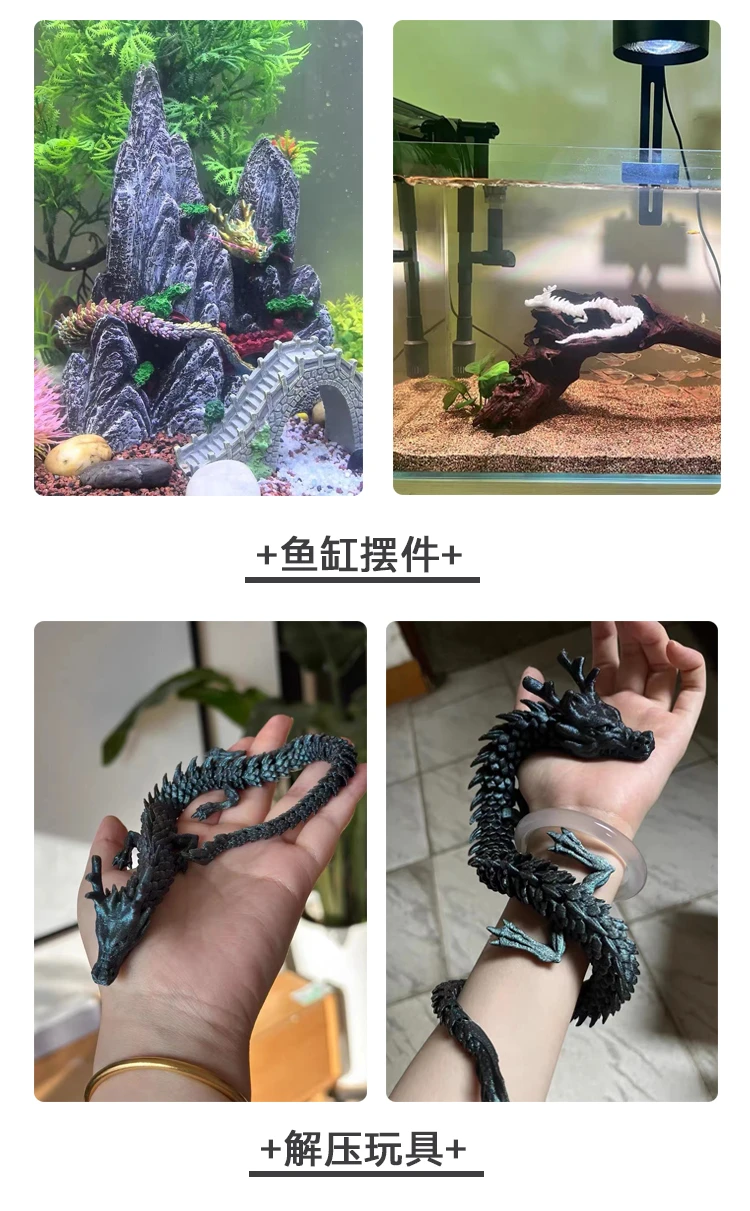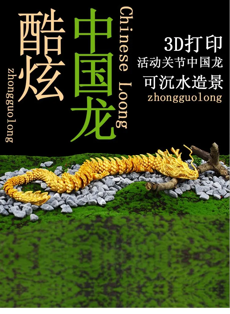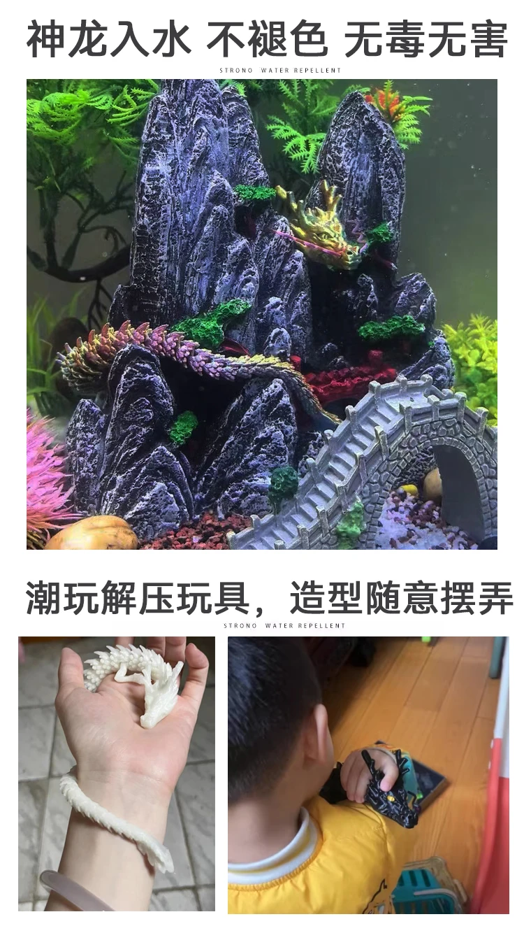 3d打印关节龙鱼缸造景中国龙模型玩具龙摆件全身可动龙可沉水手办