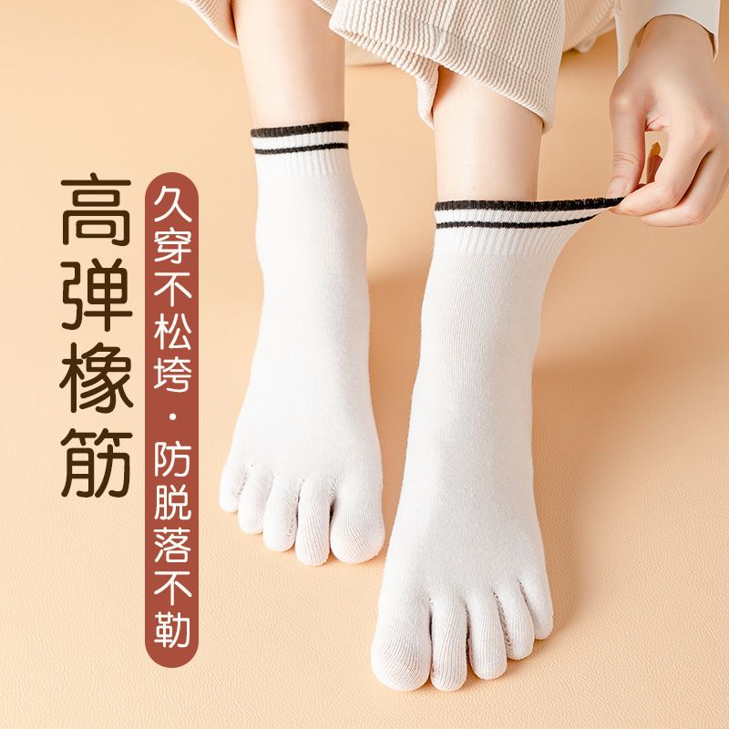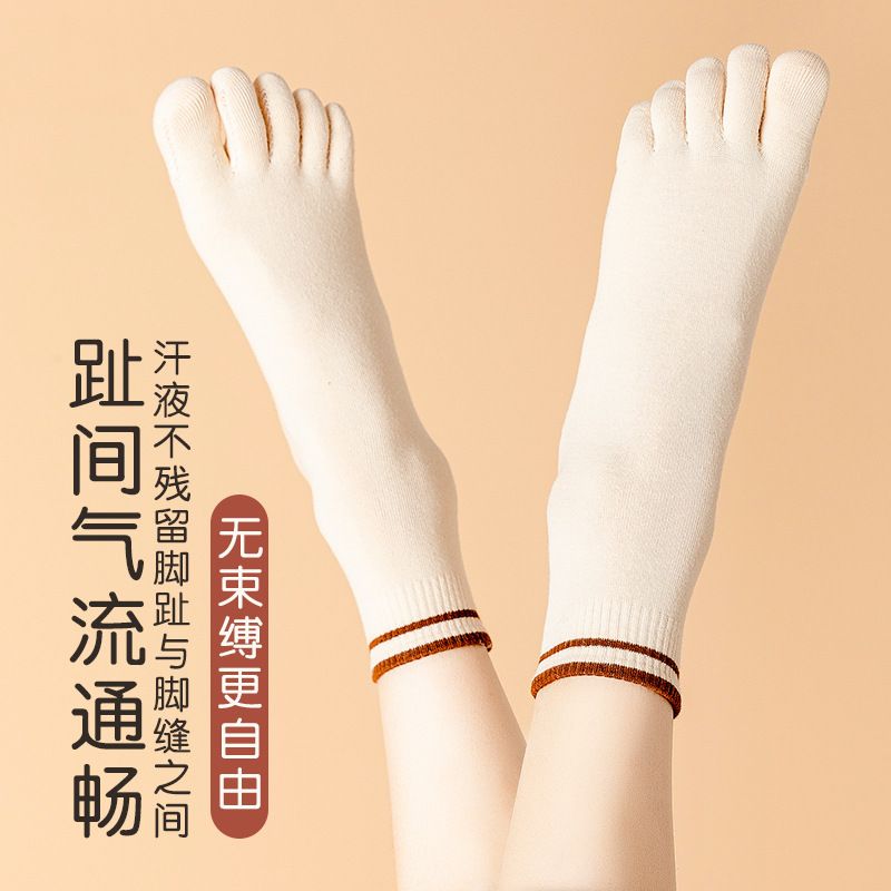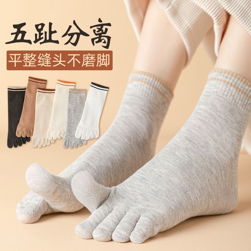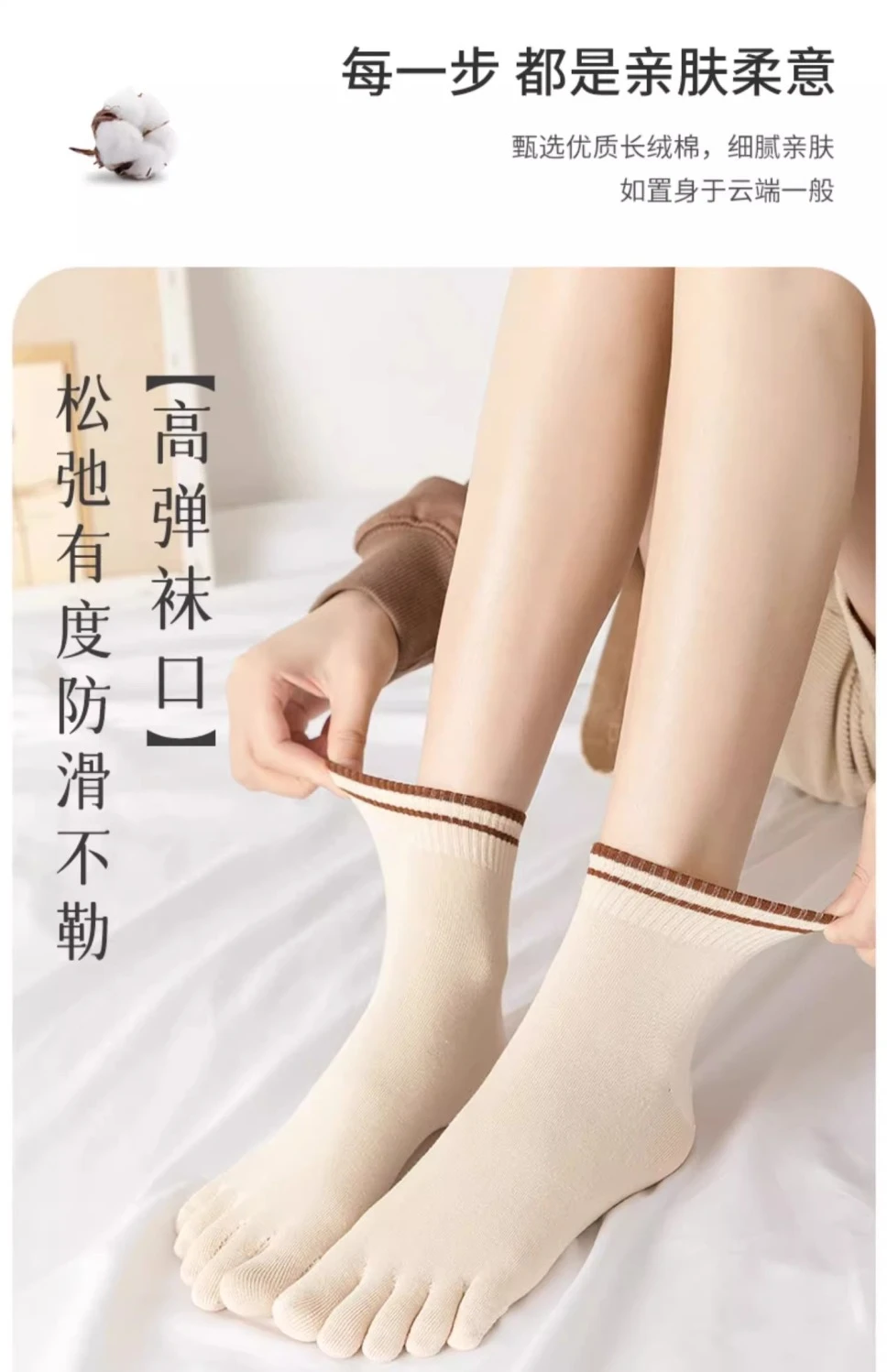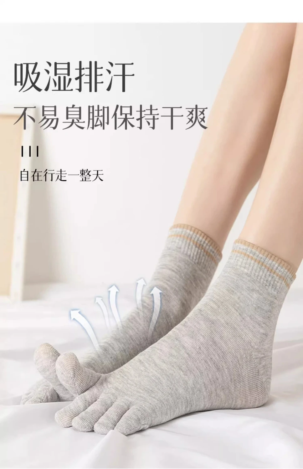 五指袜子女中筒袜纯棉夏季五趾袜防臭春秋棉袜夏天袜子分脚趾短袜