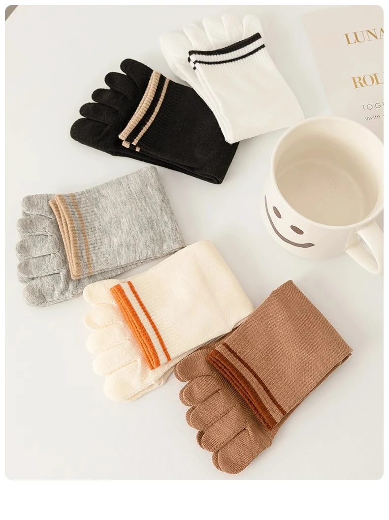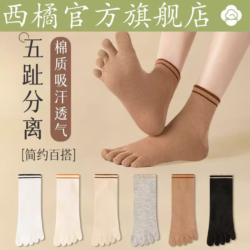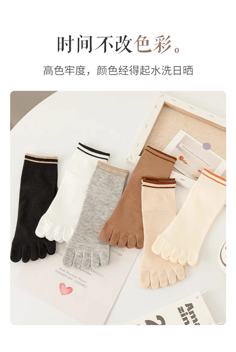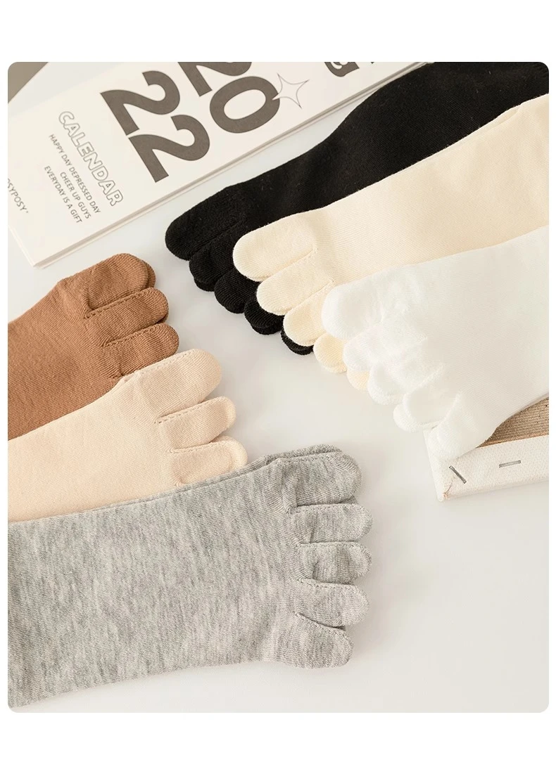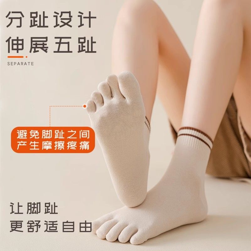 五指袜子女中筒袜纯棉夏季五趾袜防臭春秋棉袜夏天袜子分脚趾短袜