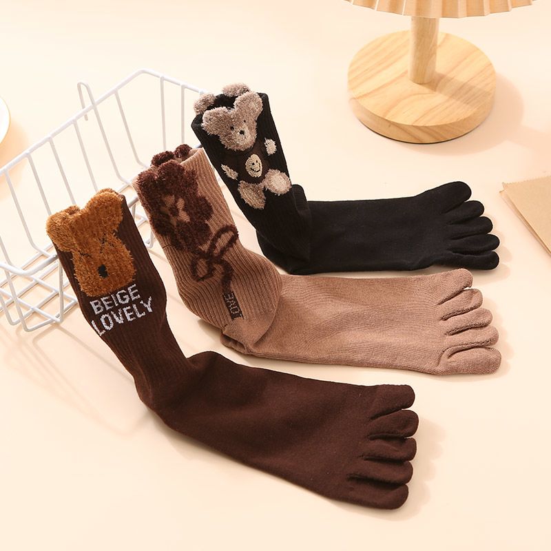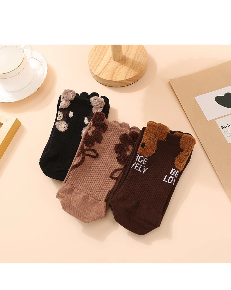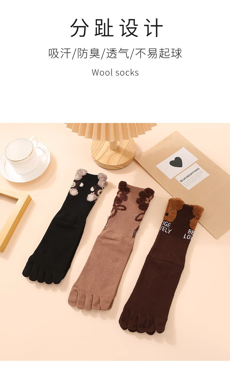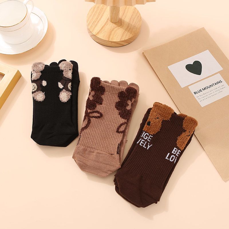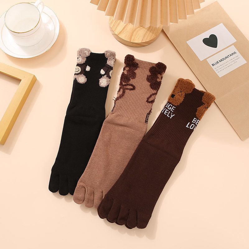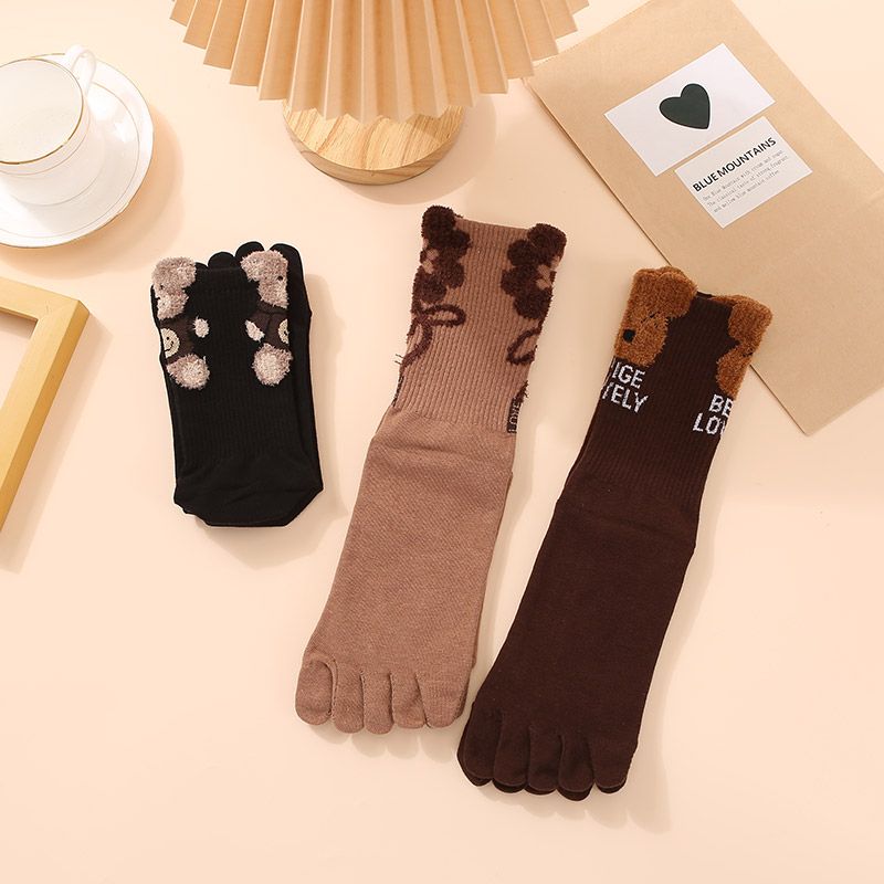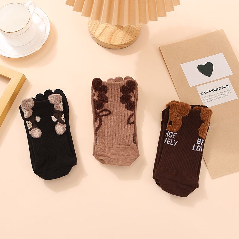 | popular plush bear toe socks (pack of three pairs) each one pair respectively(爆款毛绒熊五指袜(三双装)每款各一双) | USD $3.83 | 999999 piece available |