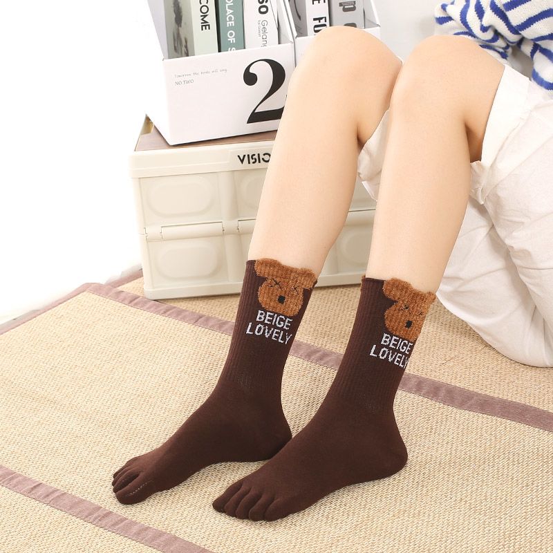 五指袜女秋冬季长筒纯棉ins百搭网红羽毛纱小熊爆款高筒堆堆袜子