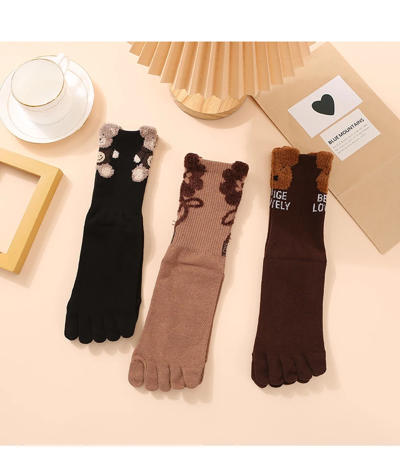 | popular plush bear toe socks (pack of three pairs) style 2(爆款毛绒熊五指袜 (三双装) 款式二) | USD $3.83 | 999999 piece available |
