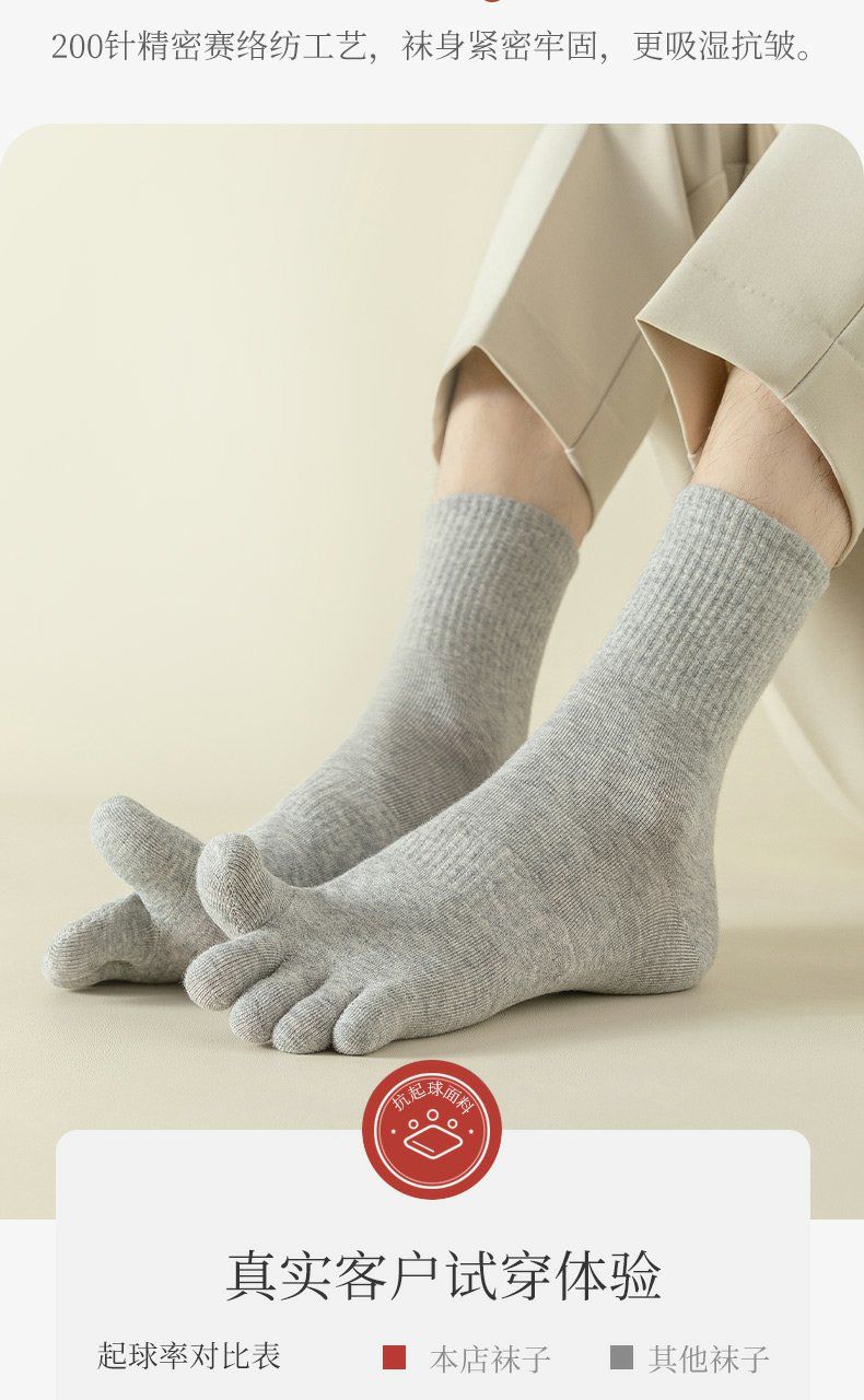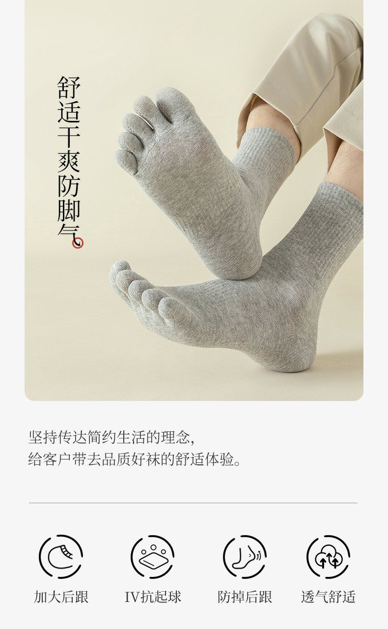 五指袜子男士中筒纯棉夏季防脚气长筒分趾袜防臭春秋款短袜青少年