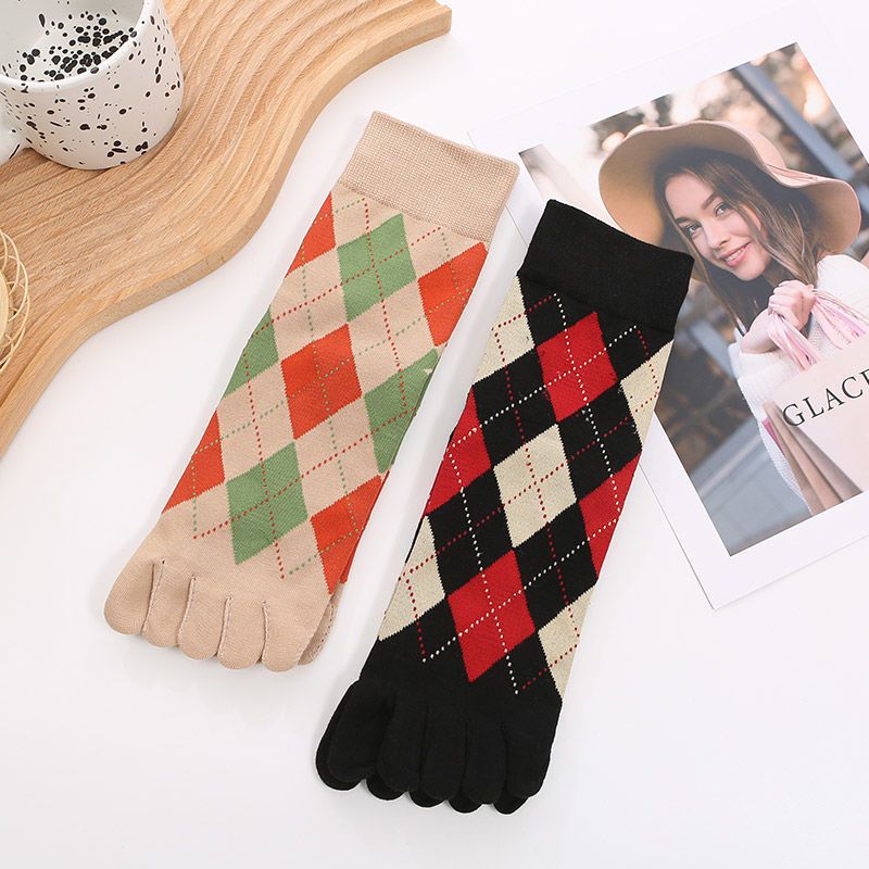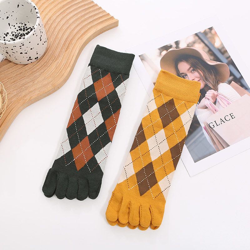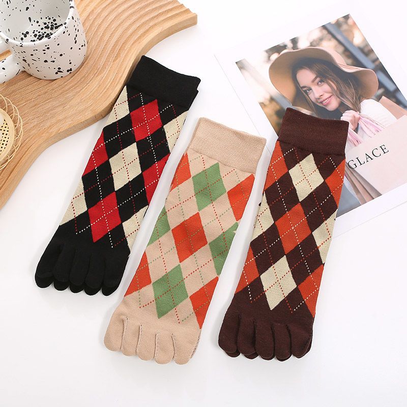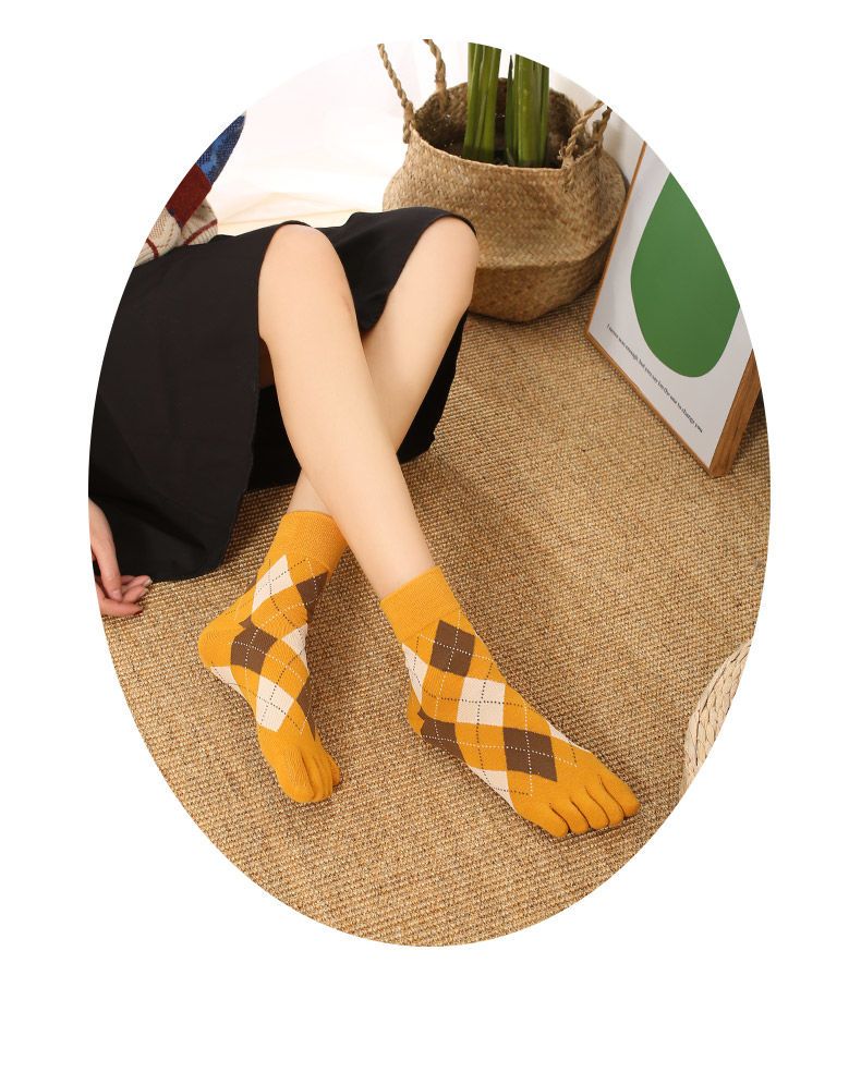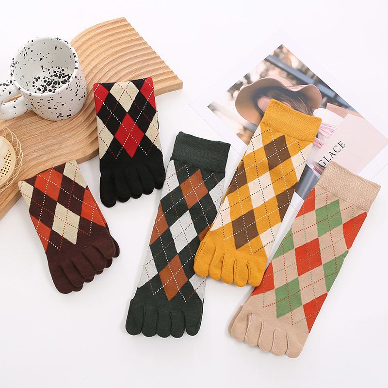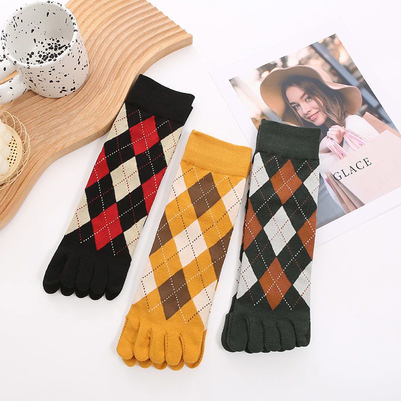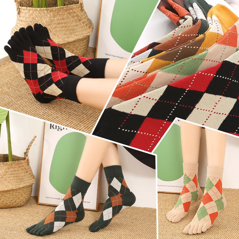 五指袜子女纯棉中筒秋冬复古爆款潮流百搭ins英伦风分趾格子袜子
