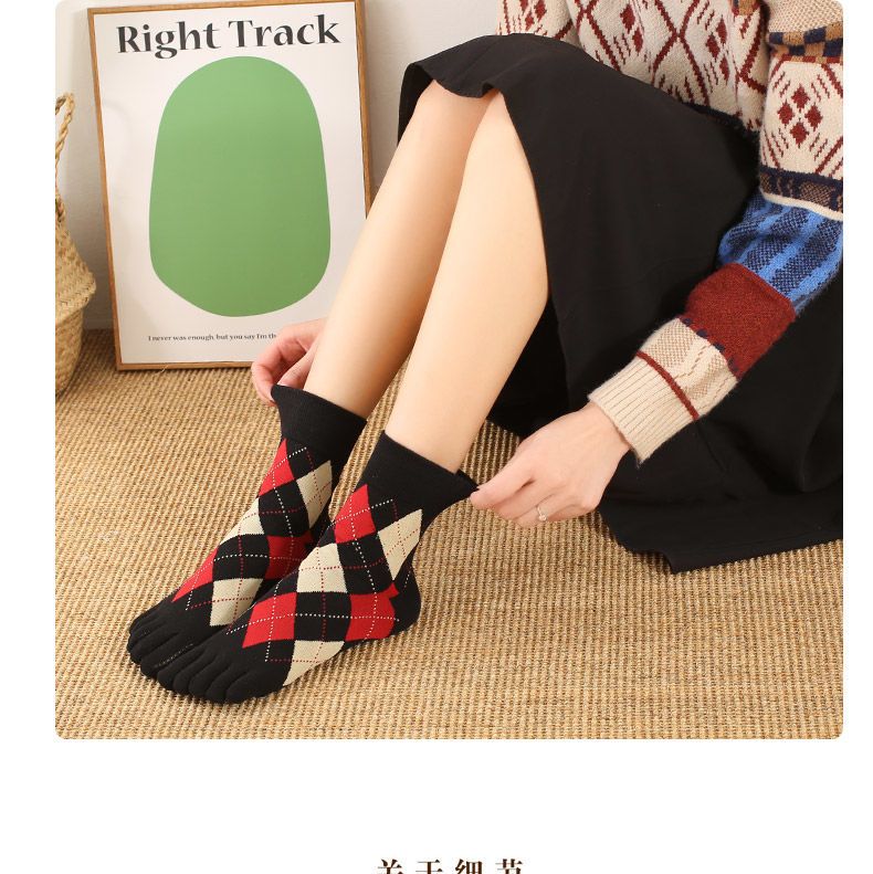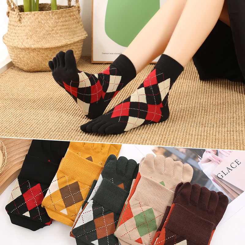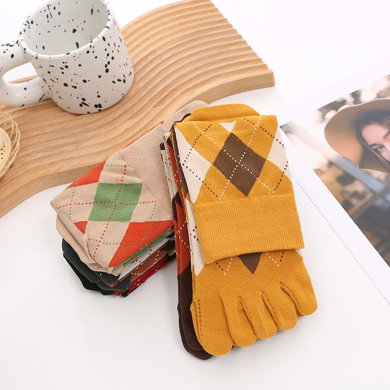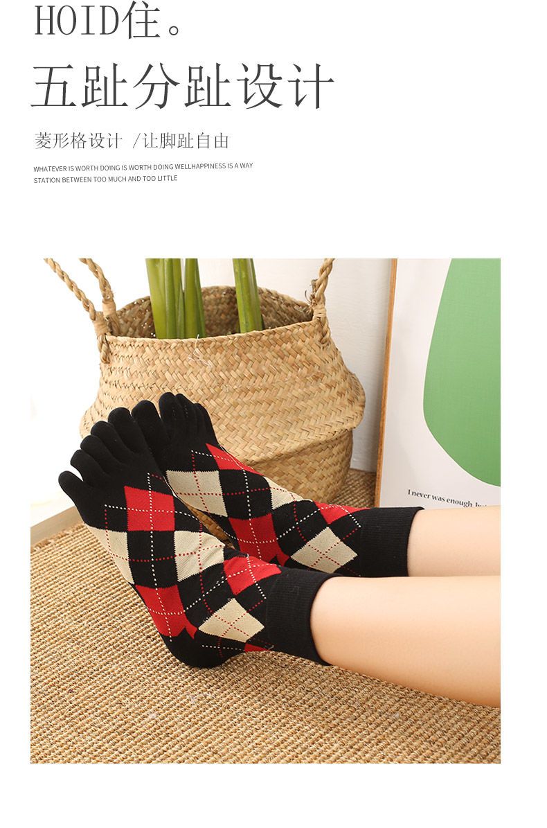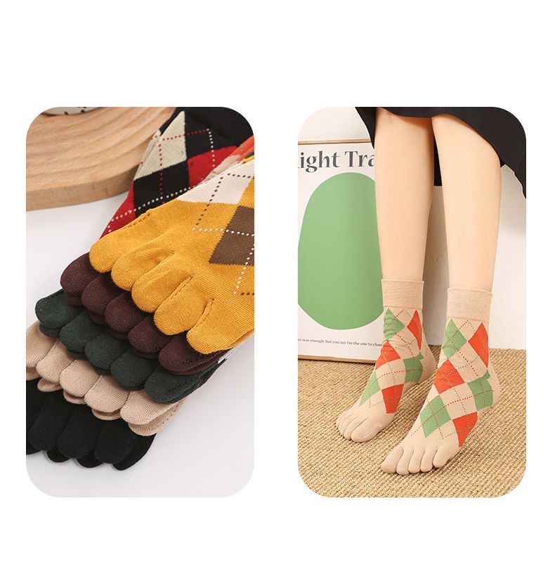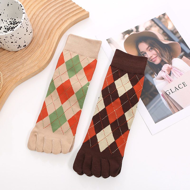 五指袜子女纯棉中筒秋冬复古爆款潮流百搭ins英伦风分趾格子袜子