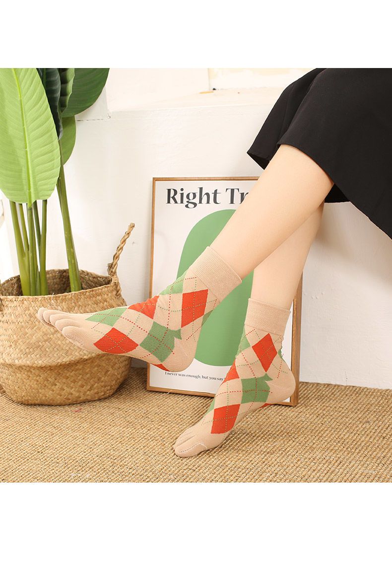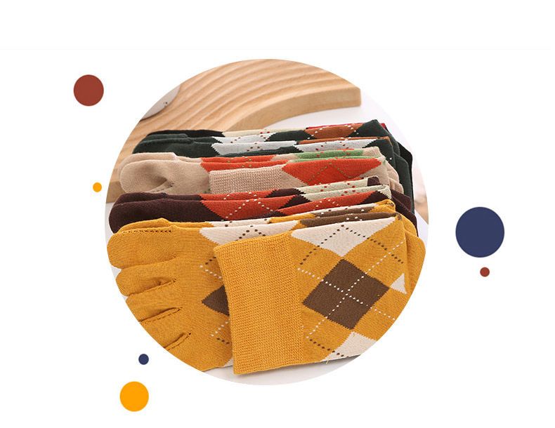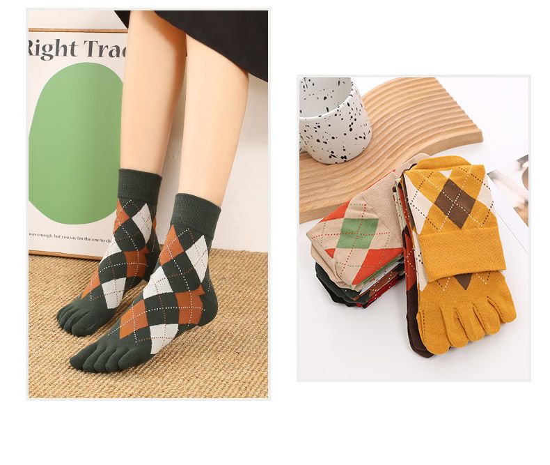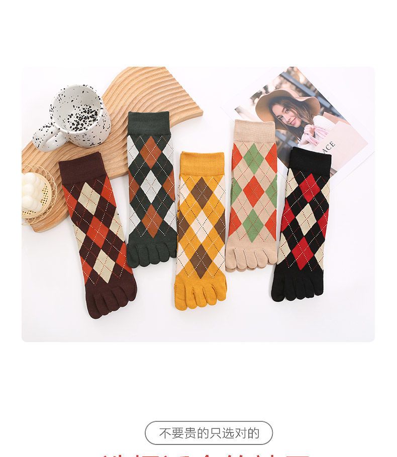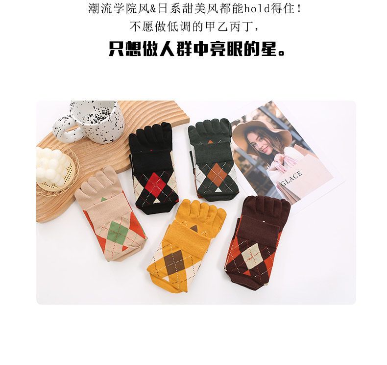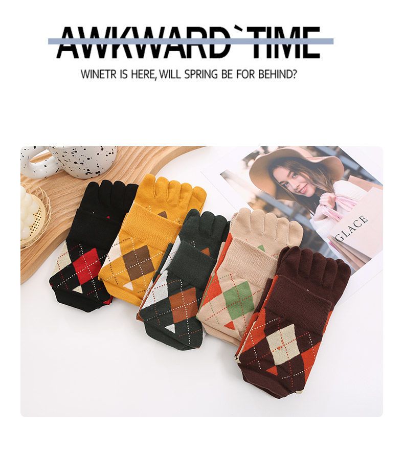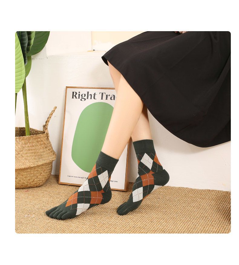 五指袜子女纯棉中筒秋冬复古爆款潮流百搭ins英伦风分趾格子袜子