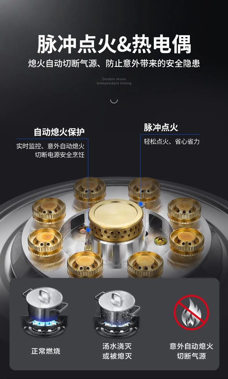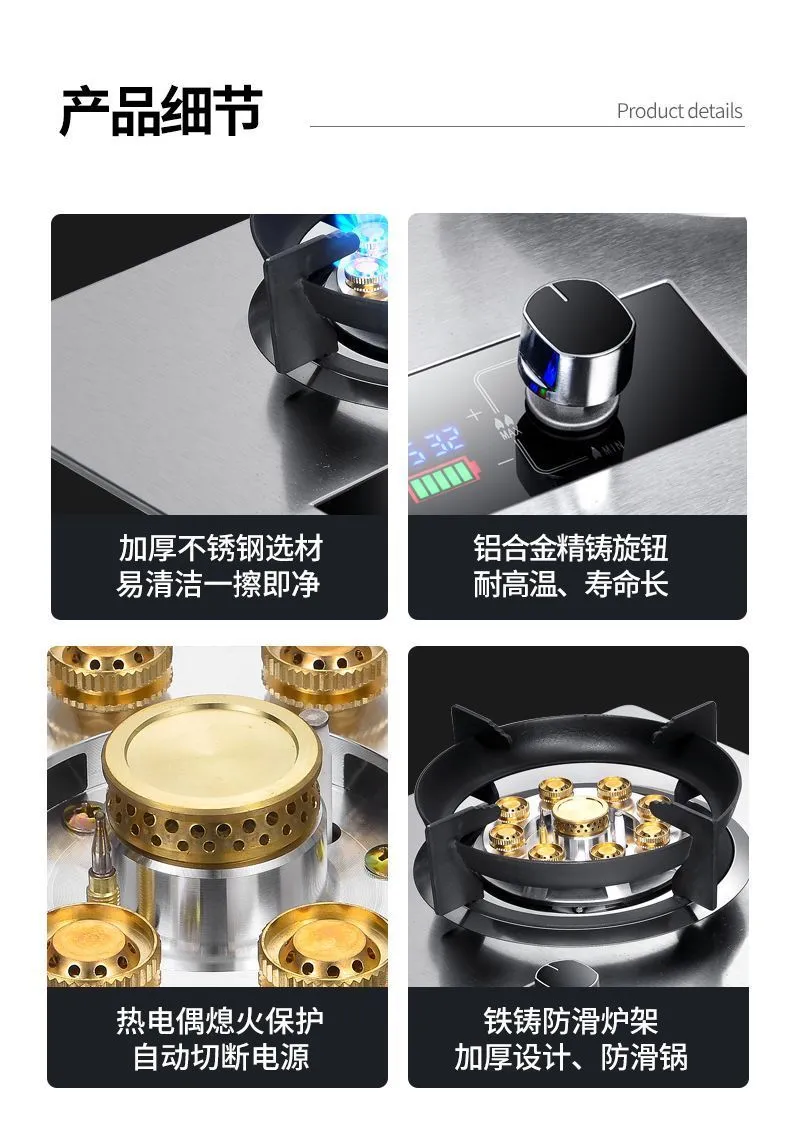 | double nine-chamber fierce fire + stainless steel surface + energy gathering windproof and extinguishing protection(双九腔猛火+不锈钢面+聚能防风熄保) | USD $39.45 | 999999 piece available |