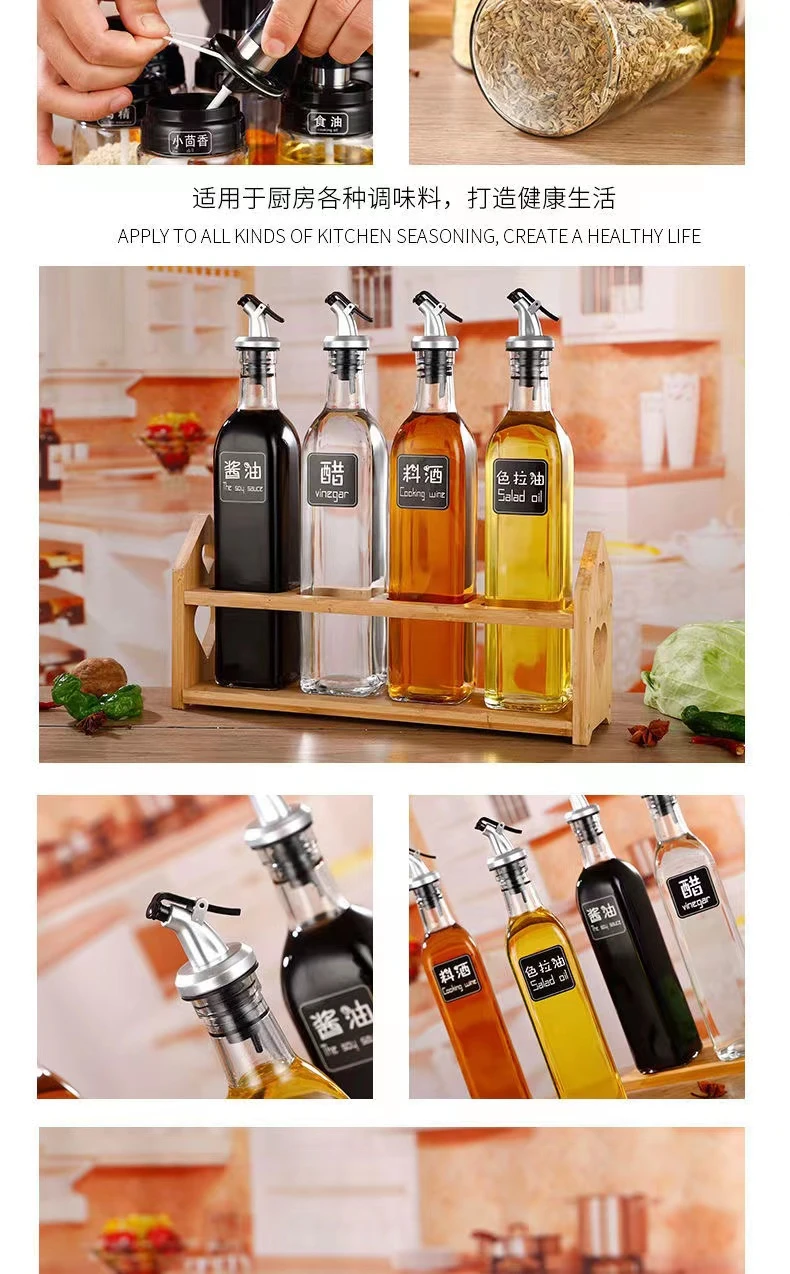 | 4 glass oil bottle +16 stickers +1 funnel(4玻璃方油瓶+16张贴纸+1漏斗) | USD $4.24 | 999999 piece available |