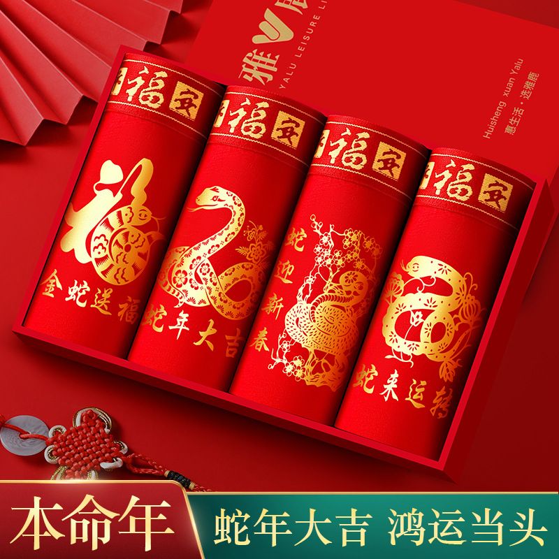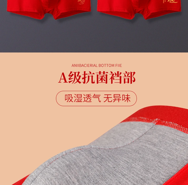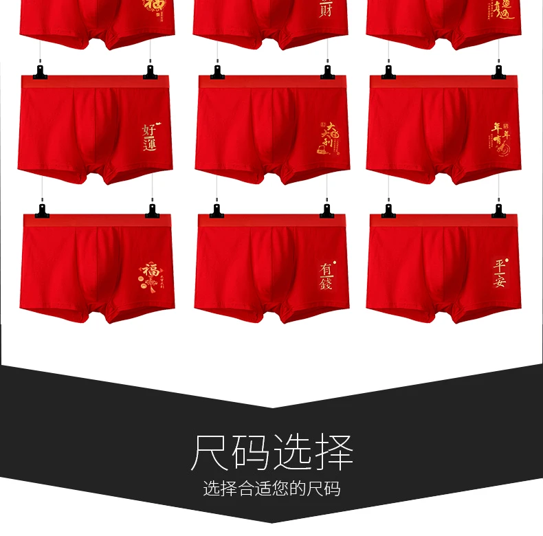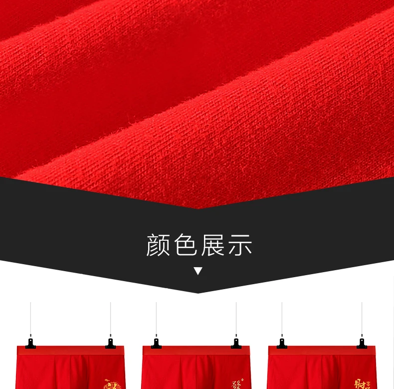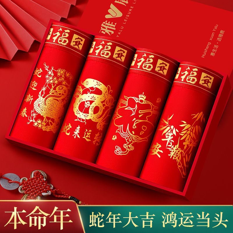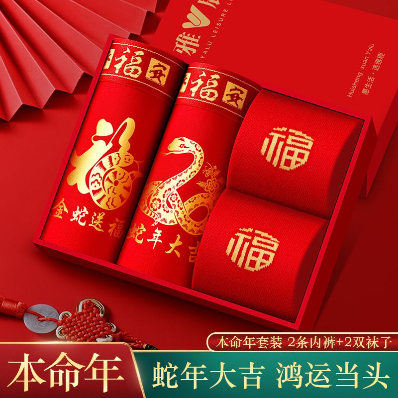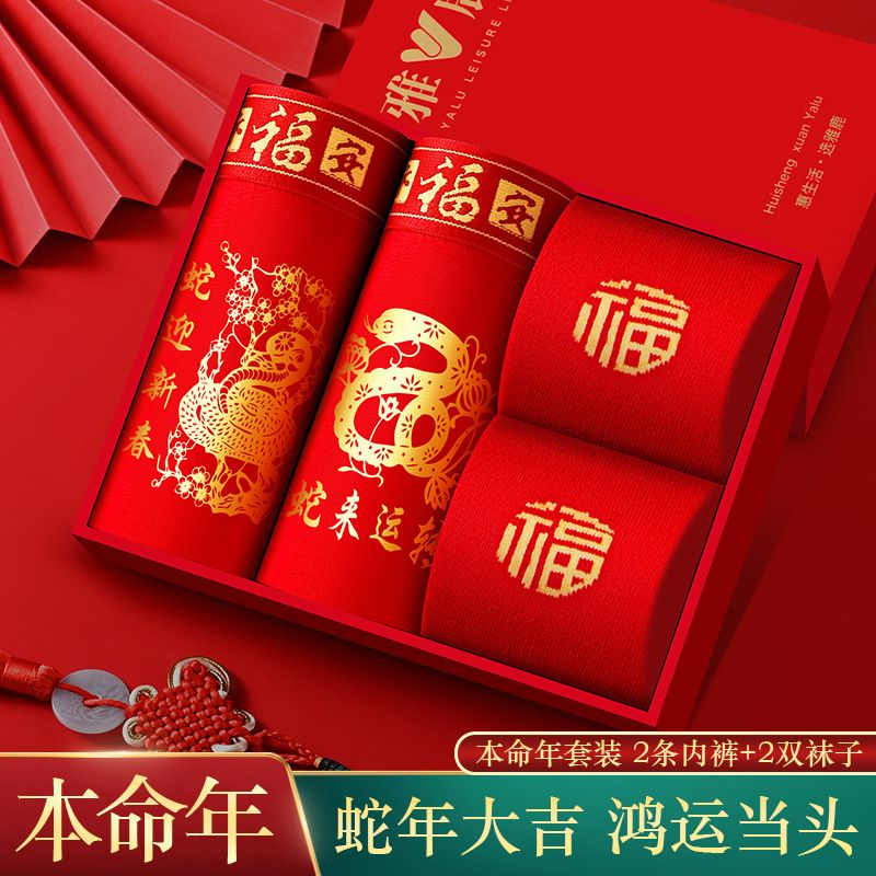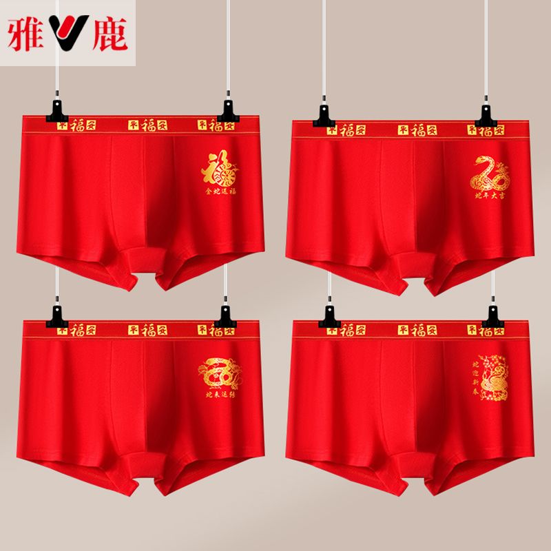 雅鹿2条纯棉男士内裤大红本命年结婚春节红裤蛇年裤衩红袜子四角