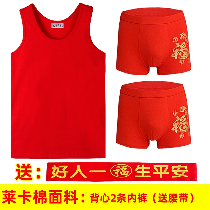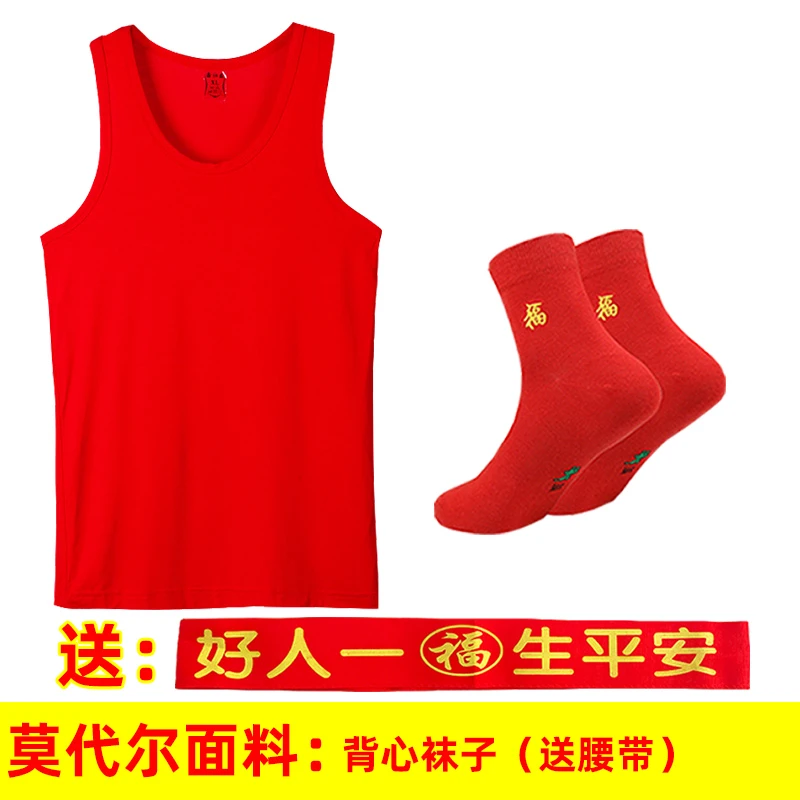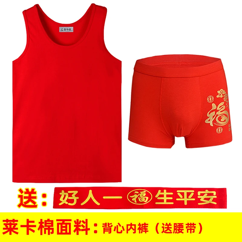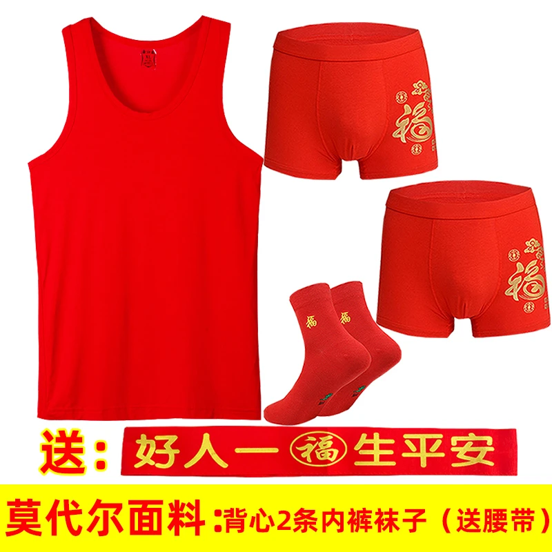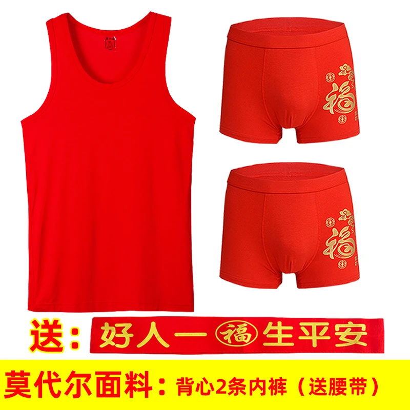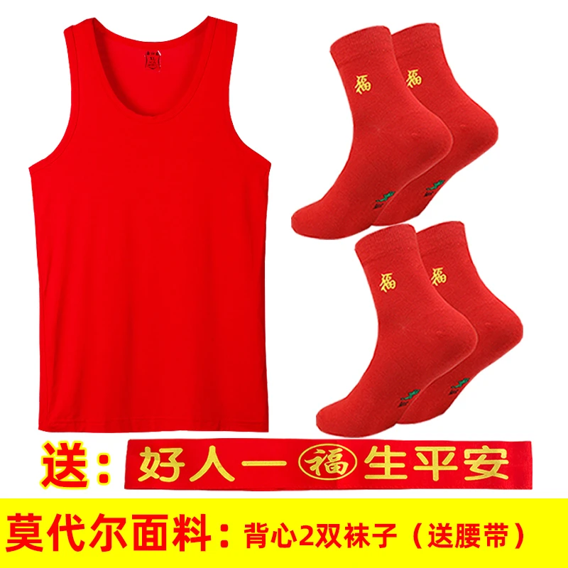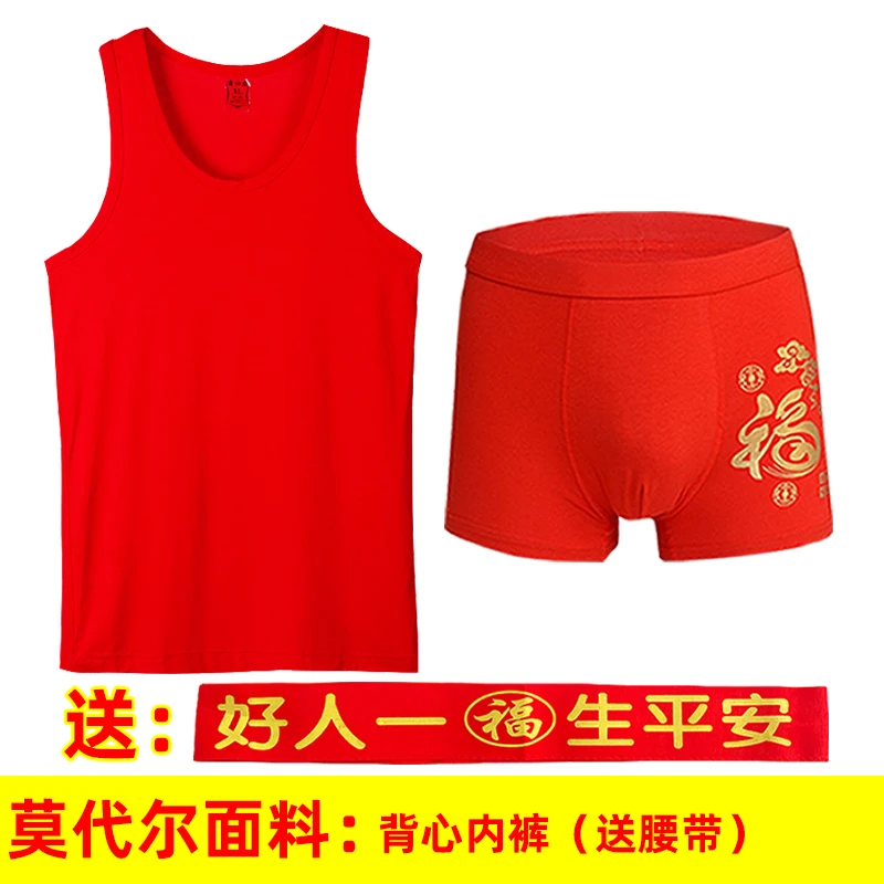 本命年男士红背心莫代尔薄款红内裤结婚内衣套装莱卡棉背心内裤