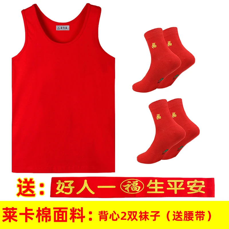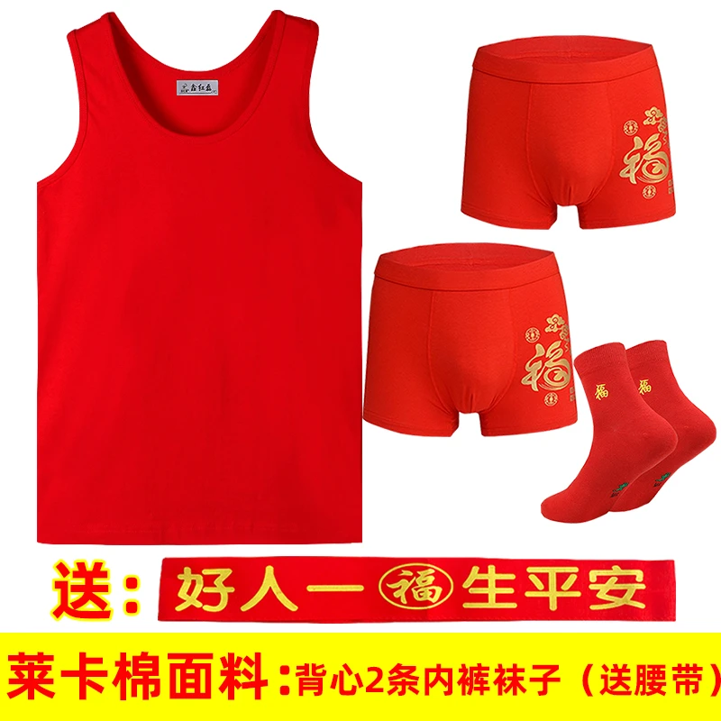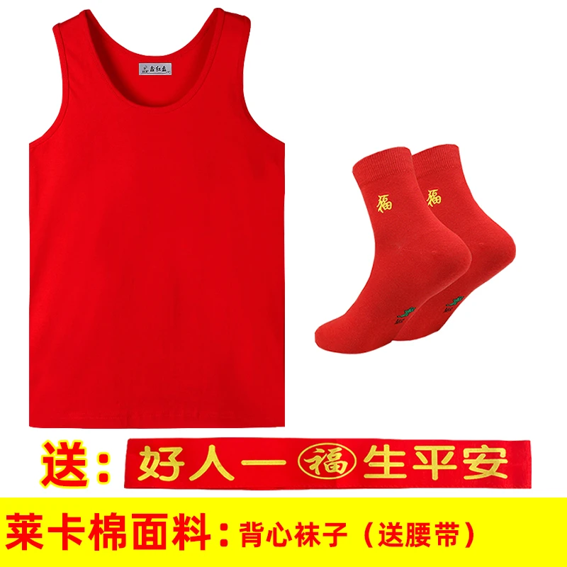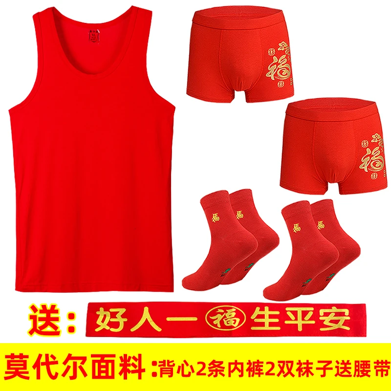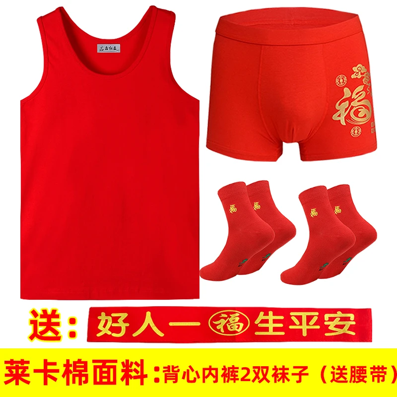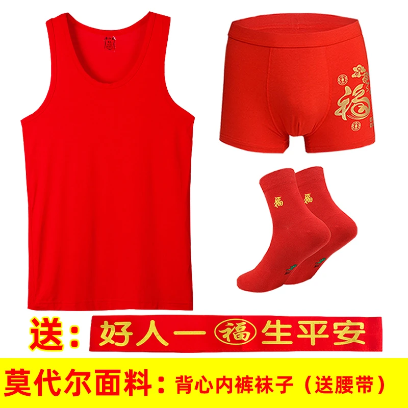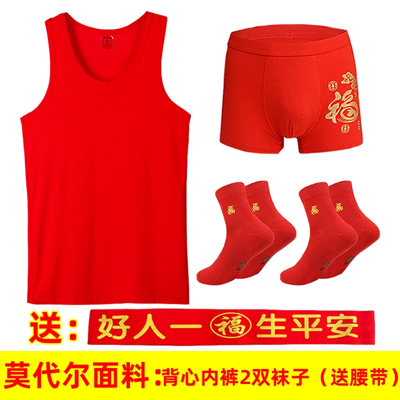 本命年男士红背心莫代尔薄款红内裤结婚内衣套装莱卡棉背心内裤