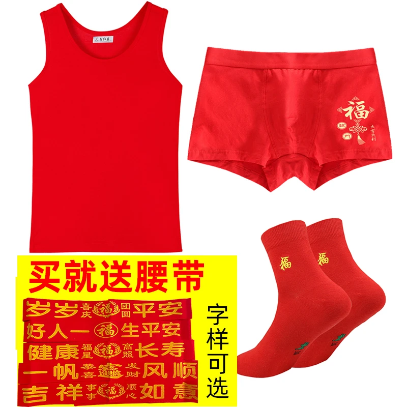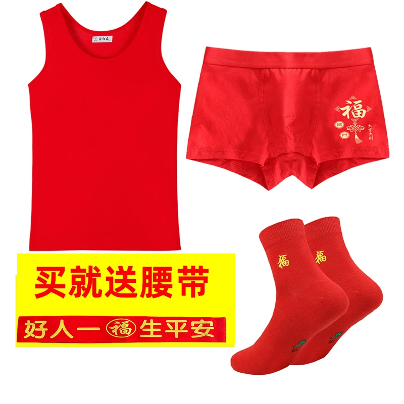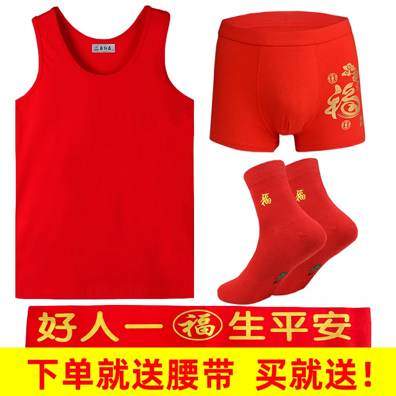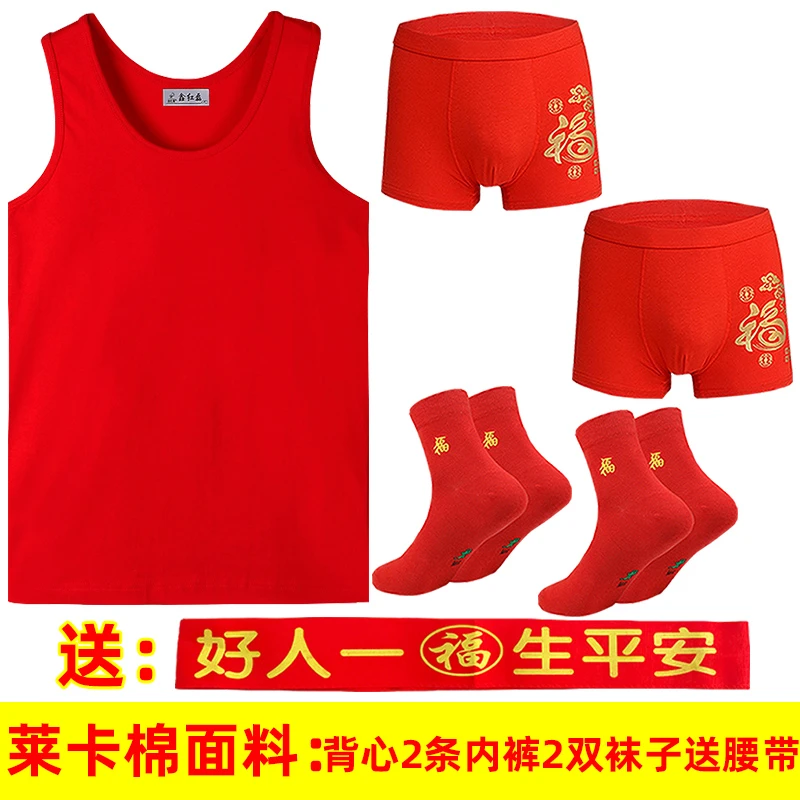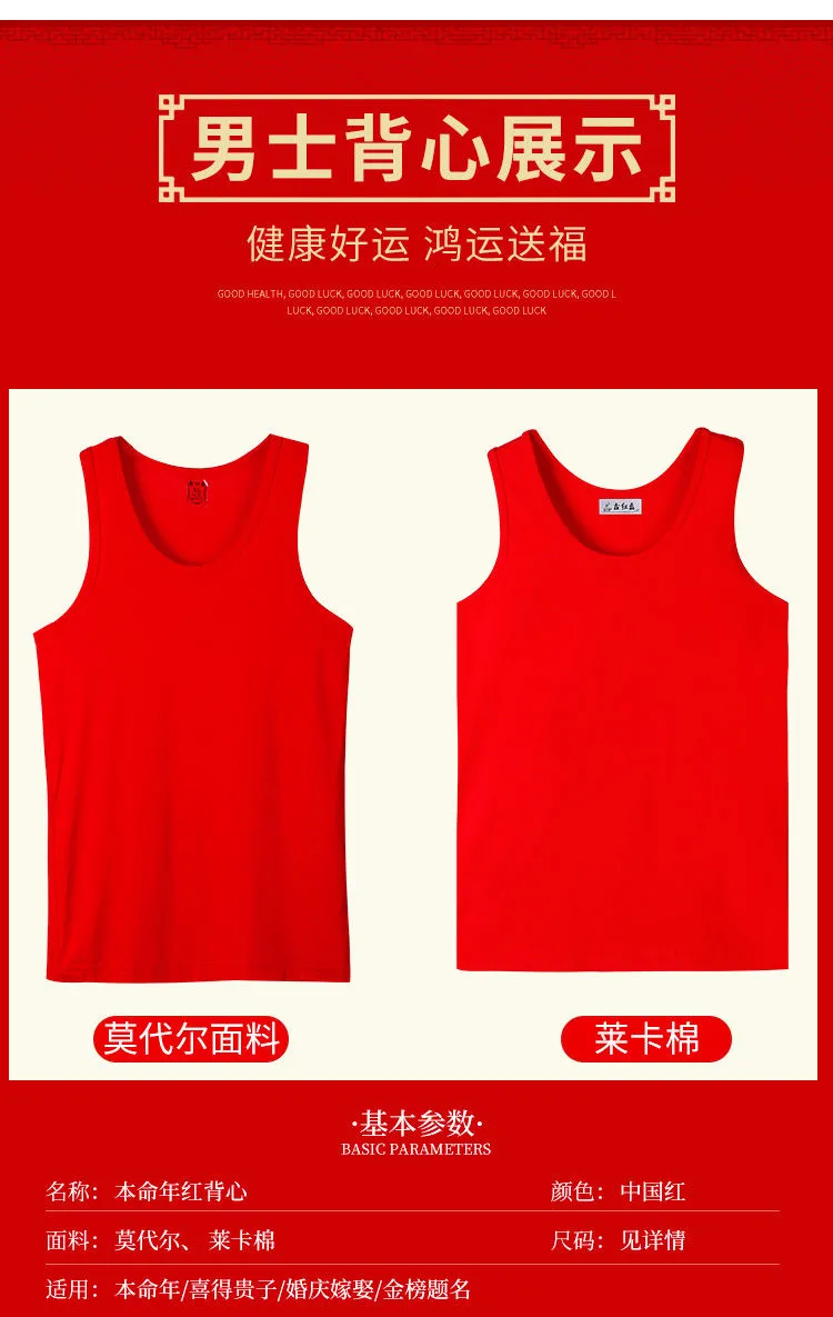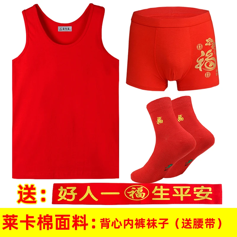 本命年男士红背心莫代尔薄款红内裤结婚内衣套装莱卡棉背心内裤