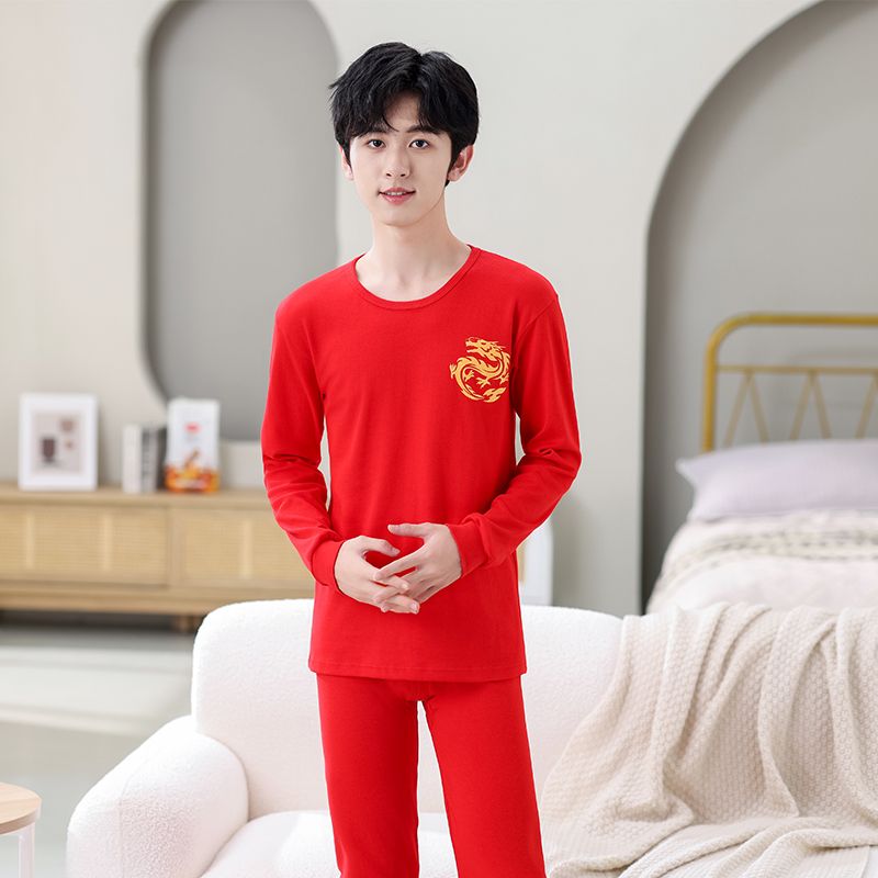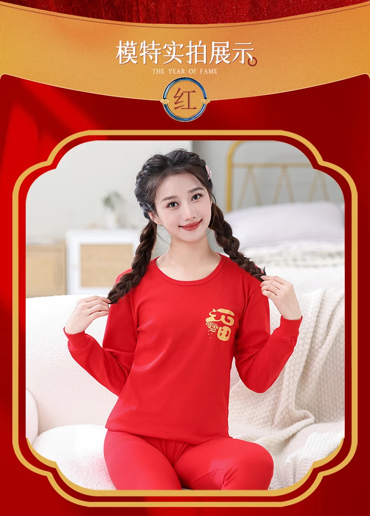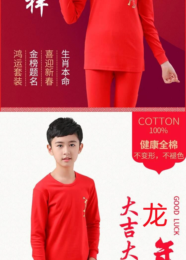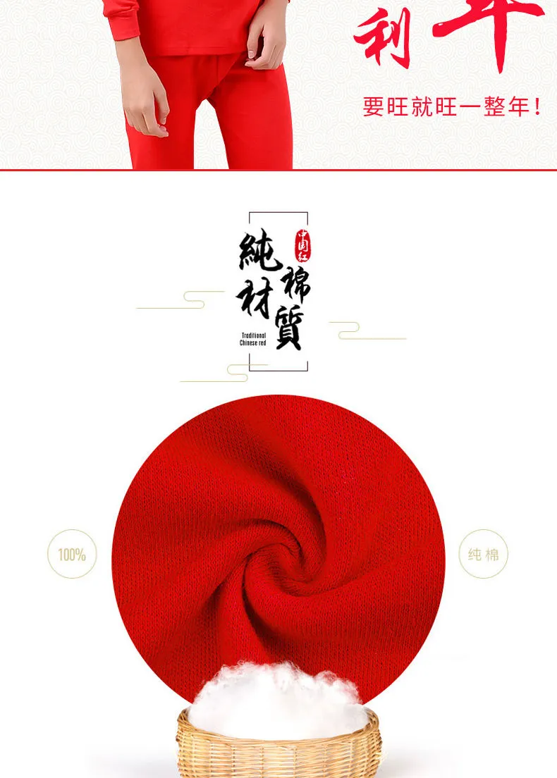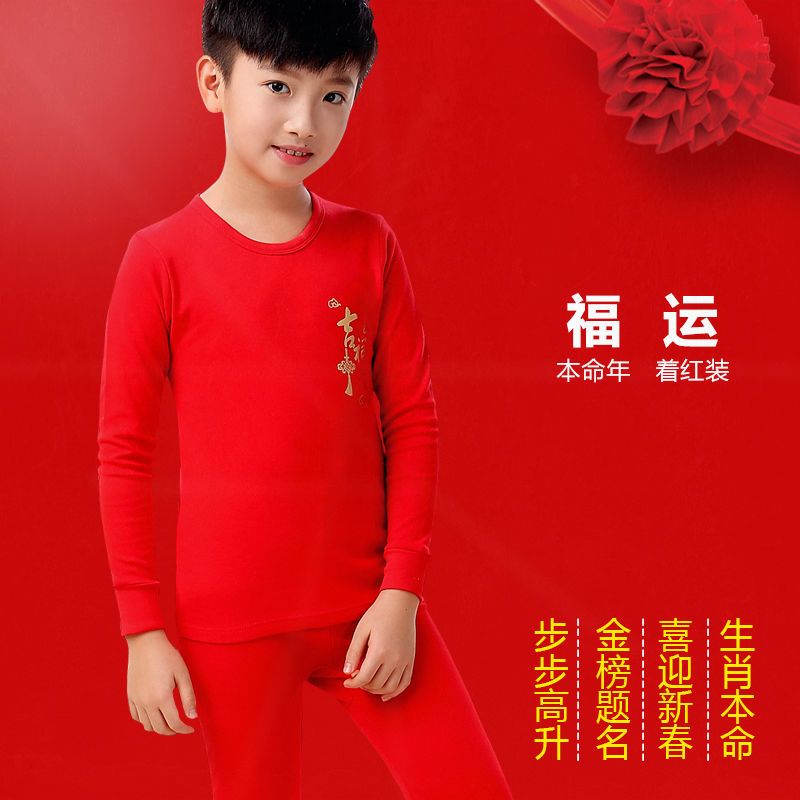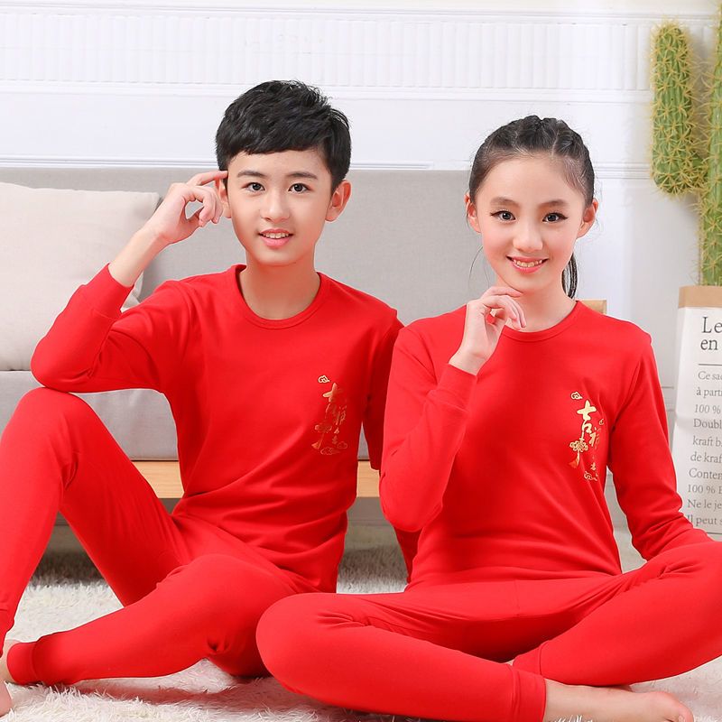 儿童本命年红色内衣套装纯棉男大童女童13蛇年保暖秋衣秋裤12周岁