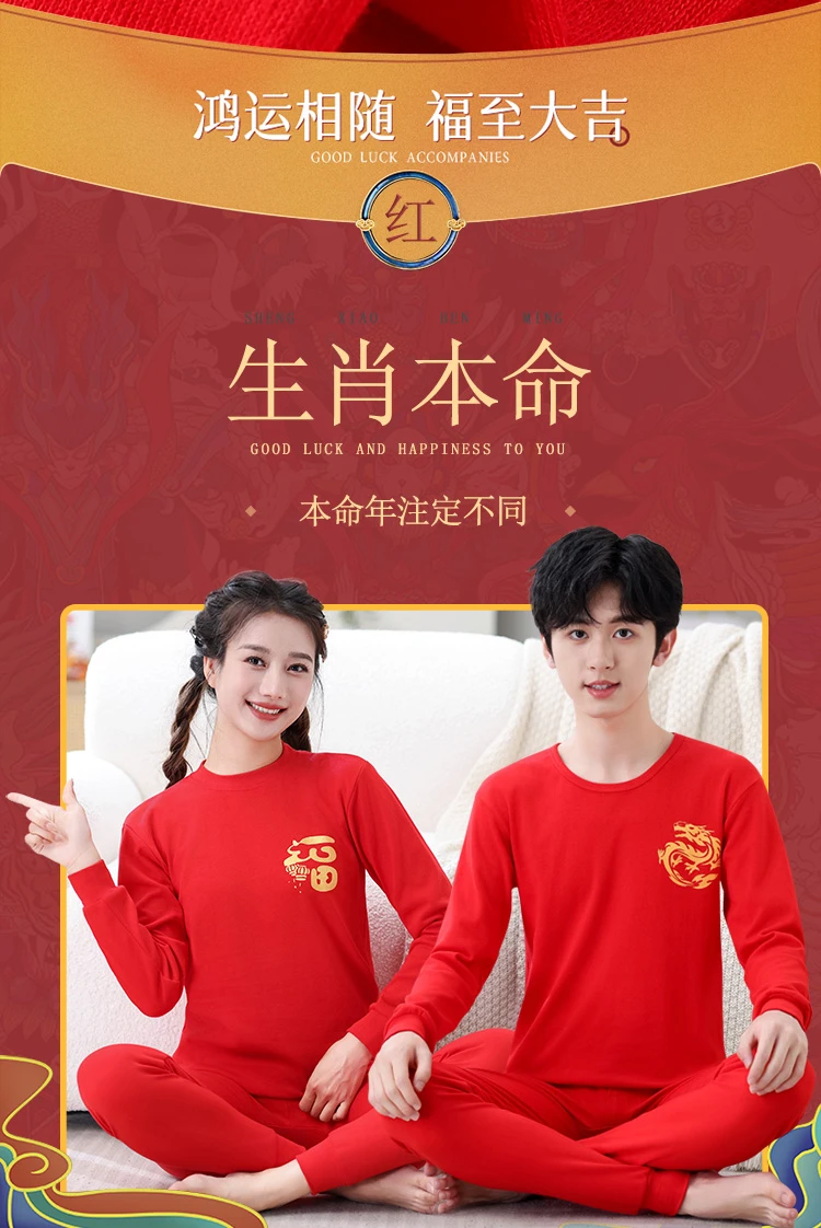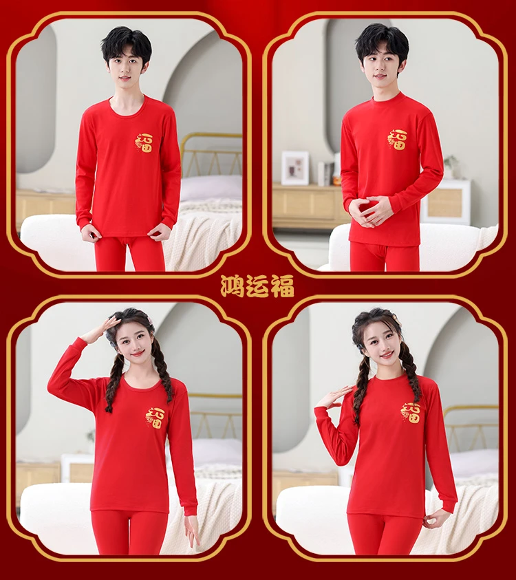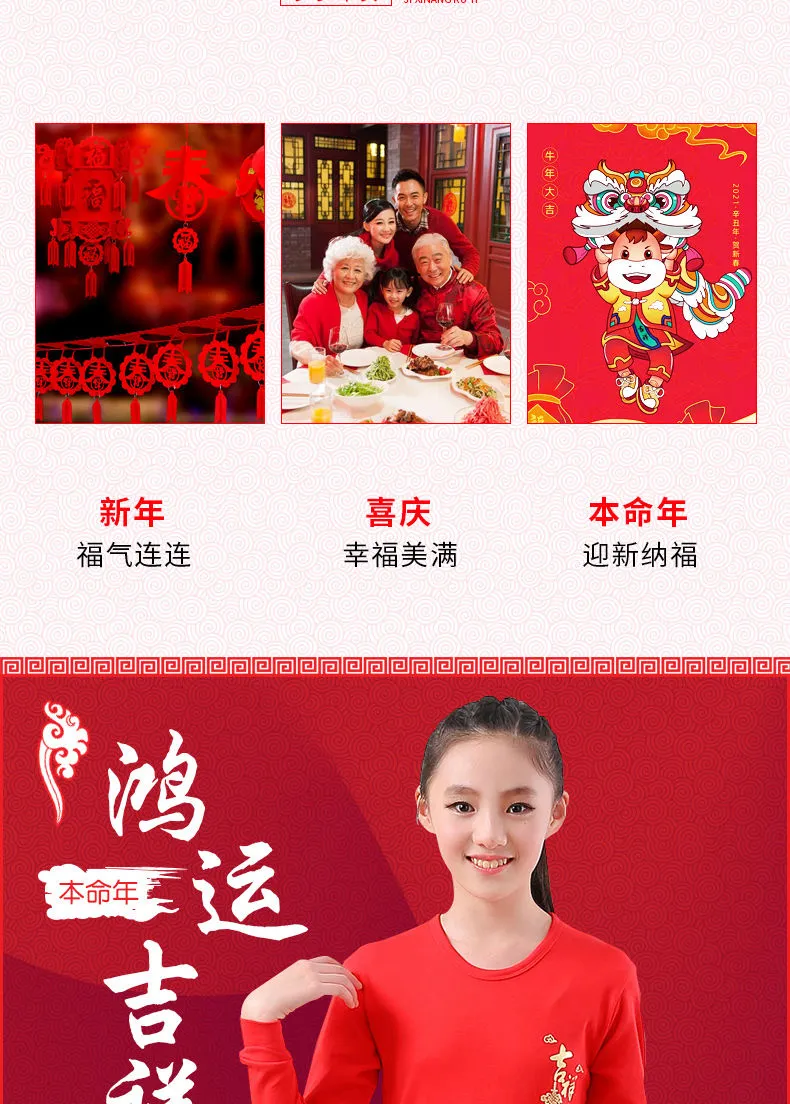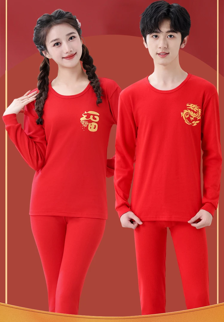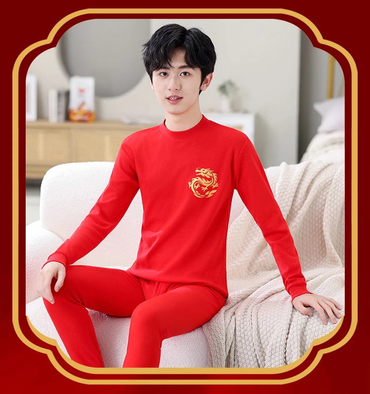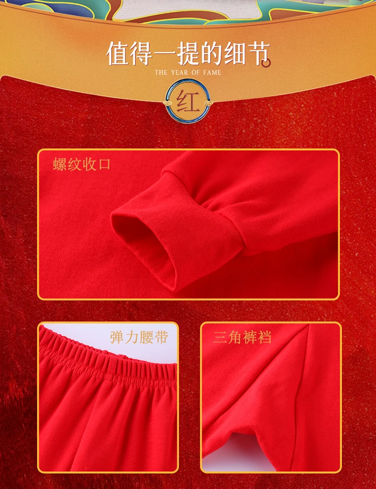 儿童本命年红色内衣套装纯棉男大童女童13蛇年保暖秋衣秋裤12周岁