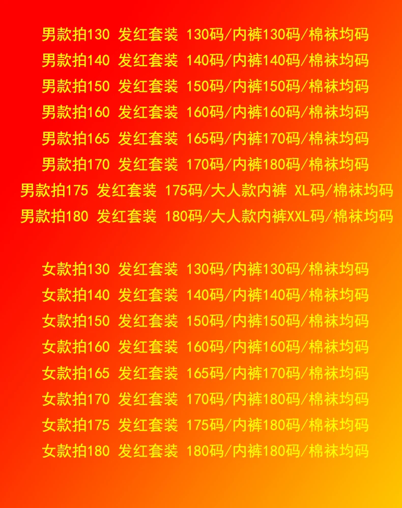 | size 175 recommended height 168-175cm(175码 建议身高168-175CM) | USD $11.4 | 999999 piece available |