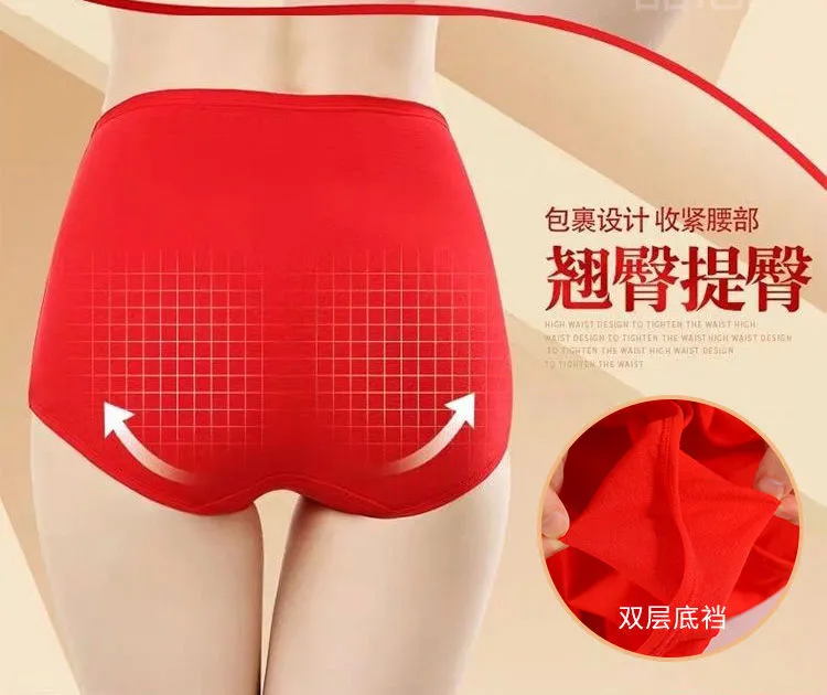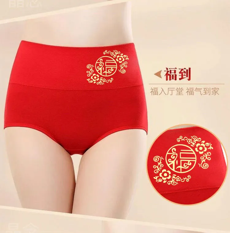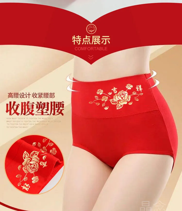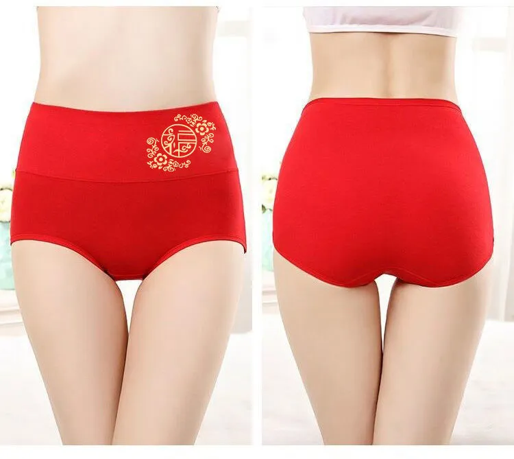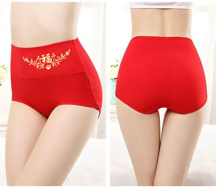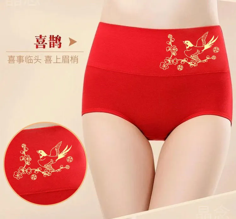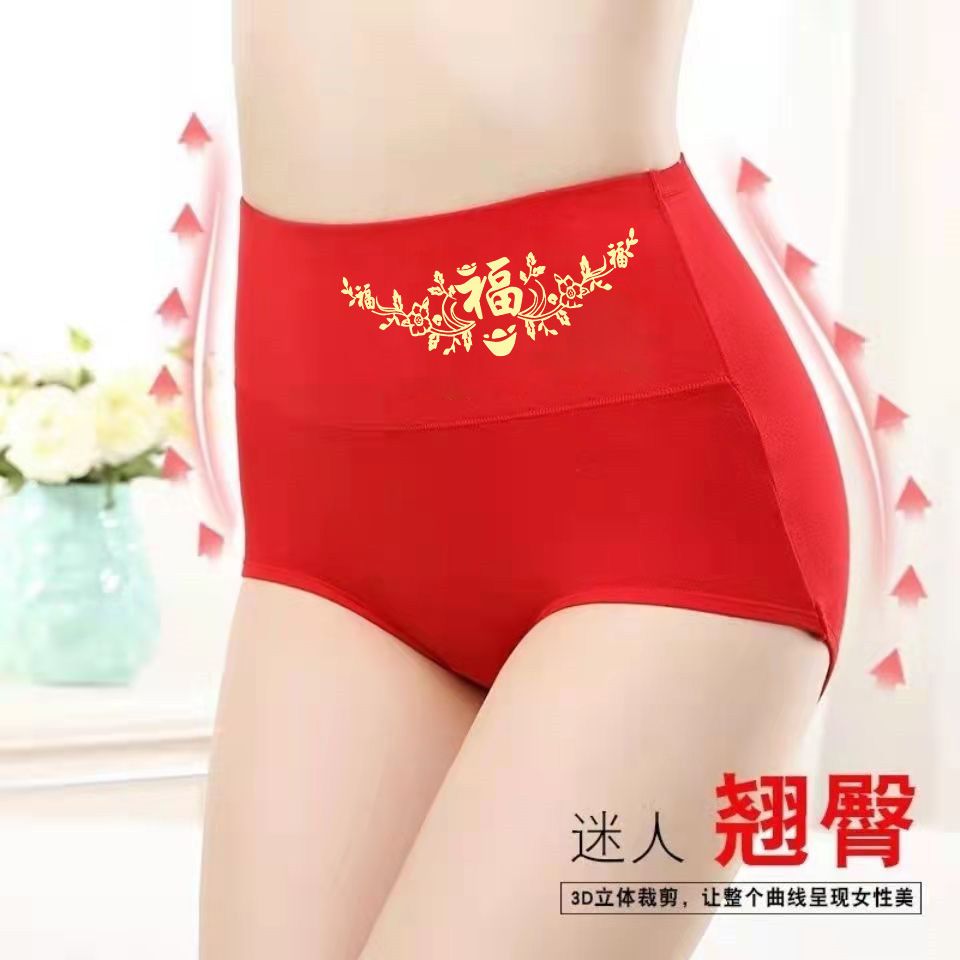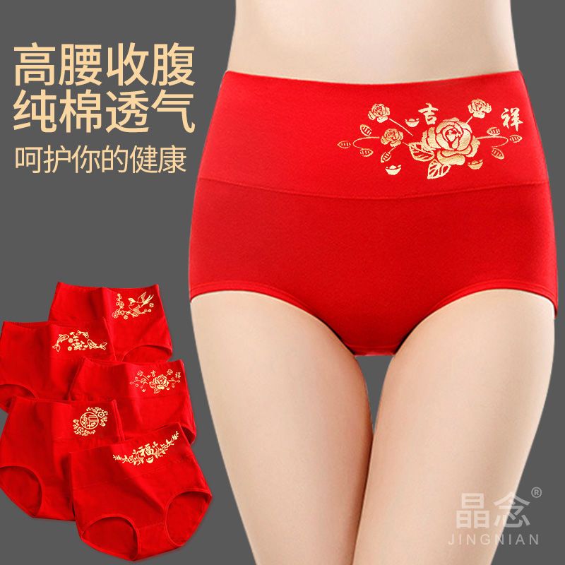 95%棉质本命年大红色纯棉女士内裤高腰收腹性感大码三角裤结婚裤