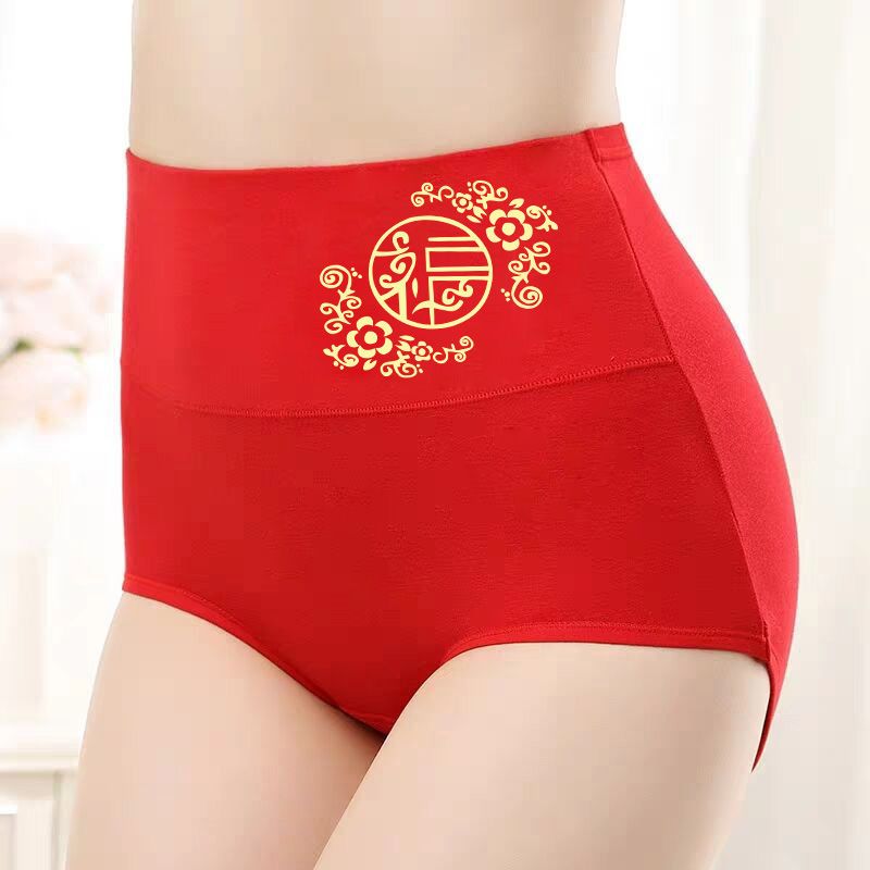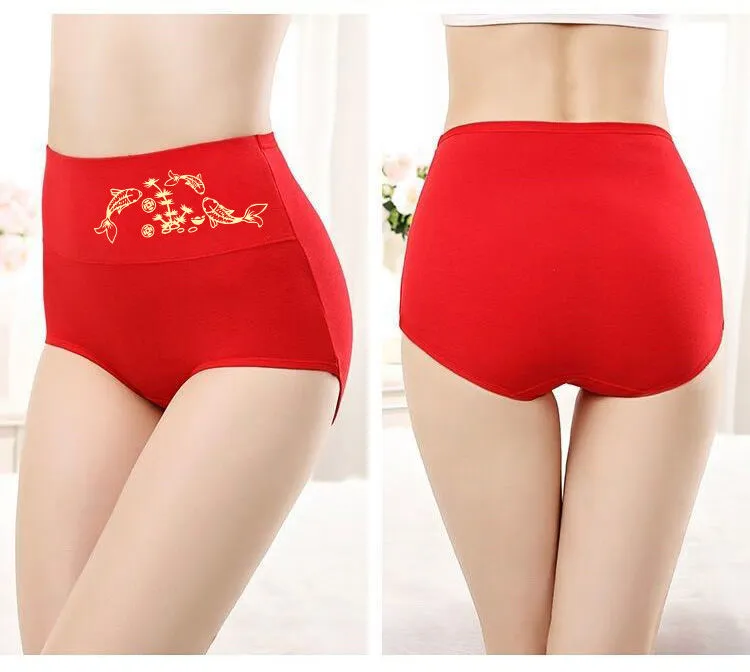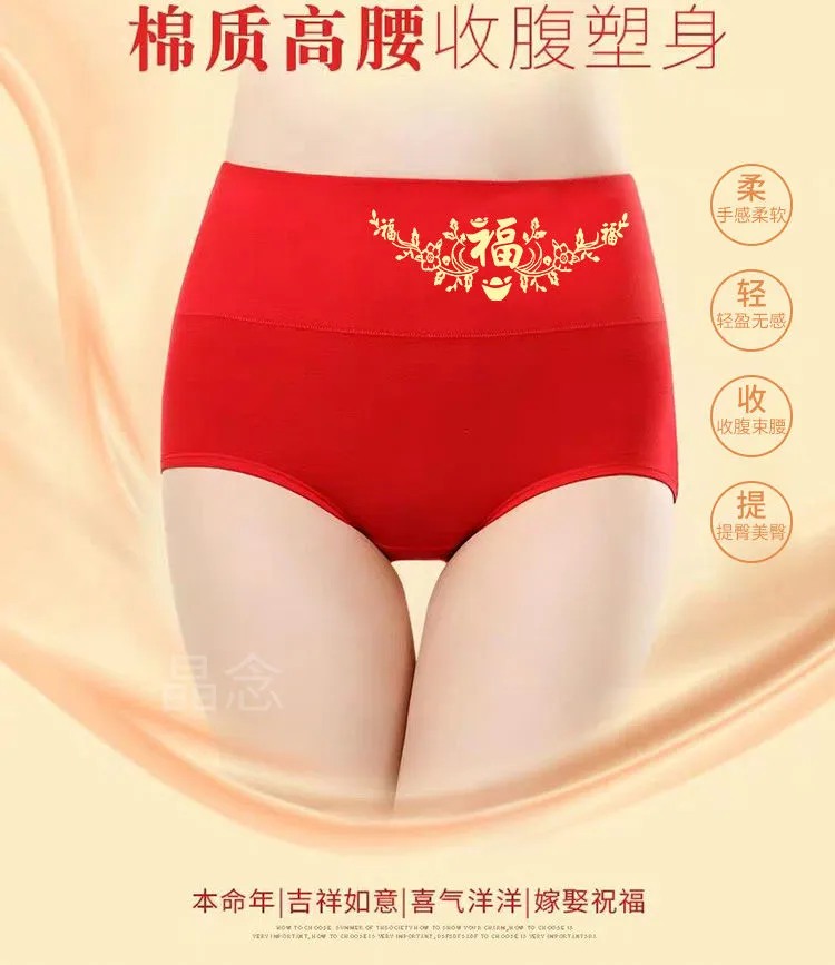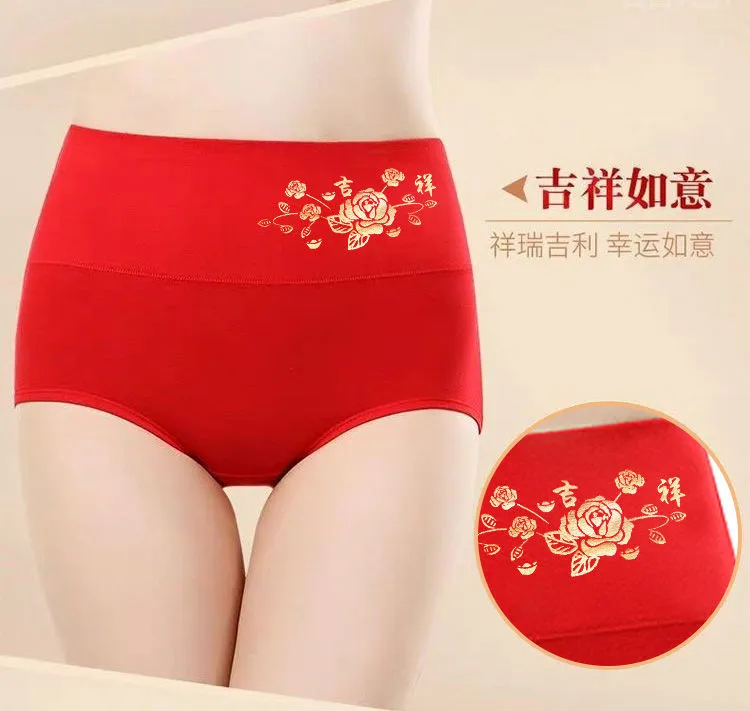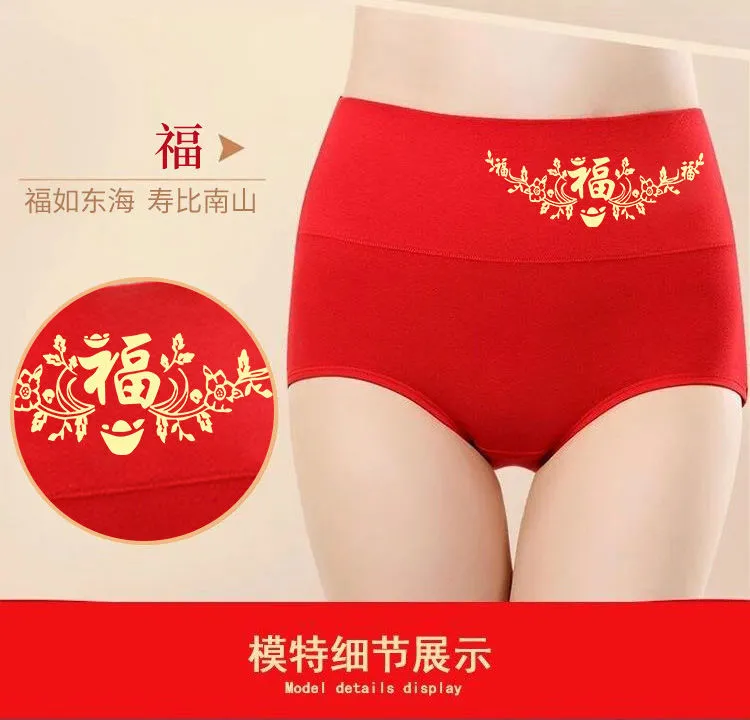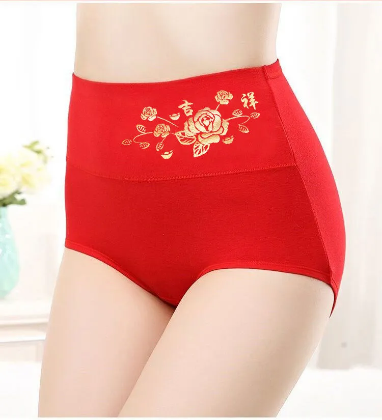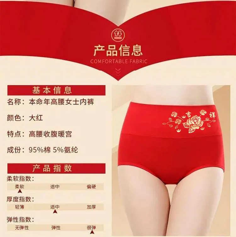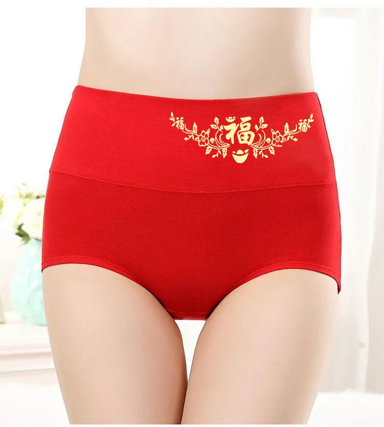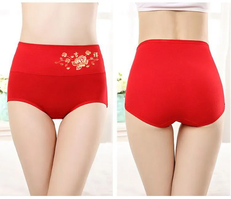 95%棉质本命年大红色纯棉女士内裤高腰收腹性感大码三角裤结婚裤
