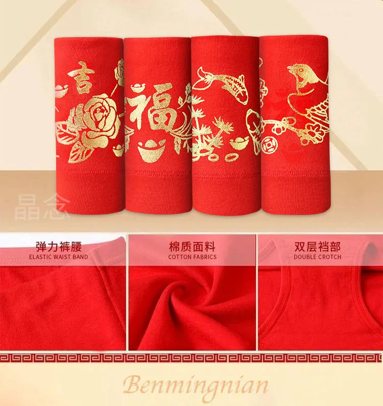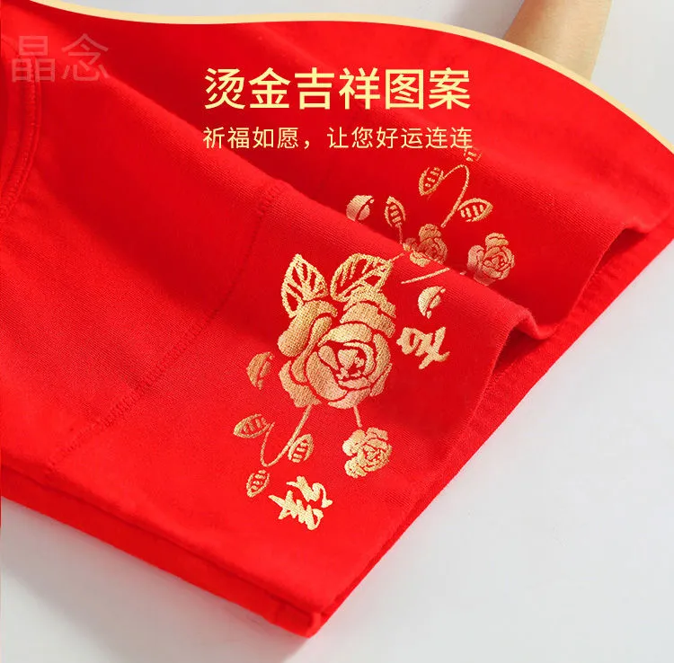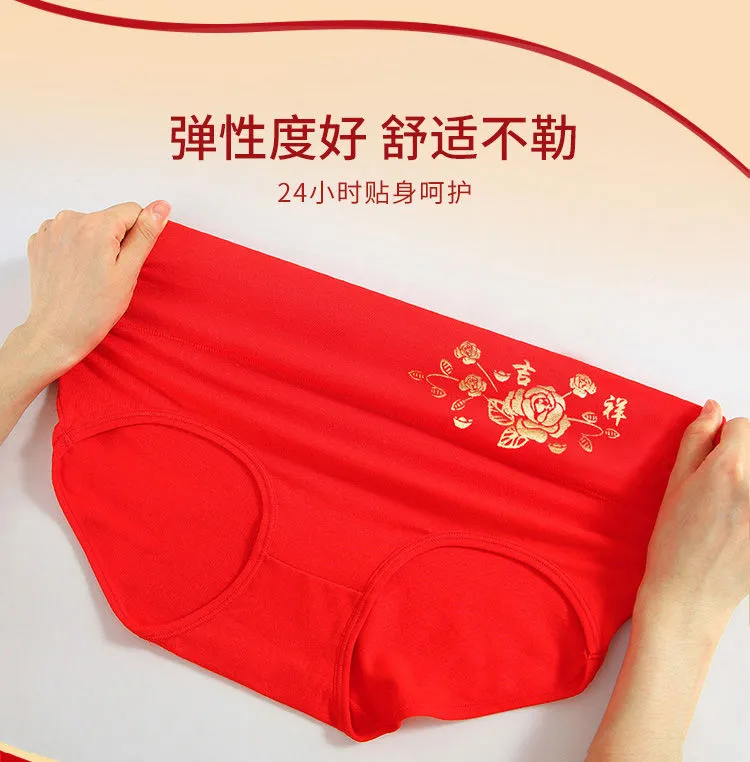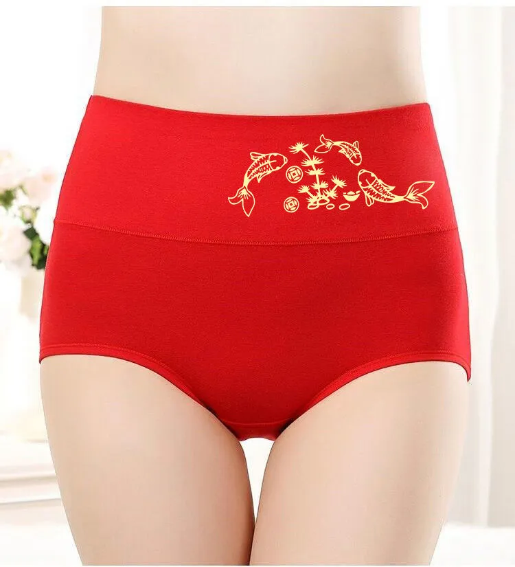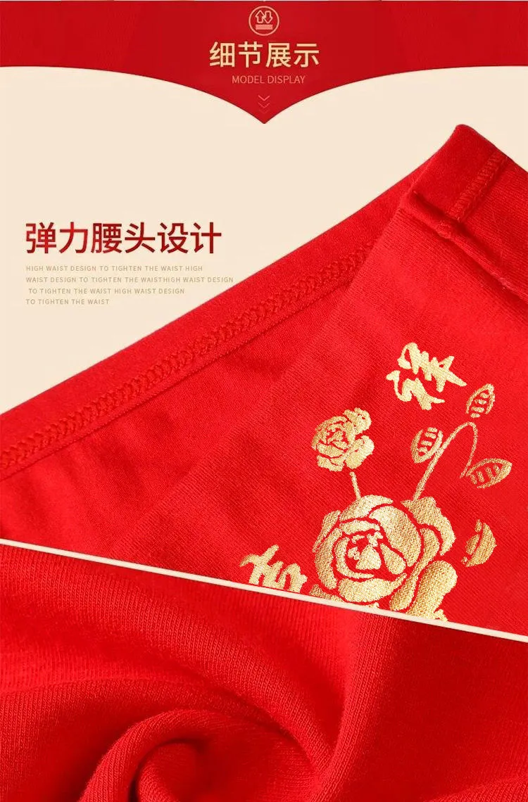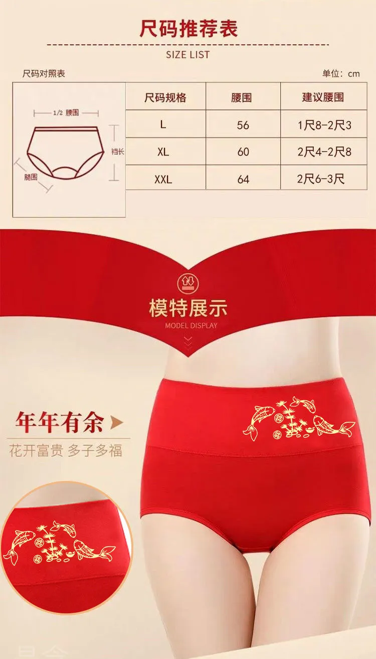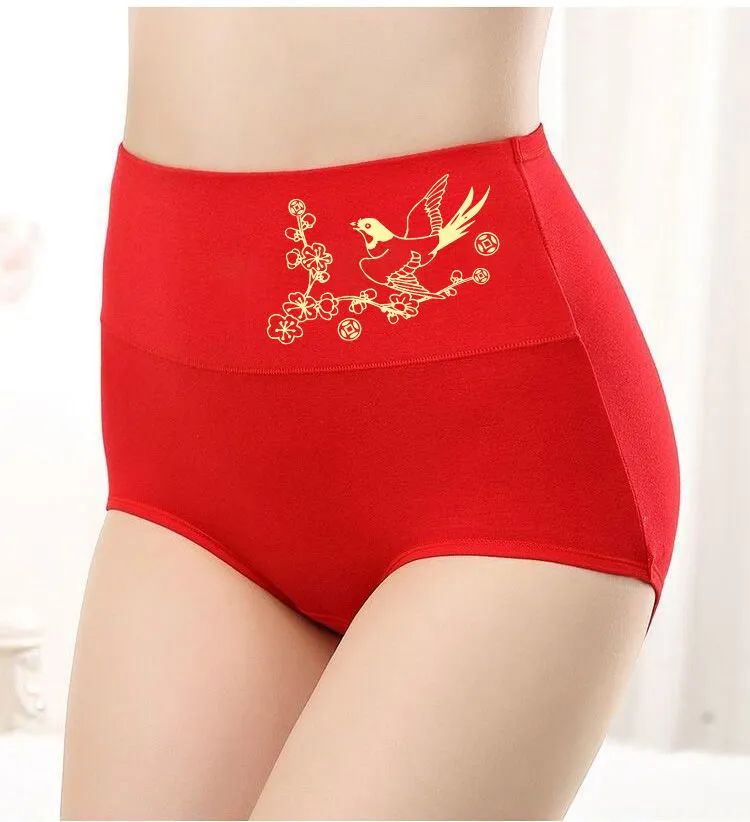 95%棉质本命年大红色纯棉女士内裤高腰收腹性感大码三角裤结婚裤