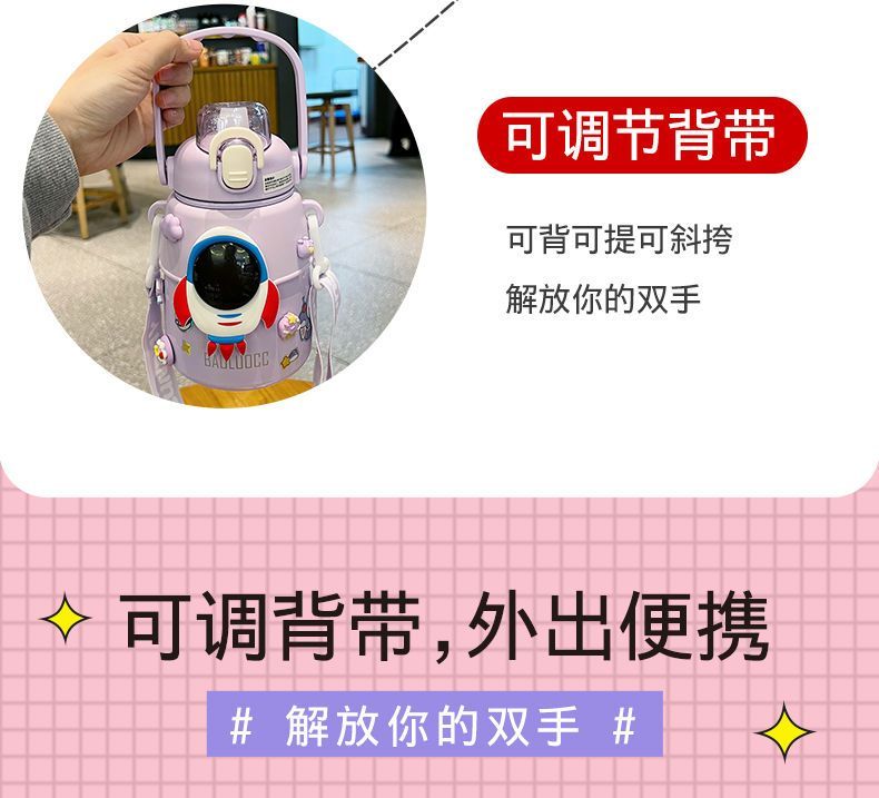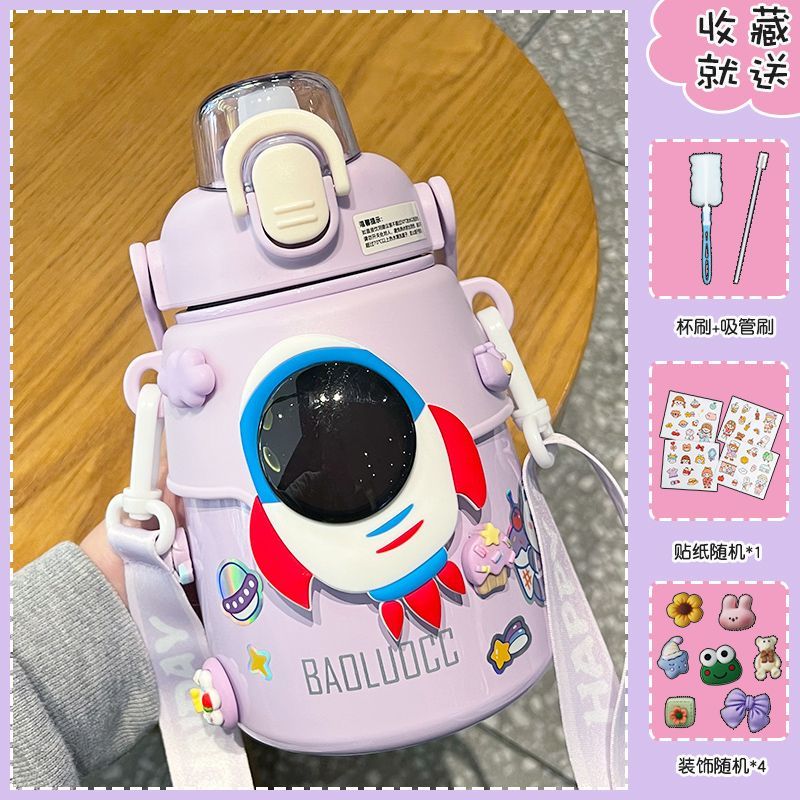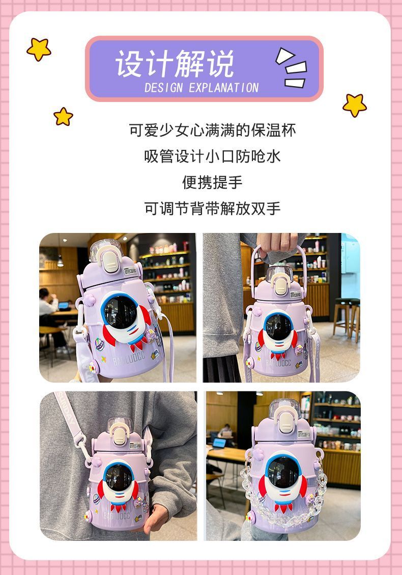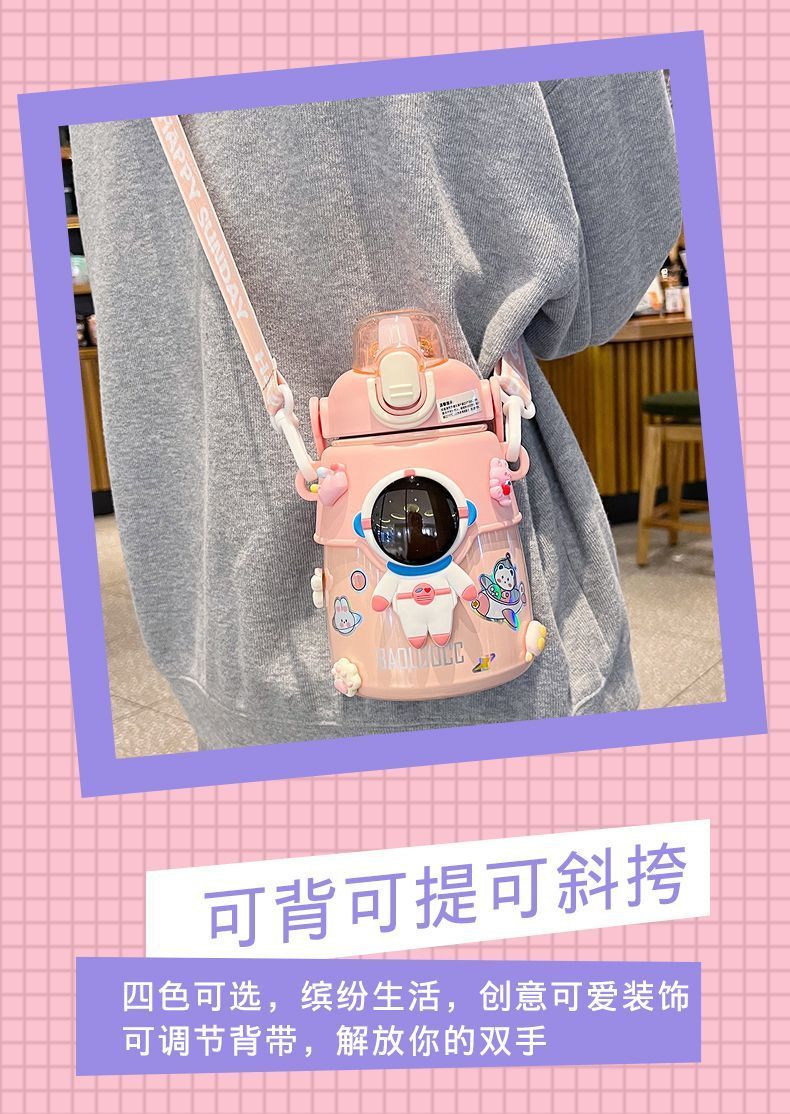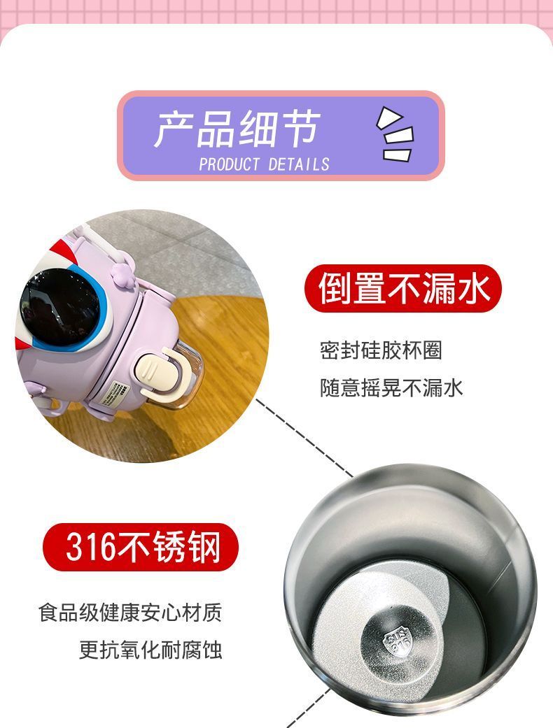 宇航员儿童吸管保温杯水杯男孩大容量316女童上学大肚专用便携