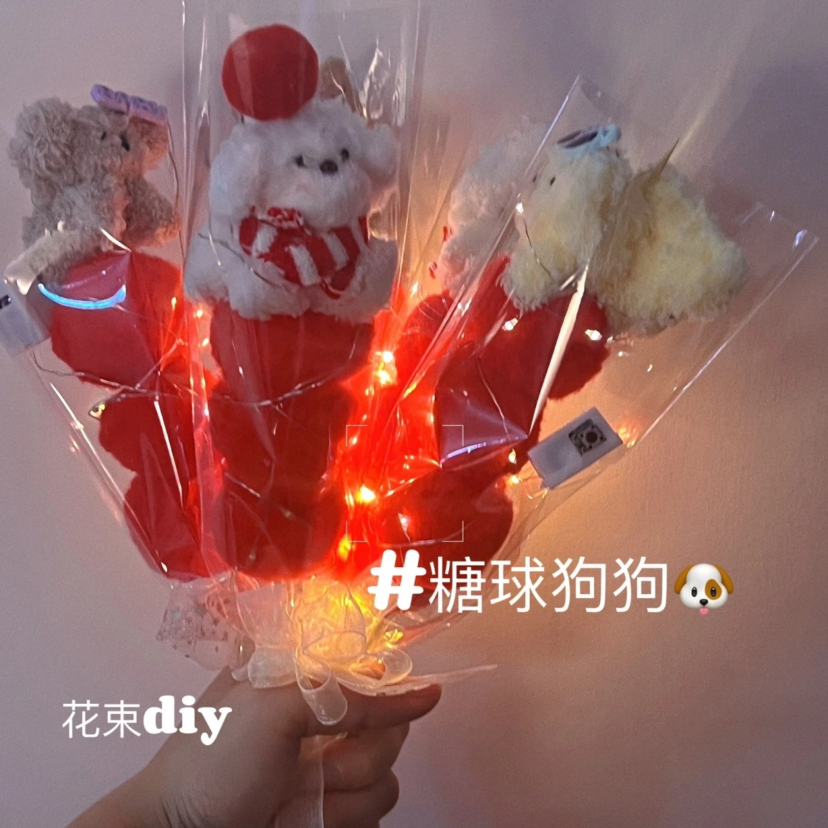 可爱七夕礼物ins糖球扭扭小狗花束材料diy生日礼物女友糖葫芦串
