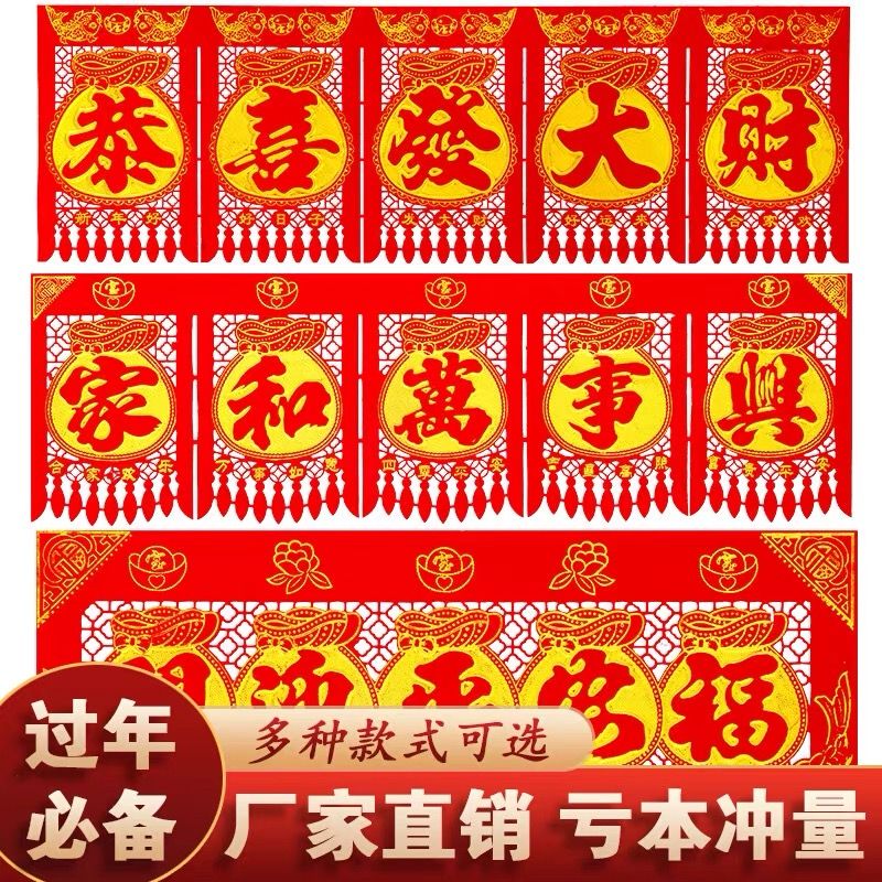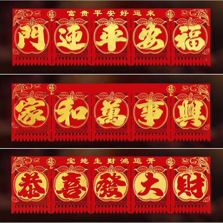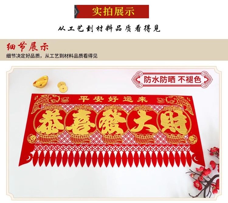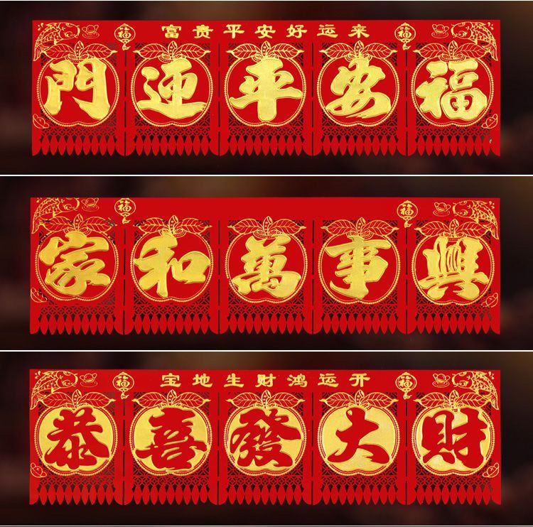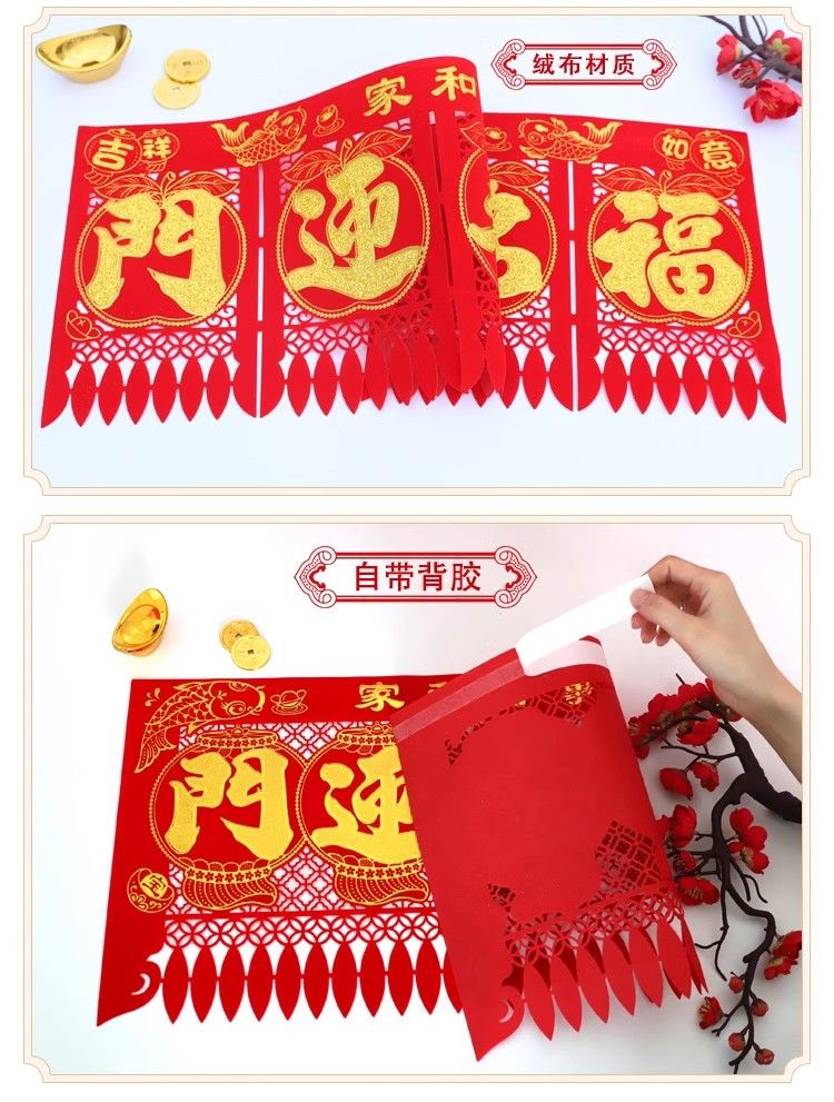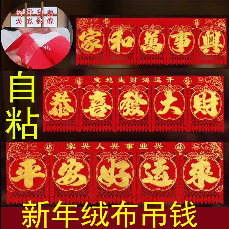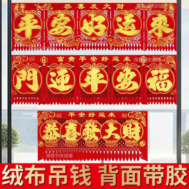 绒布吊钱春节五字连体横联挂钱大门钱门钱利过门2025门楣新年剪纸