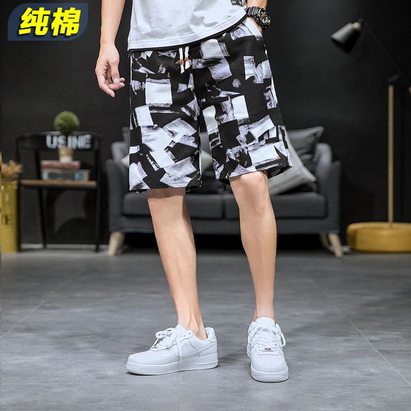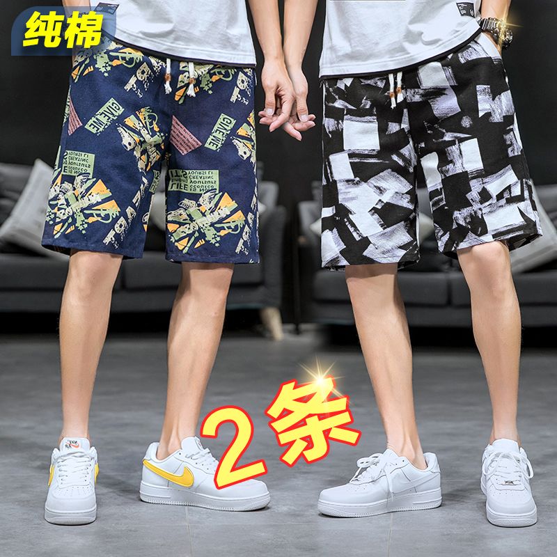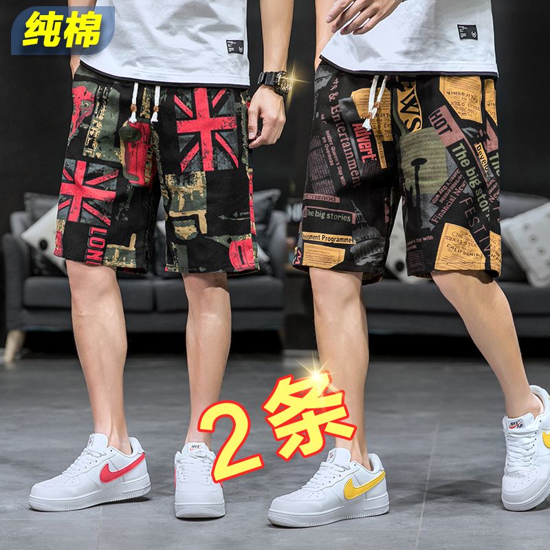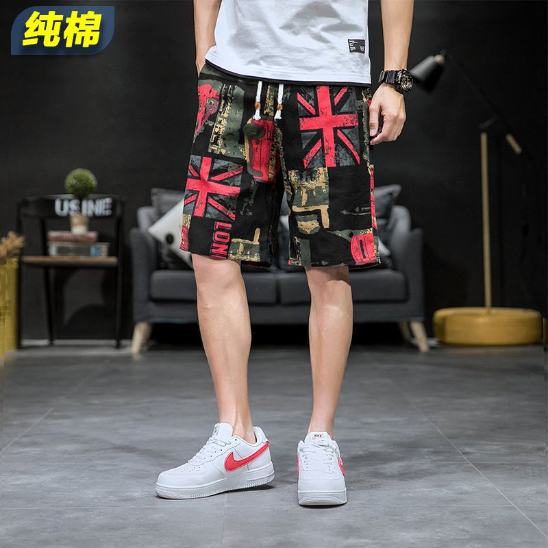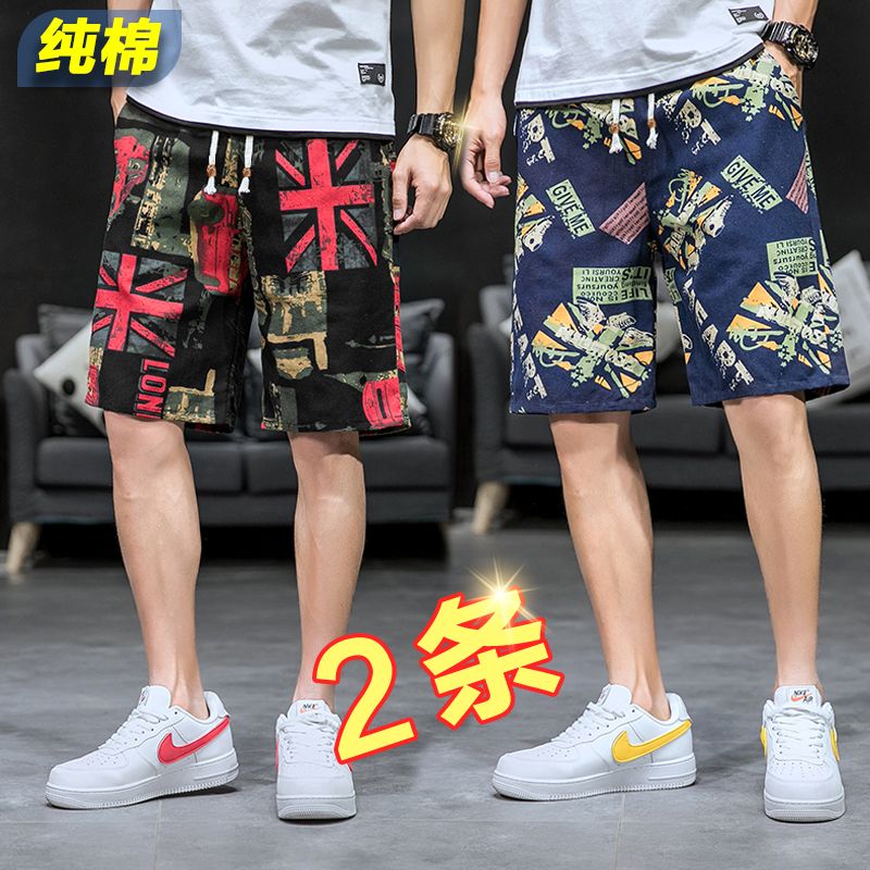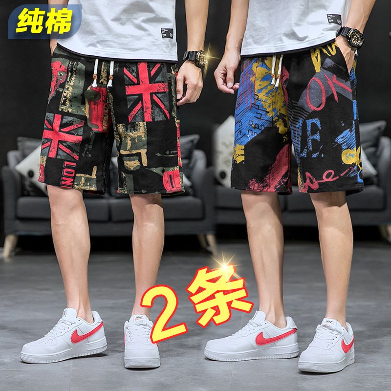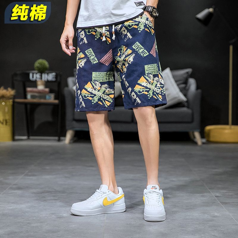 夏季沙滩裤男纯棉花短裤男士夏天大裤衩男生五分裤休闲裤中裤大码