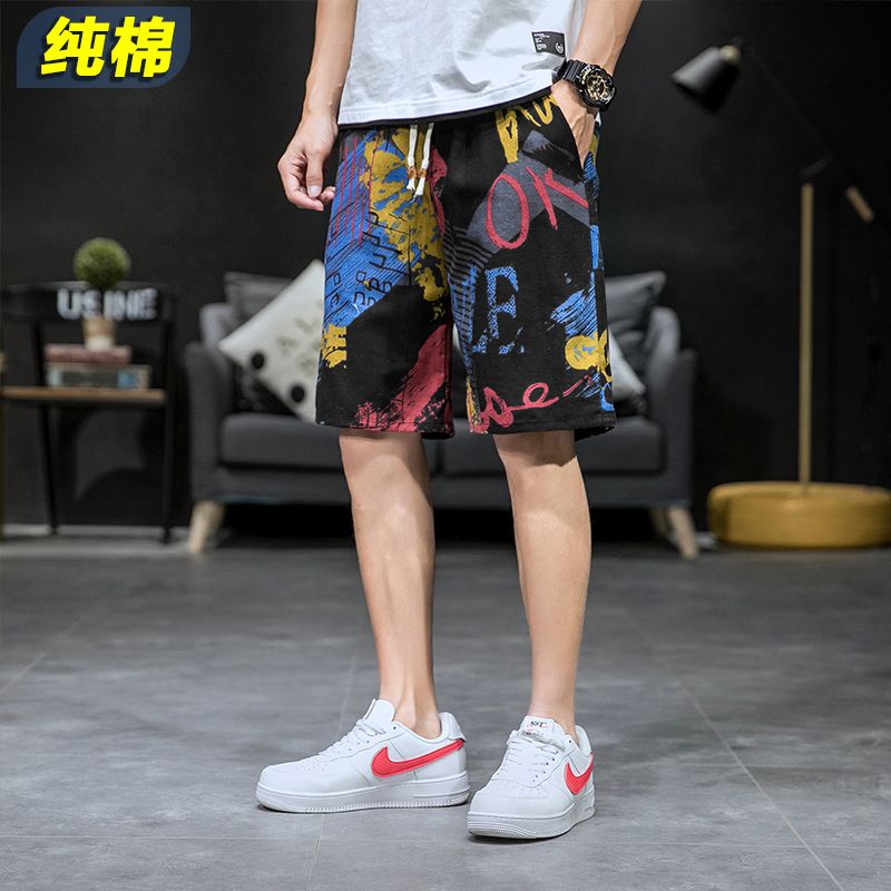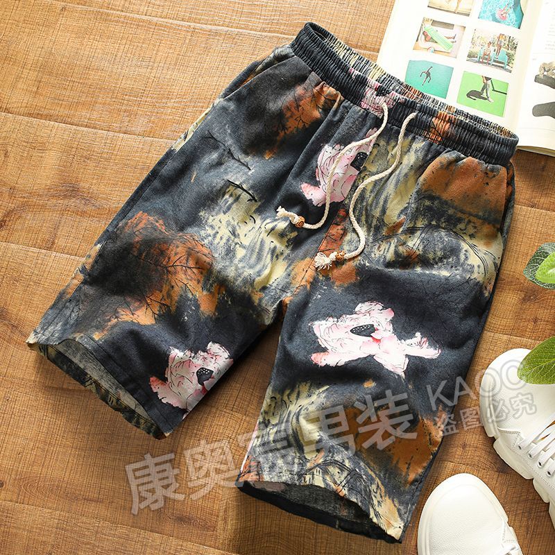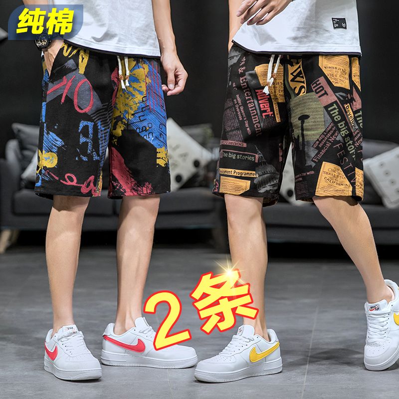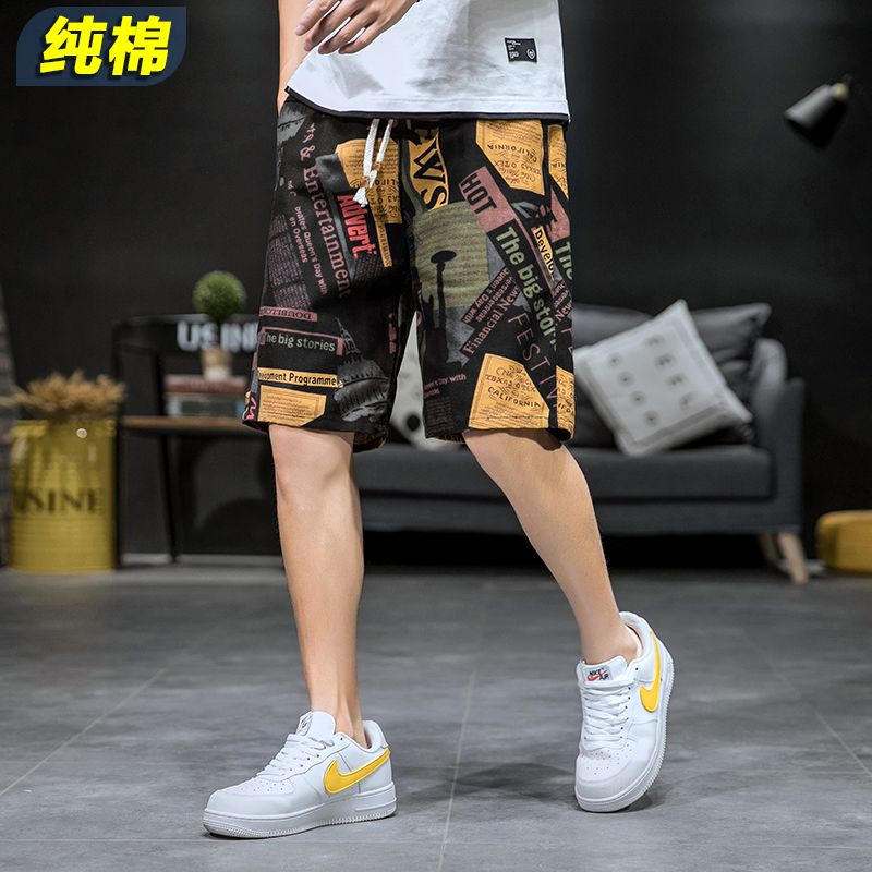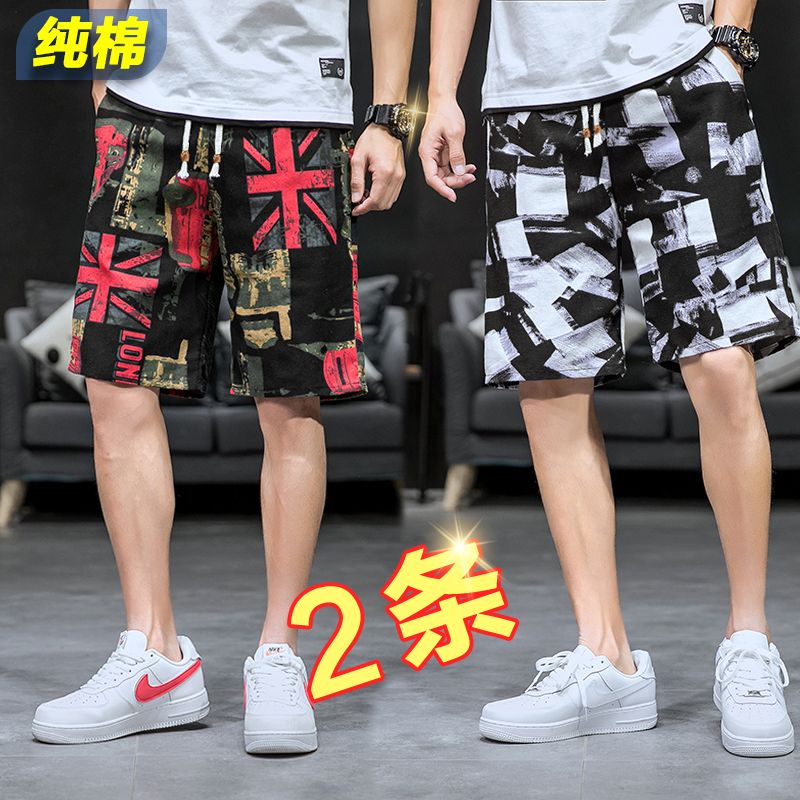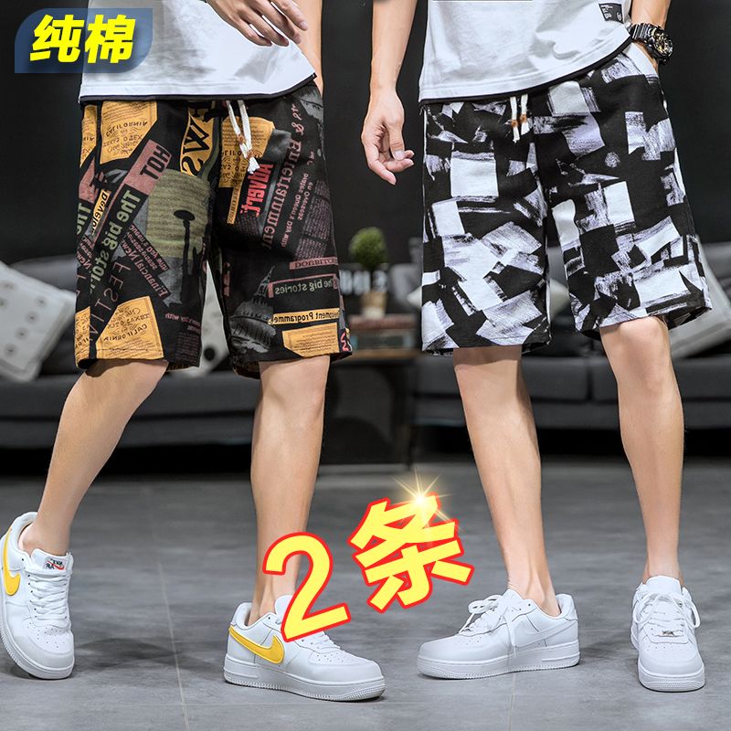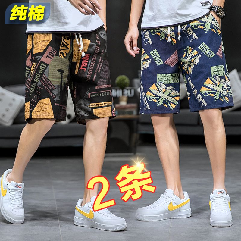 夏季沙滩裤男纯棉花短裤男士夏天大裤衩男生五分裤休闲裤中裤大码