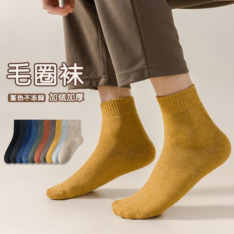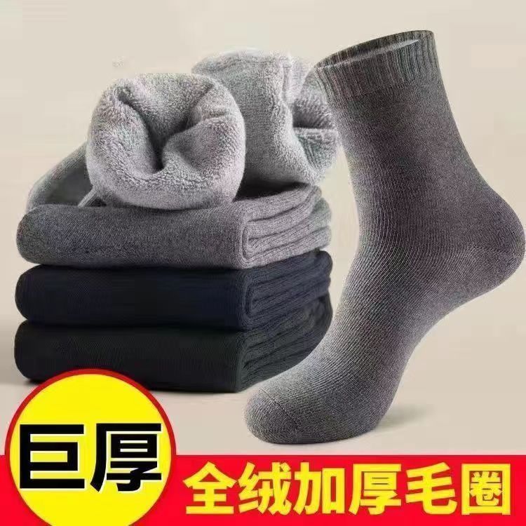 抗寒超厚袜子男款冬季长袜加厚长筒加绒防臭男士批发毛圈中筒保暖